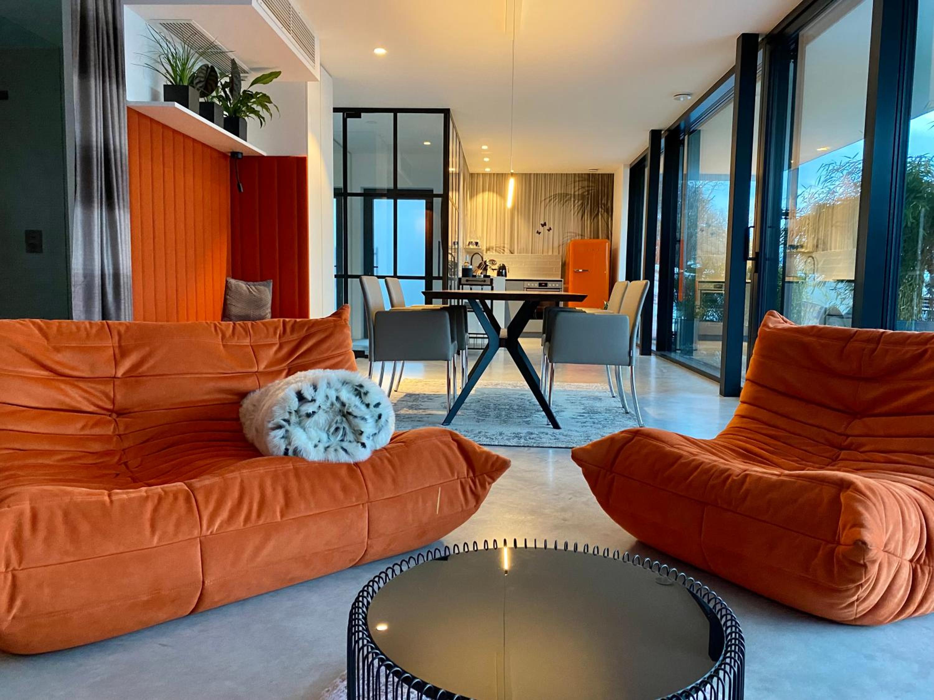 In der ORANGE LOUNGE kann man die Seele baumeln lassen. Das luxuriöse Appartement ist geschmackvoll eingerichtet, mit viel Liebe zum Detail und ausgestattet mit hochwertigen Markenprodukten. Hier fühlt sich jeder wohl – egal, ob man an diesen Standard gewöhnt ist oder sich einmal etwas Besonderes gönnen möchte.