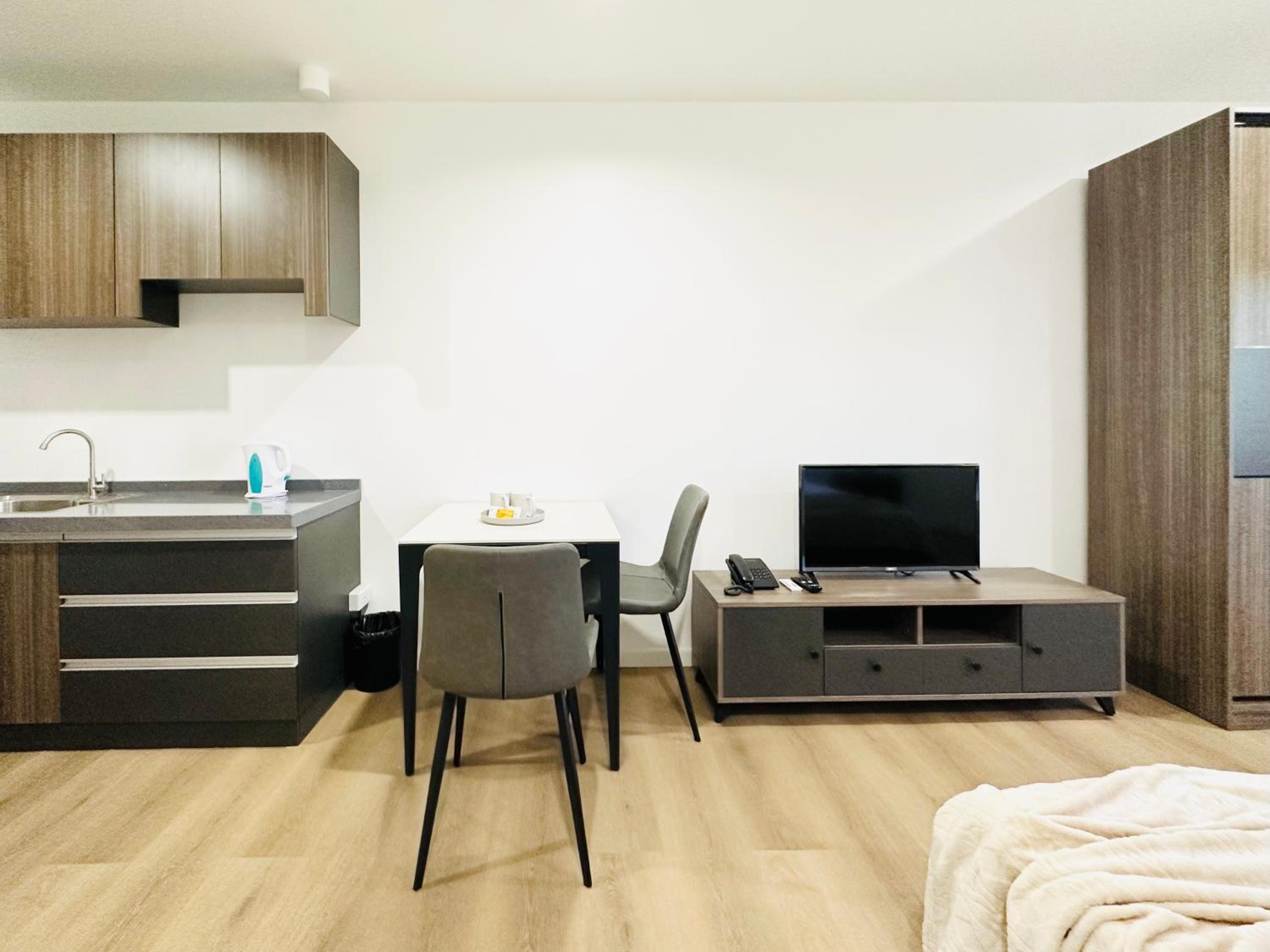 Modern Amenities: Enjoy a comfortable stay with our air-conditioned aparthotel featuring a fully equipped kitchenette, dining area, and flat-screen TV. Relax with complimentary WiFi throughout the property and unwind with plush towels and bed linen provided.