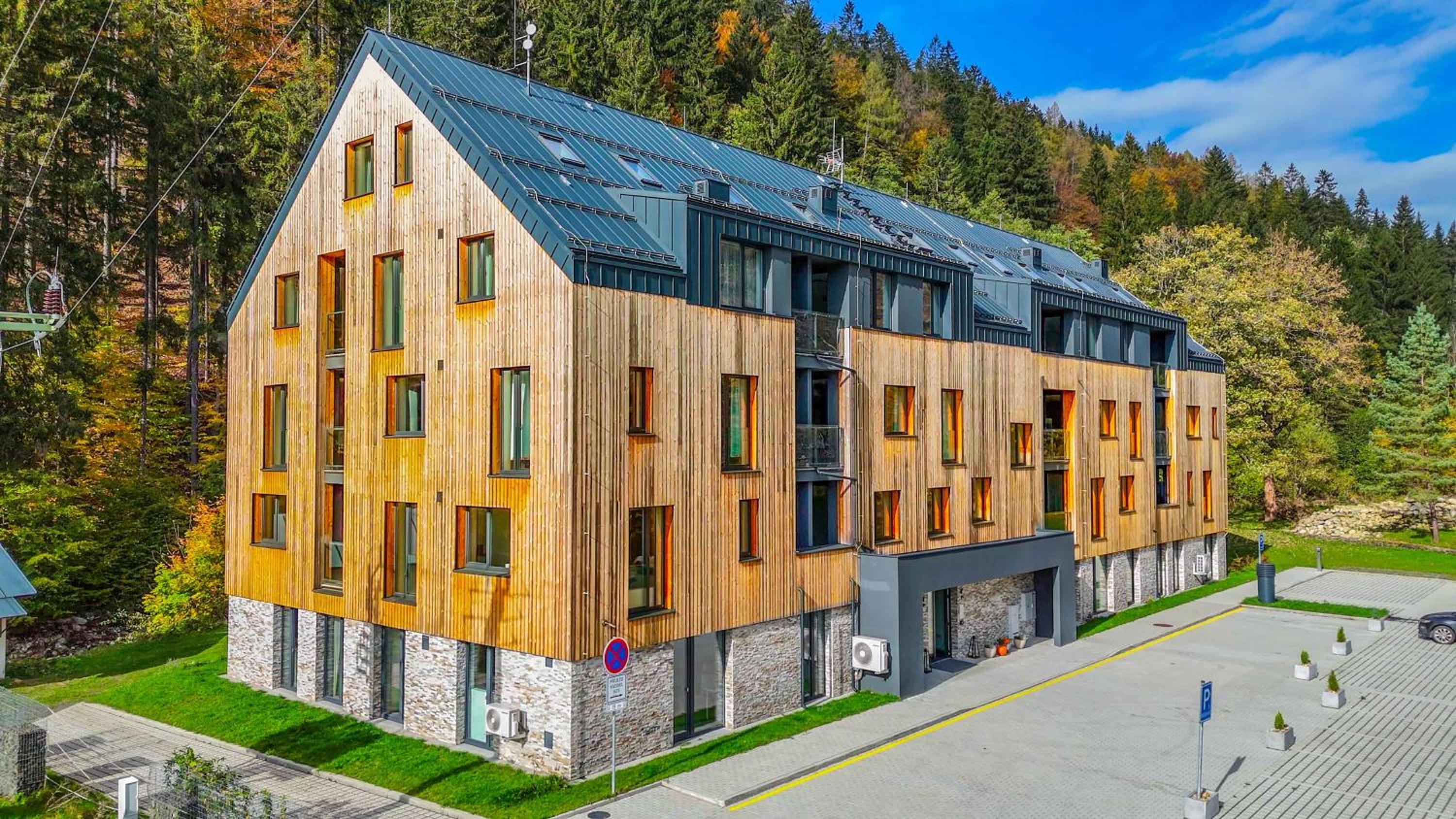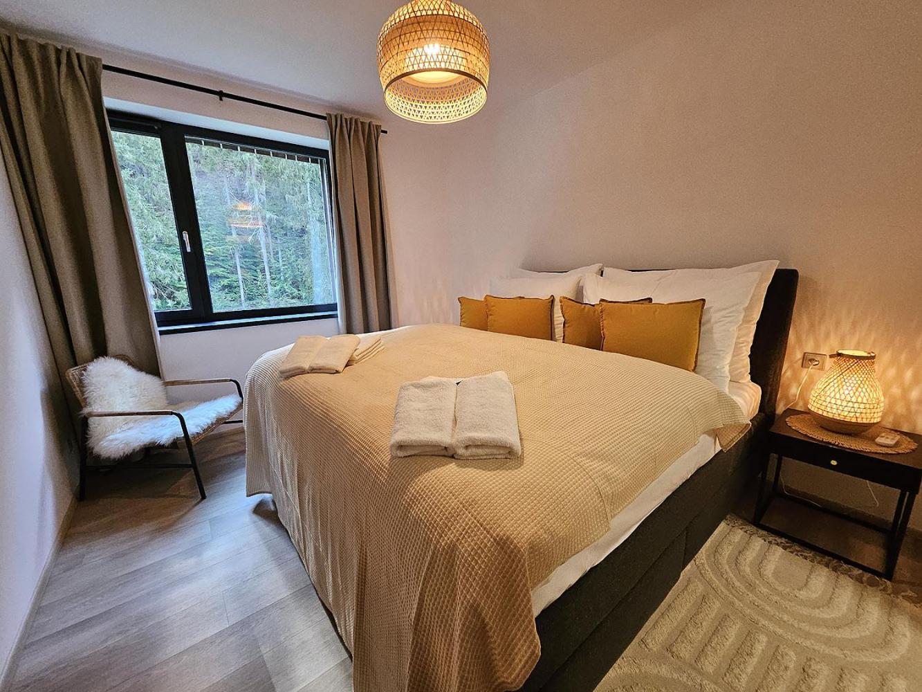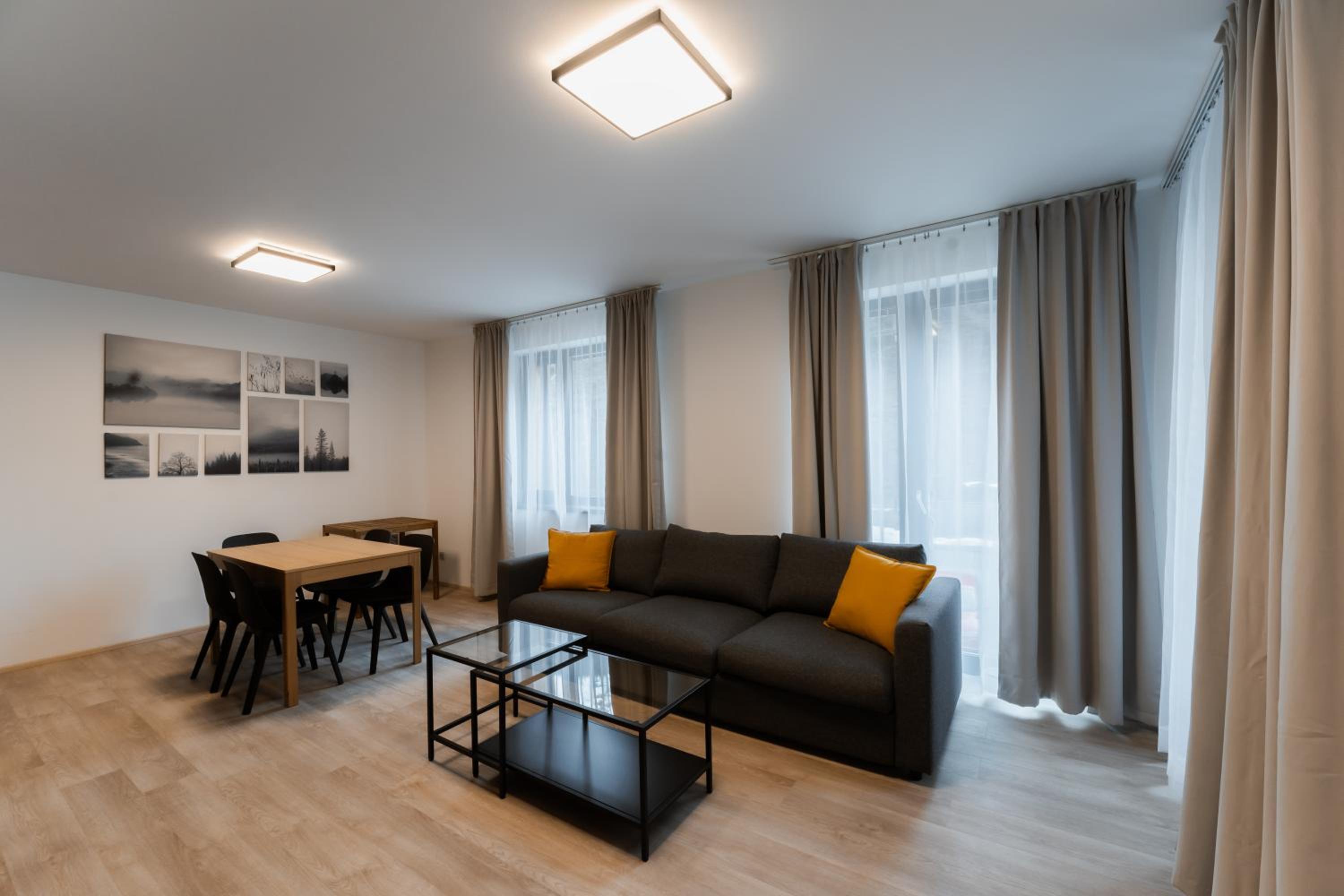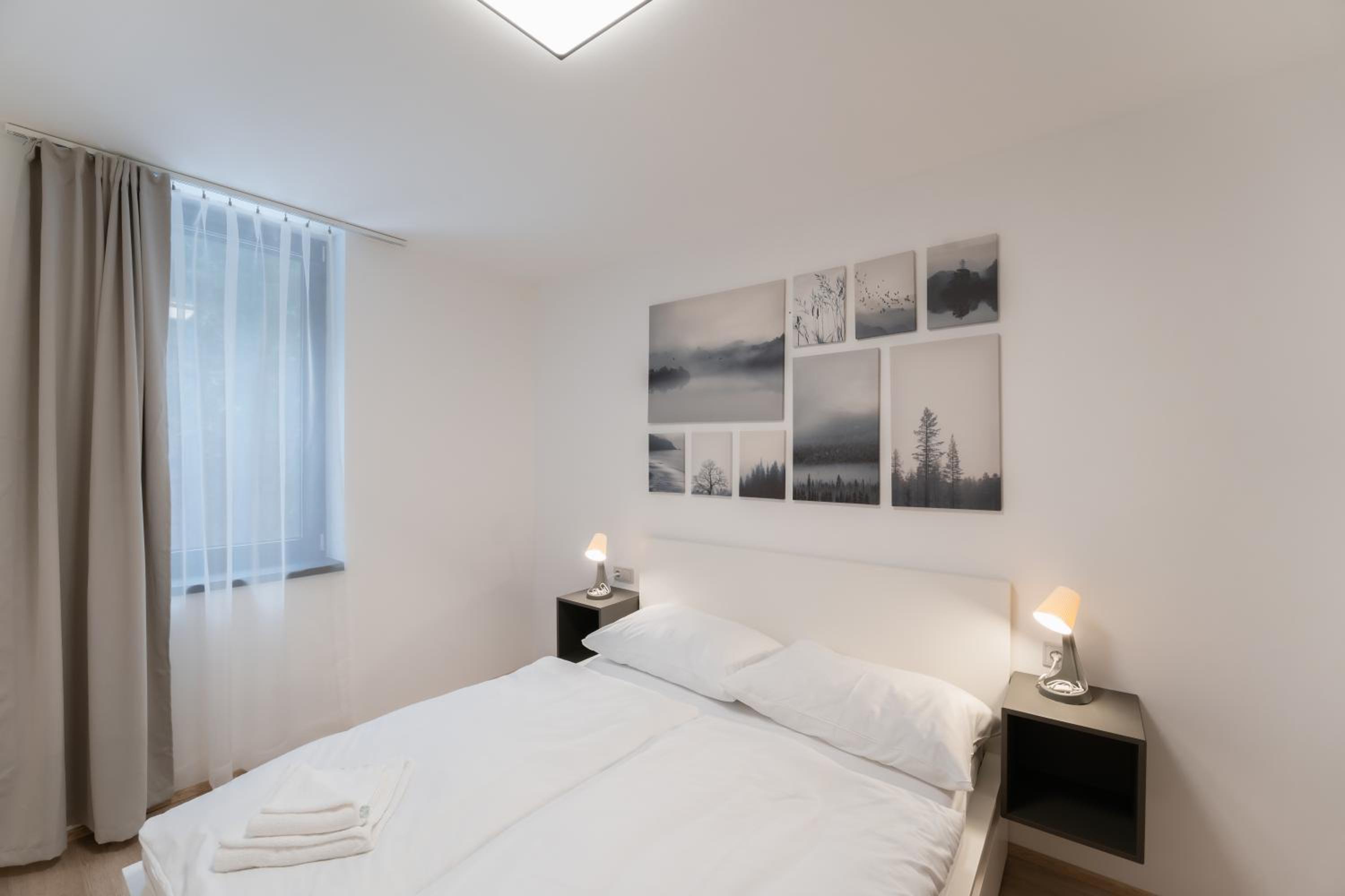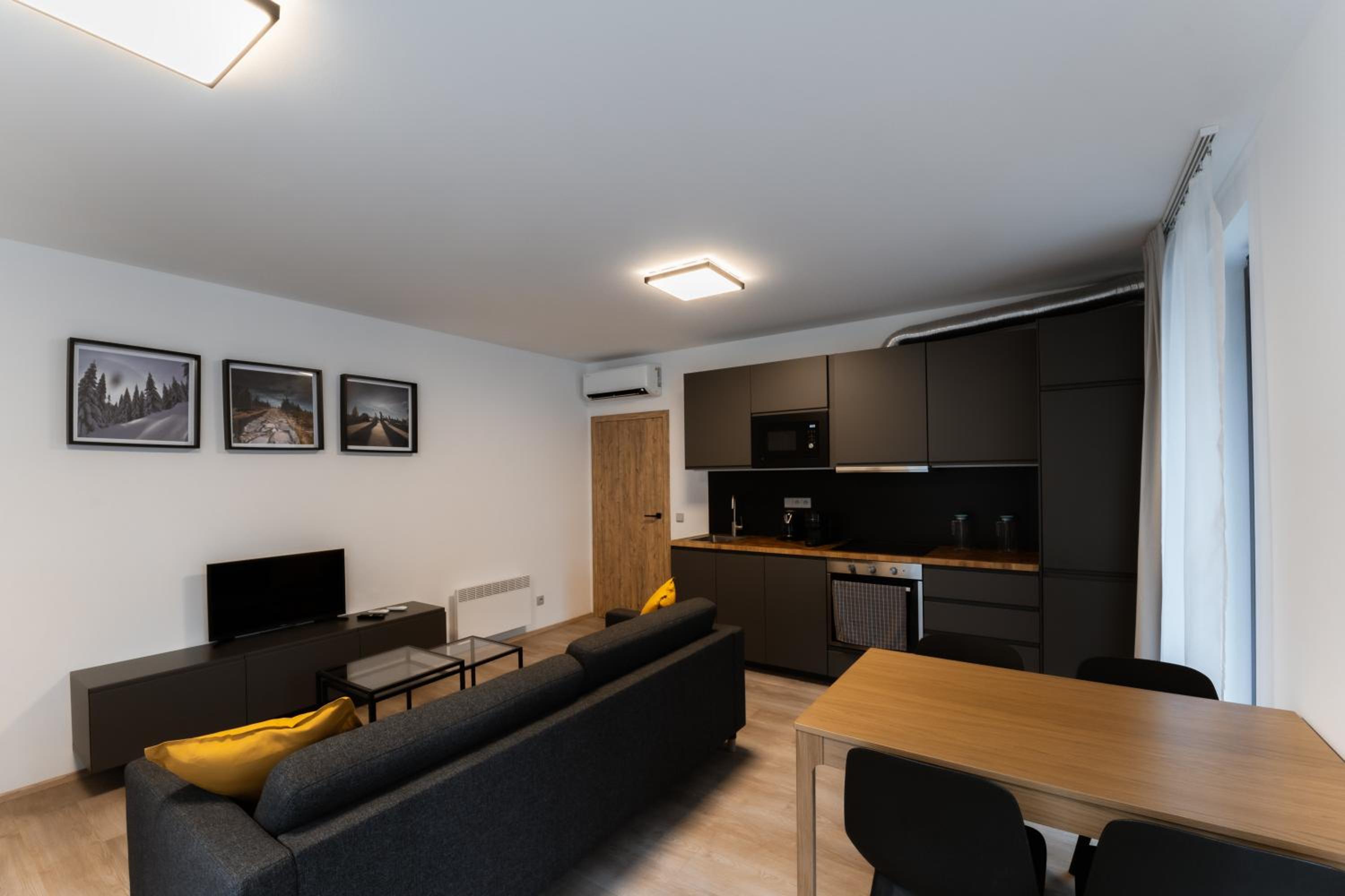 Clean, modern, comfy apartments in good location. Quiet despite being very well communicated with ski resort. Well equipped kitchen and bathrooms.