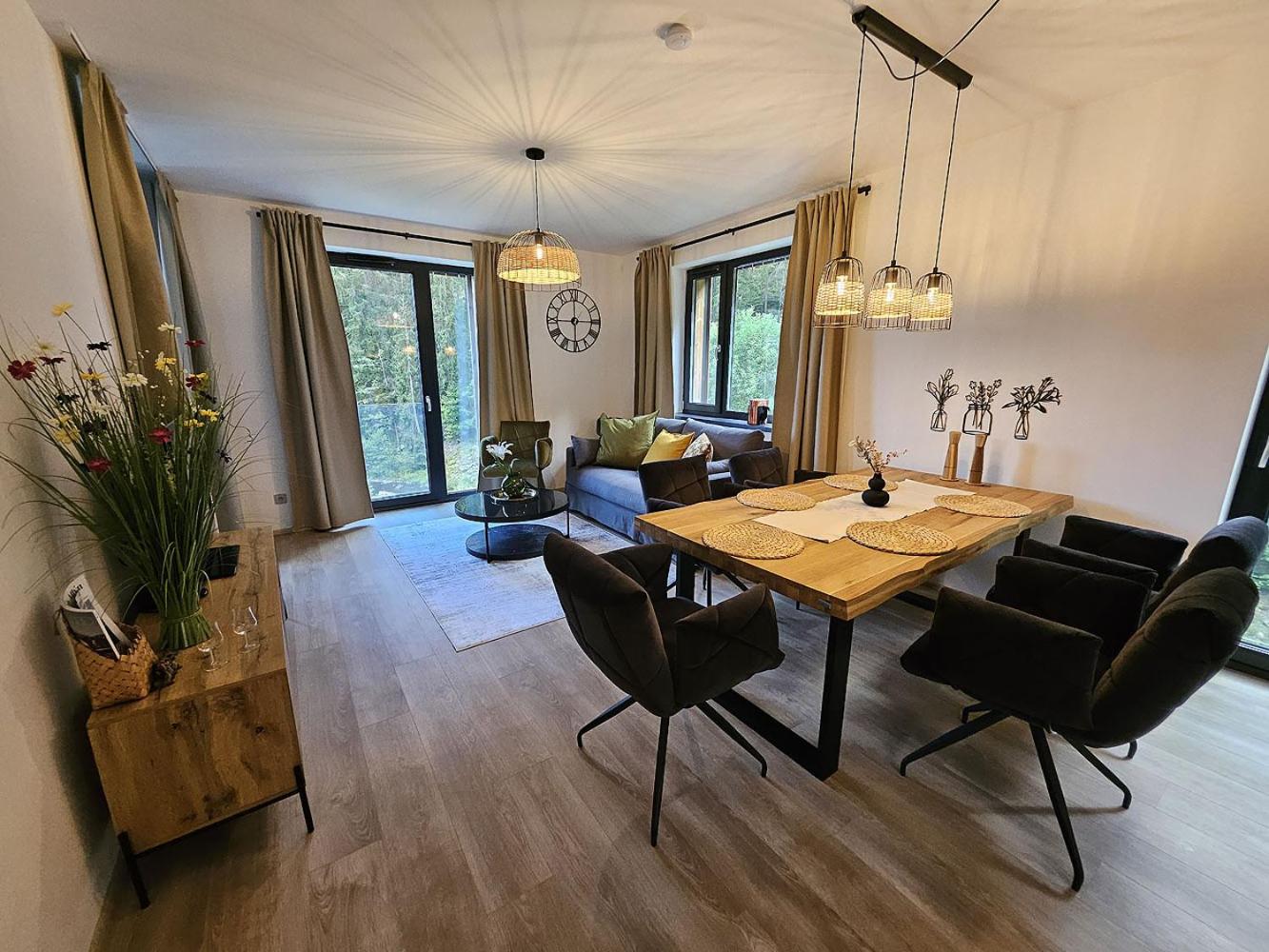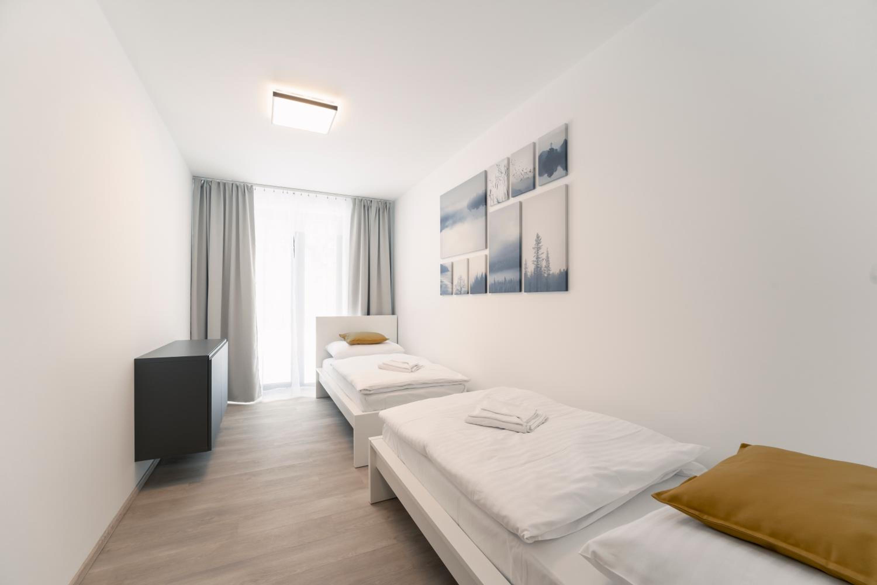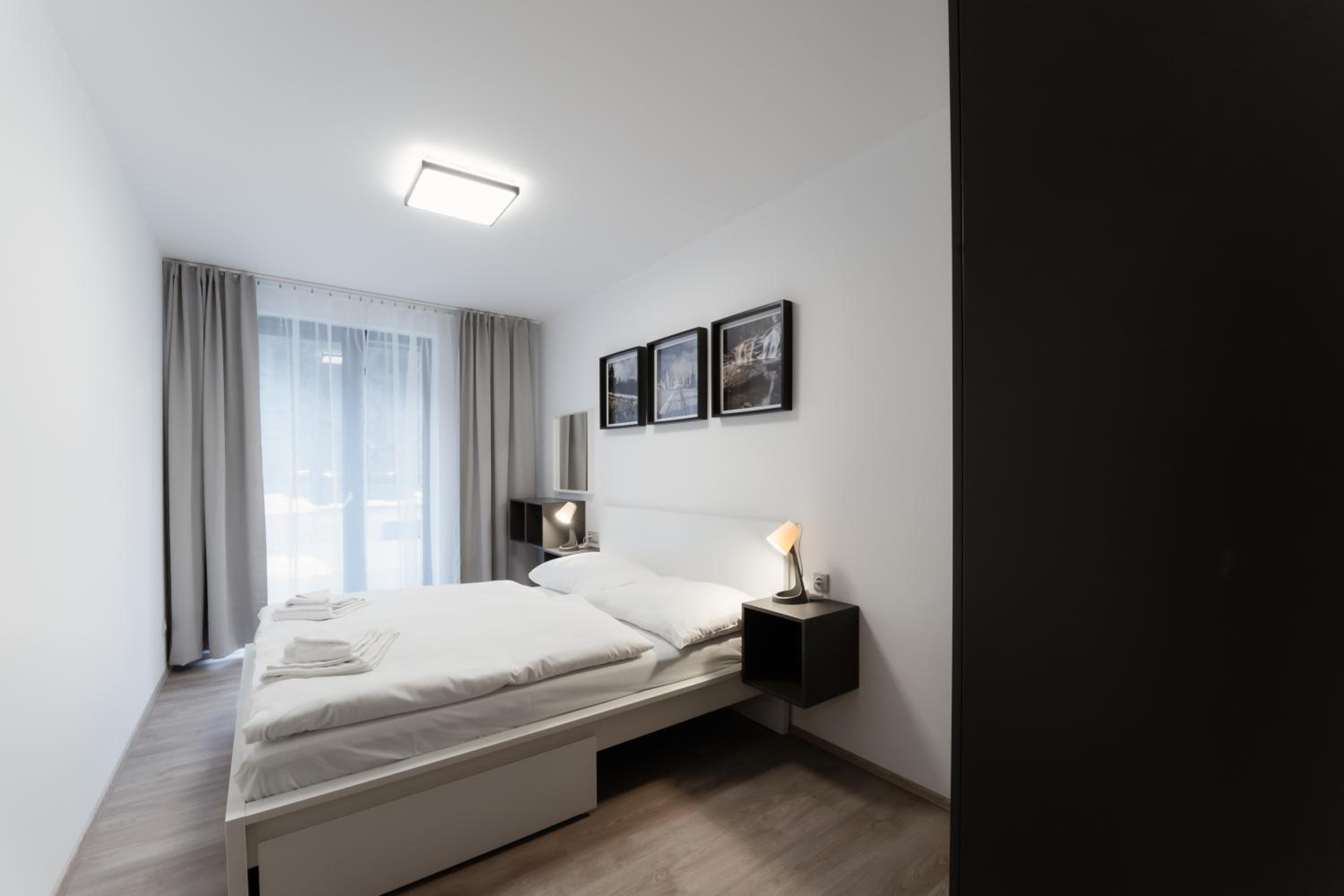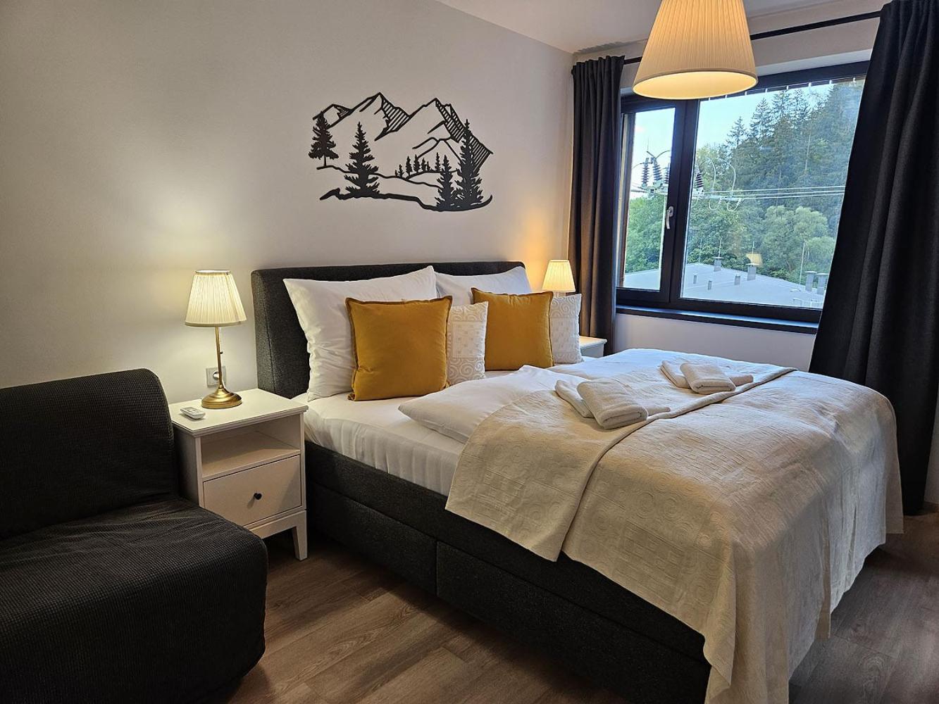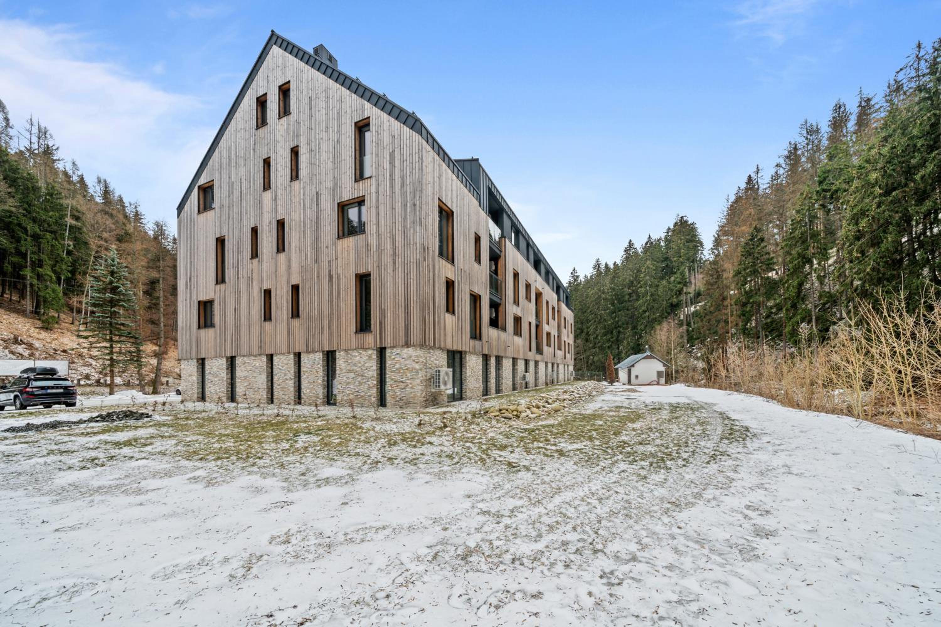 Clean, modern, comfy apartments in good location. Quiet despite being very well communicated with ski resort. Well equipped kitchen and bathrooms.