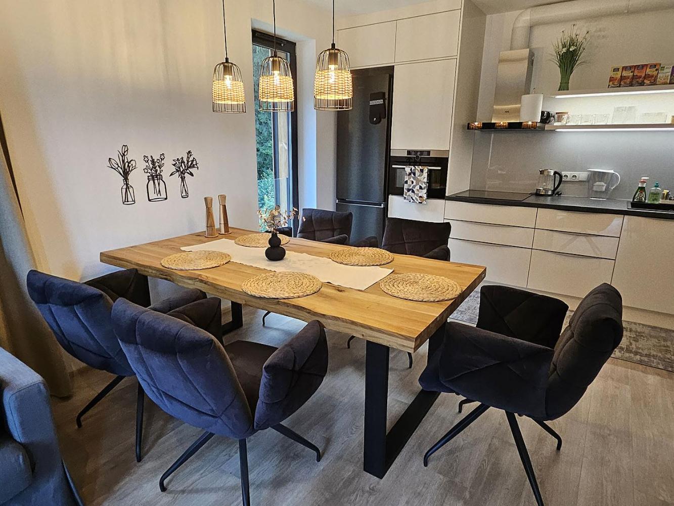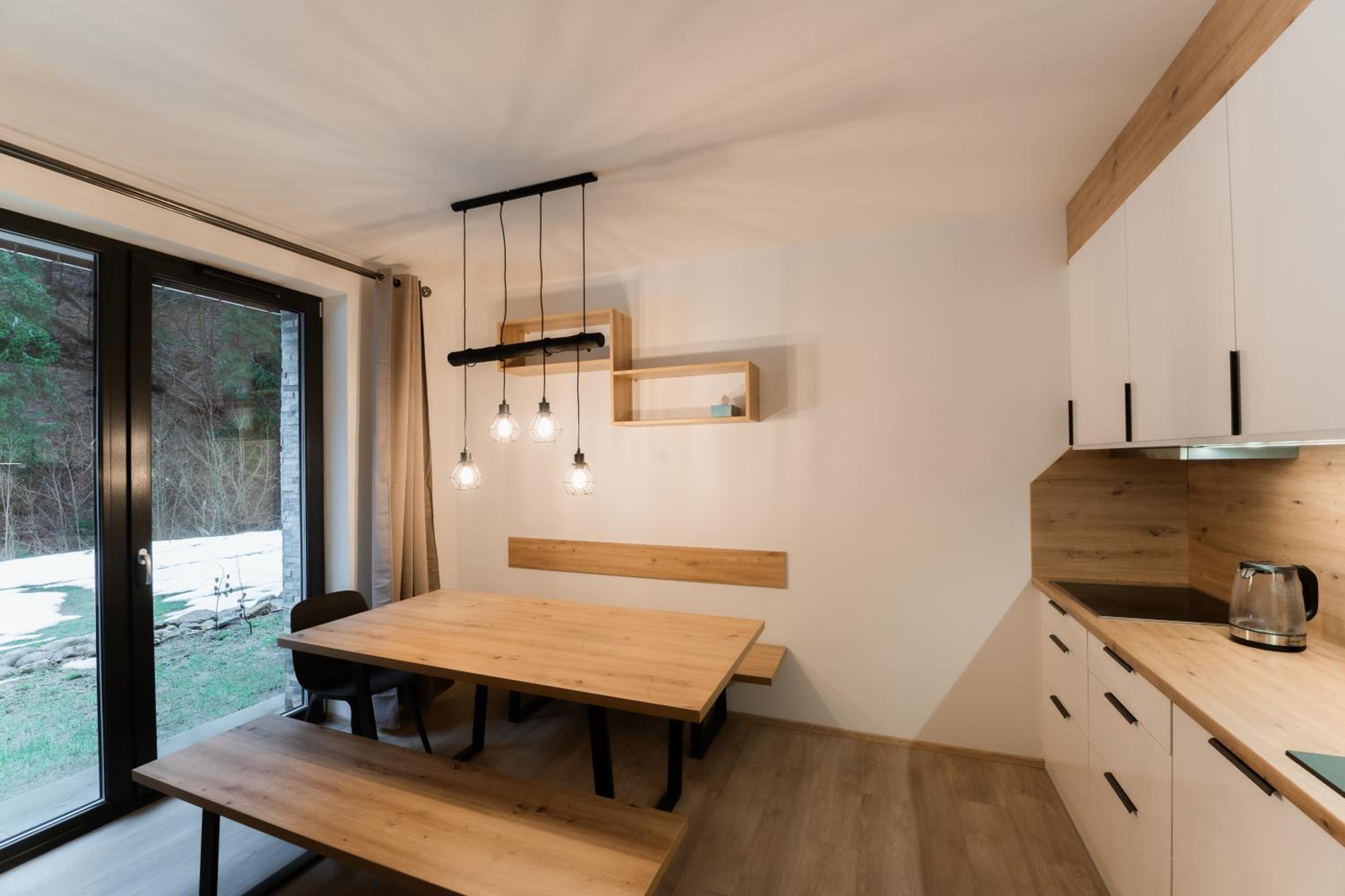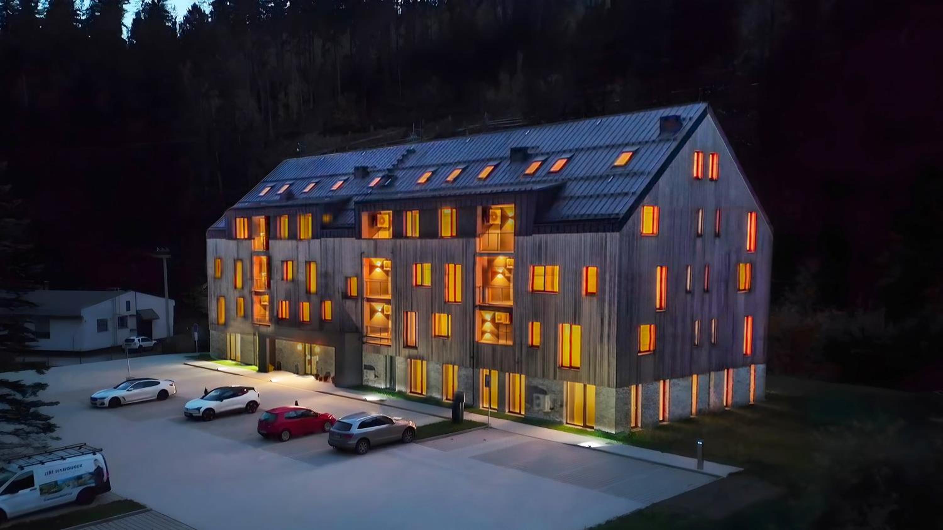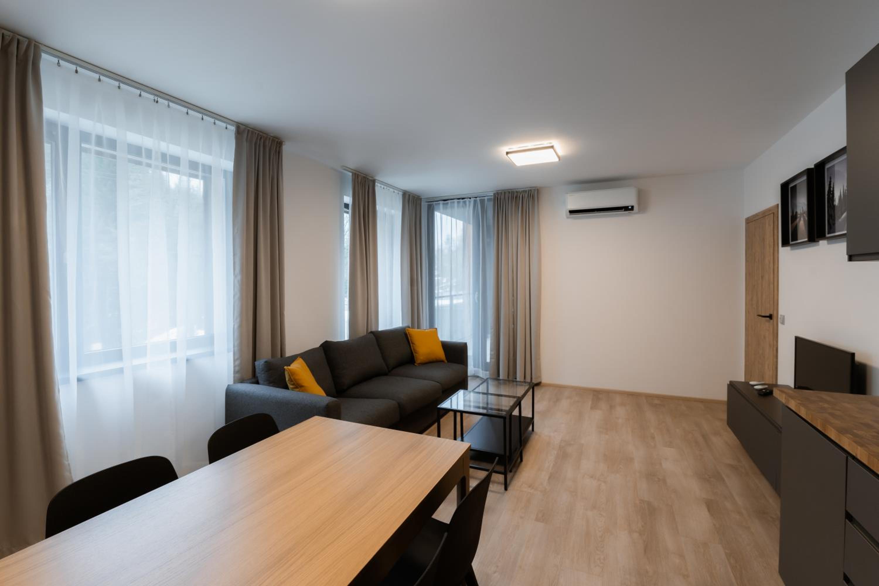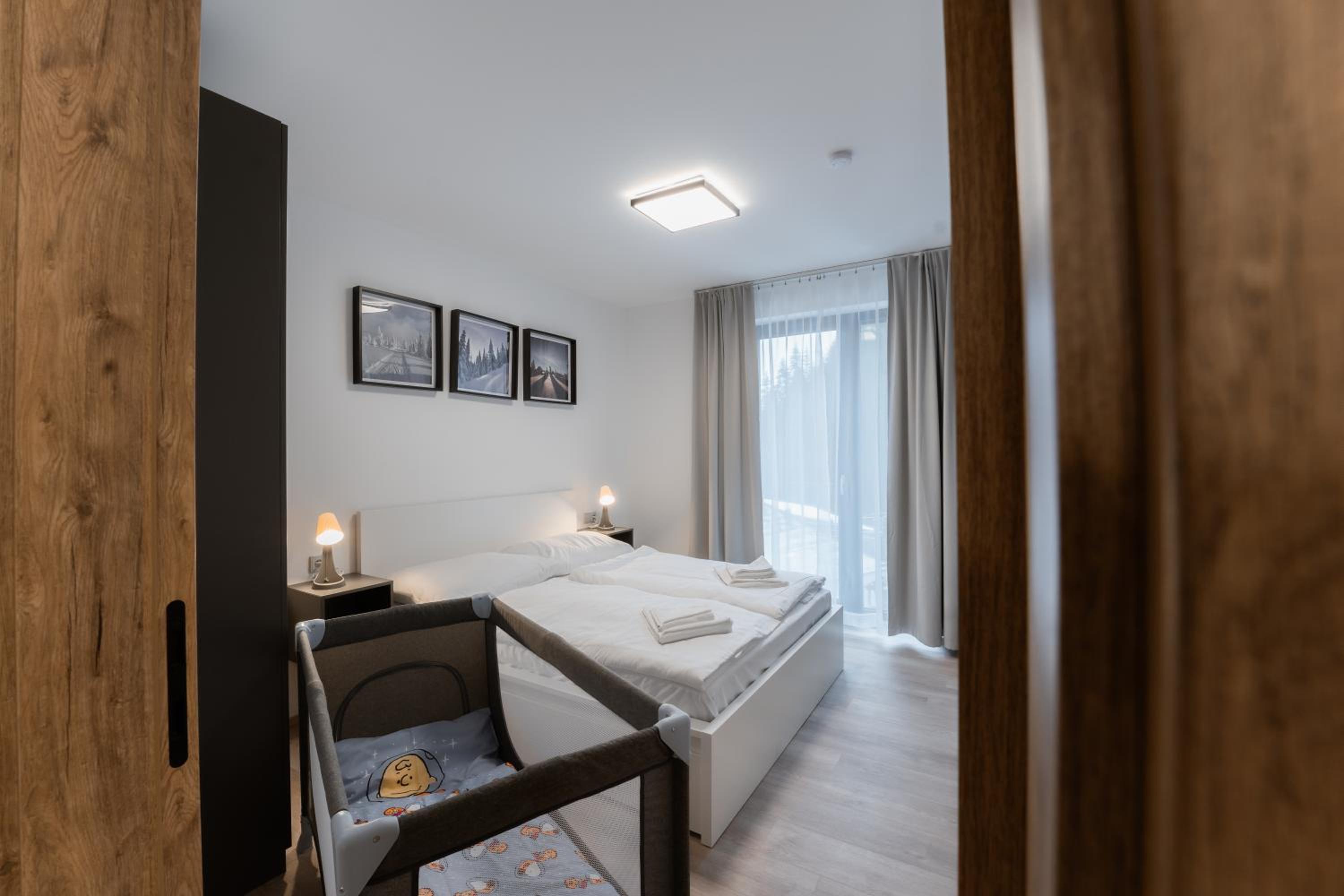 Clean, modern, comfy apartments in good location. Quiet despite being very well communicated with ski resort. Well equipped kitchen and bathrooms.