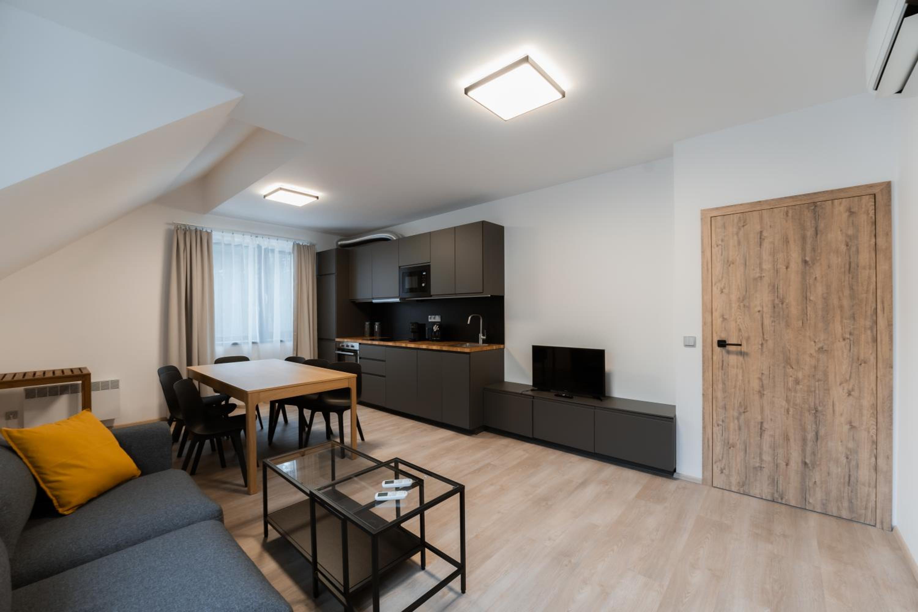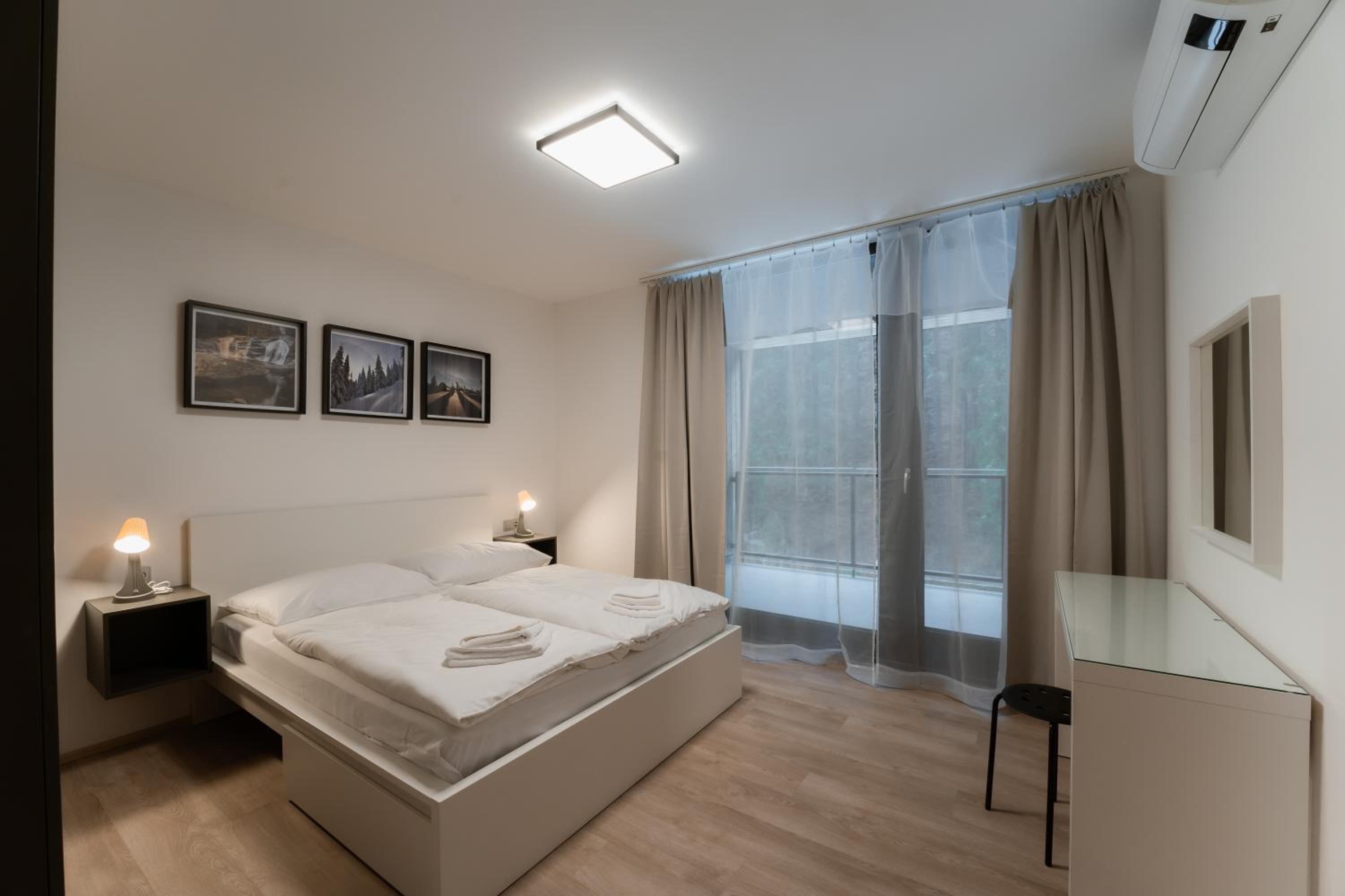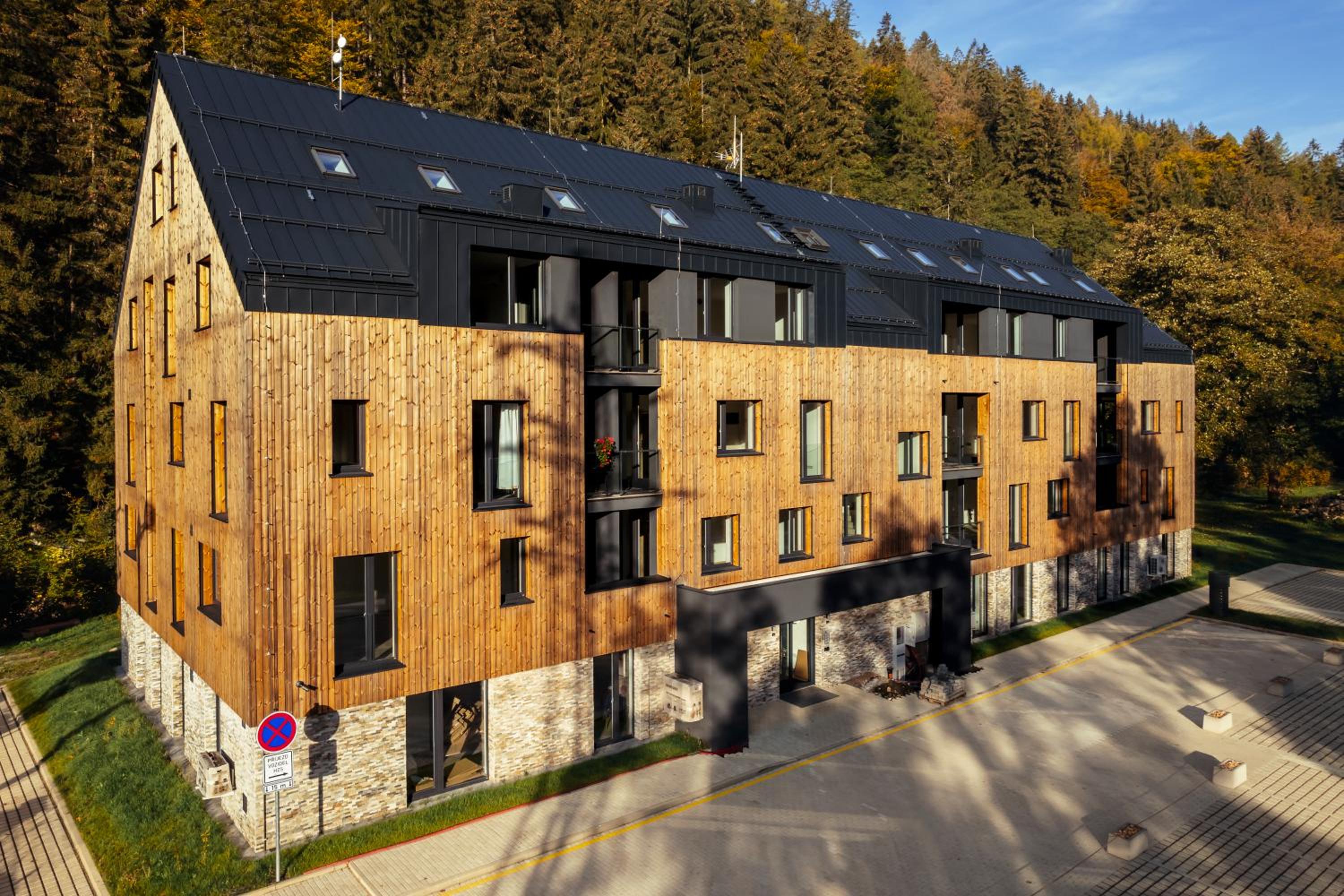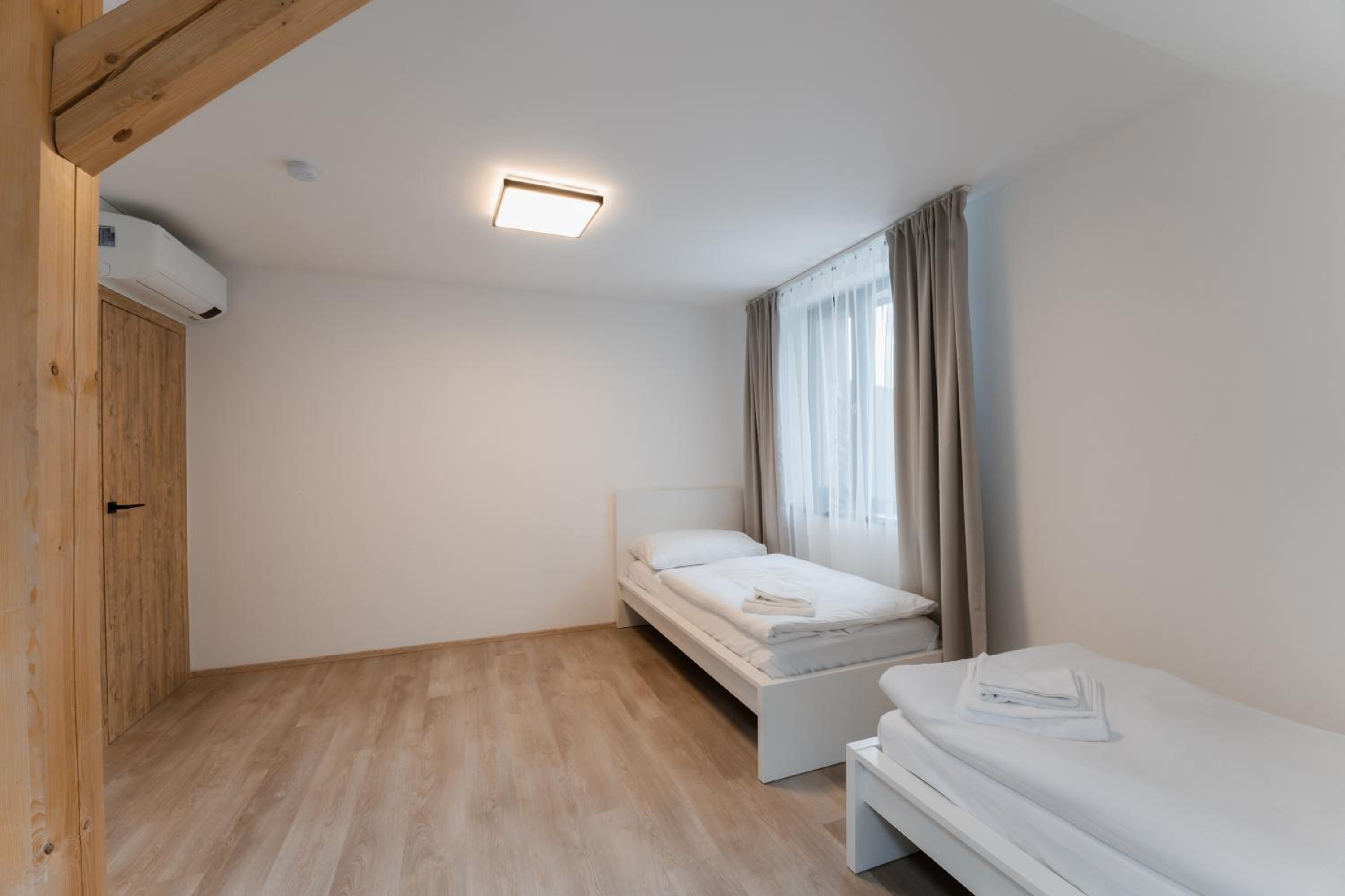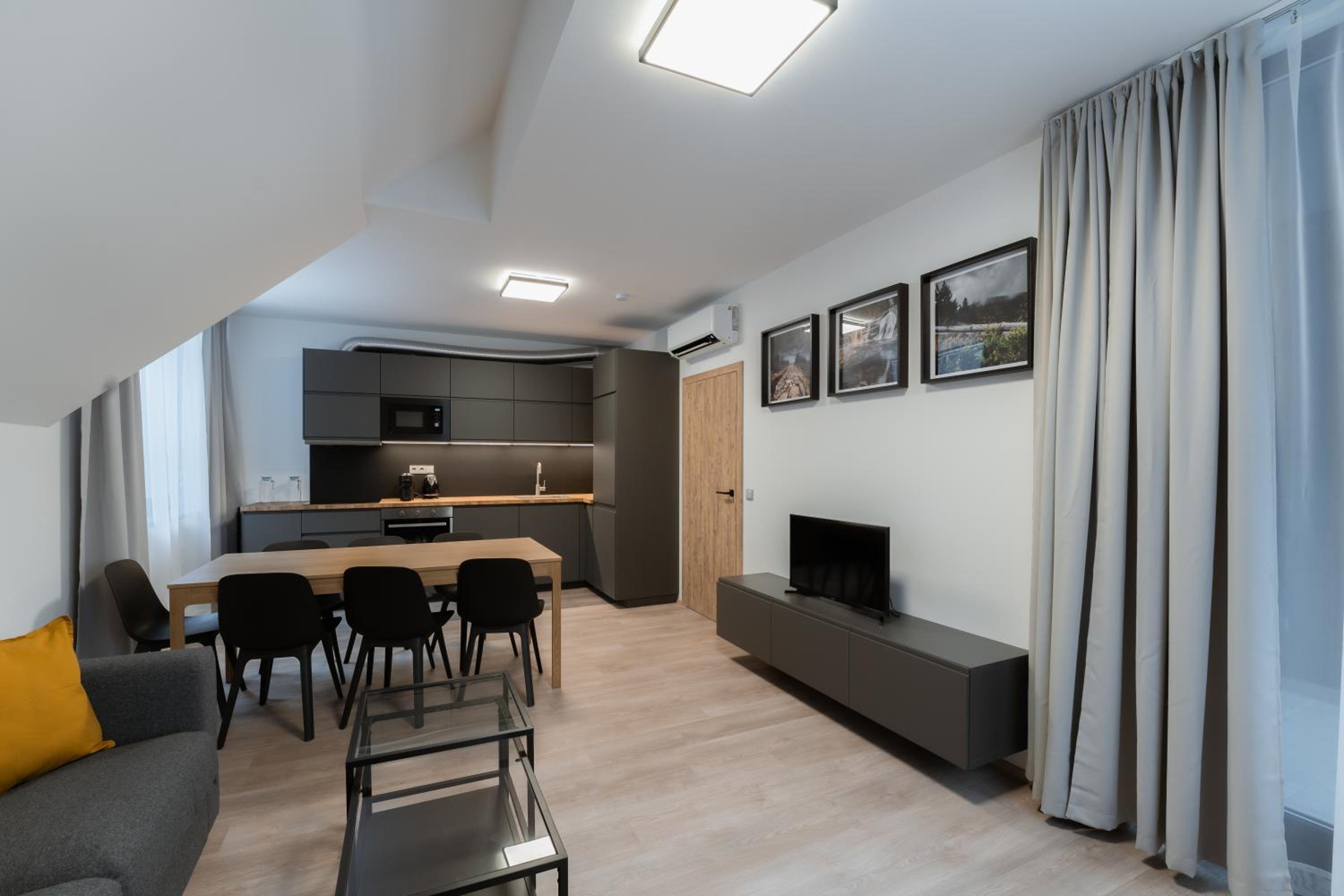 Clean, modern, comfy apartments in good location. Quiet despite being very well communicated with ski resort. Well equipped kitchen and bathrooms.