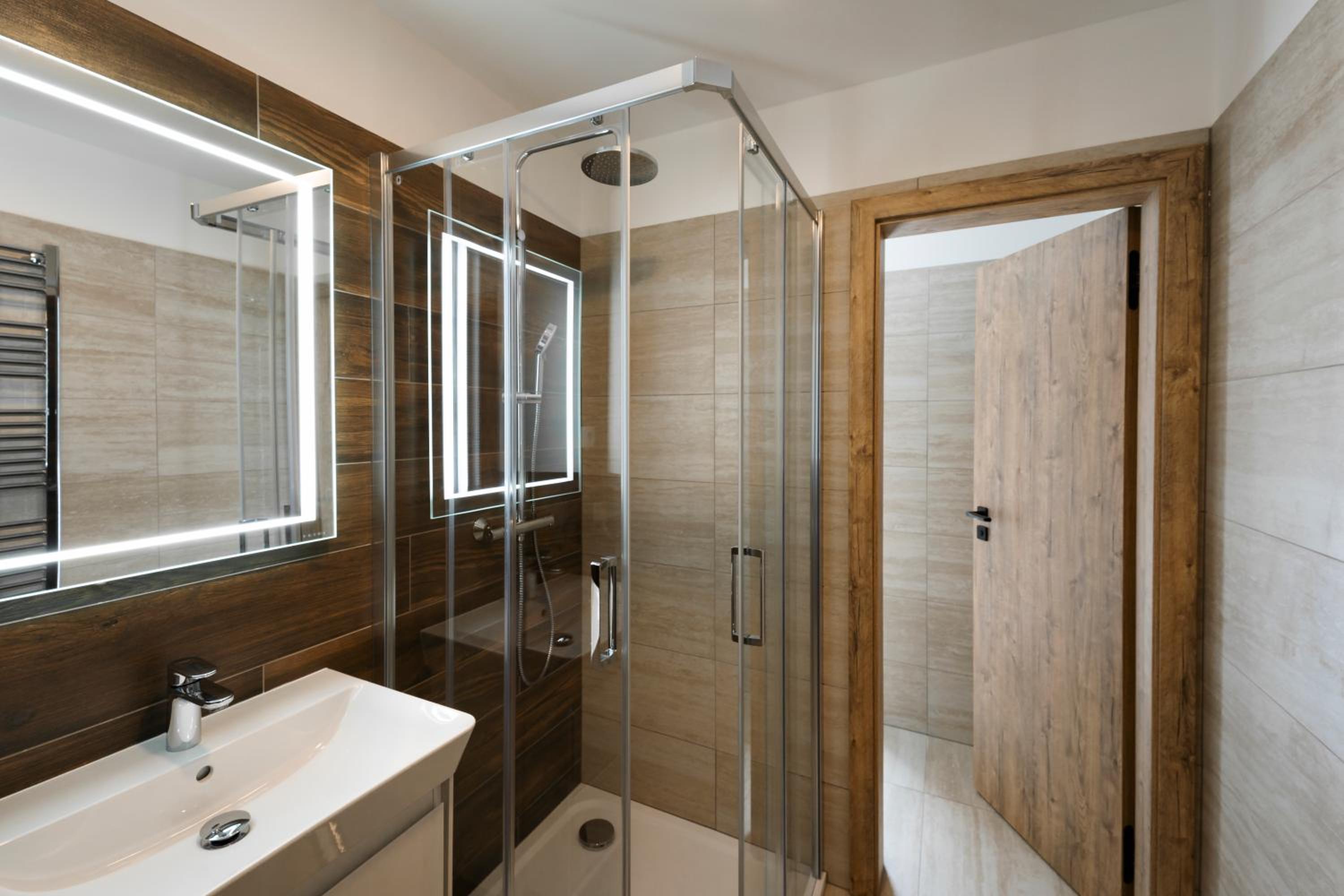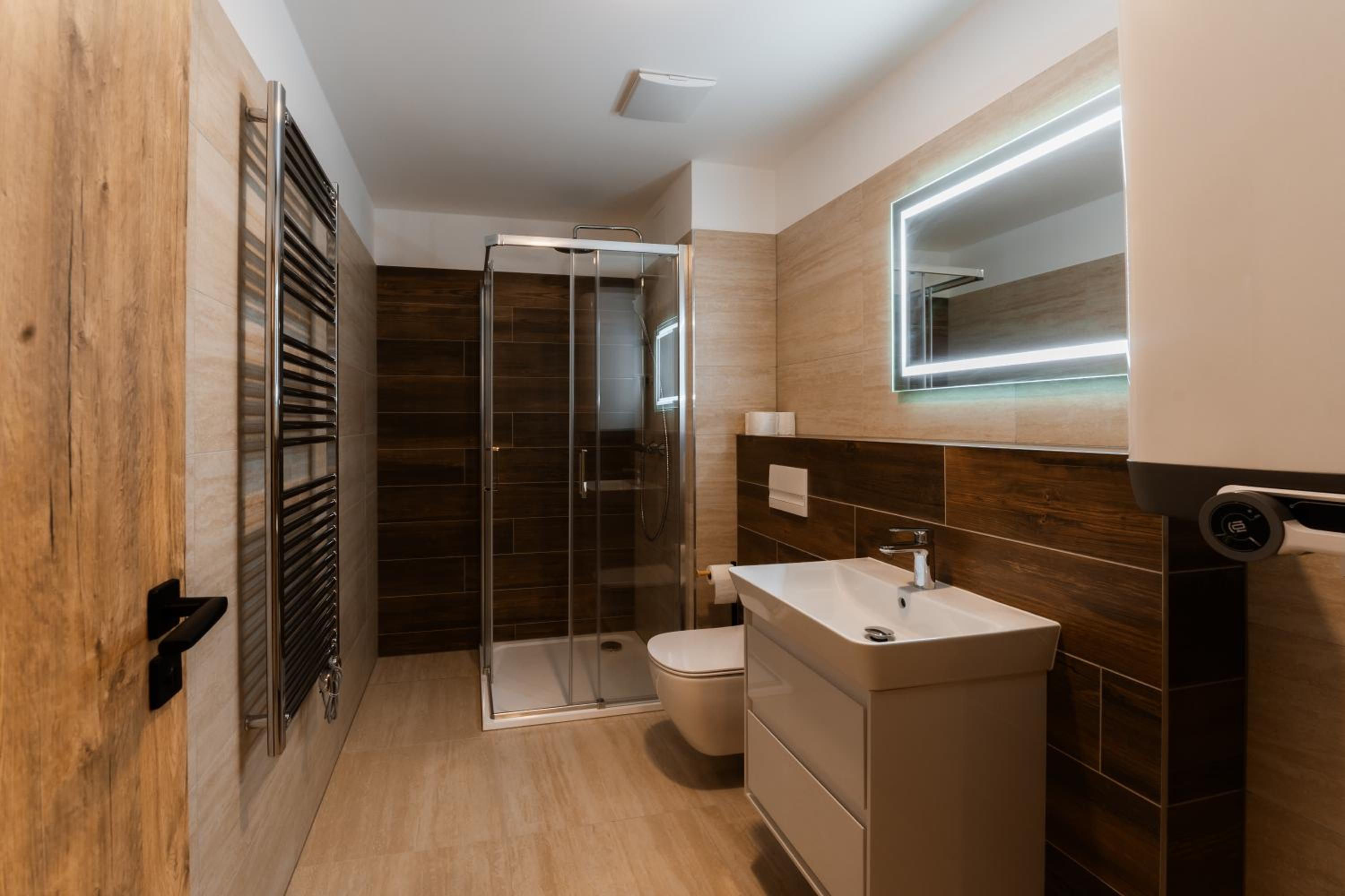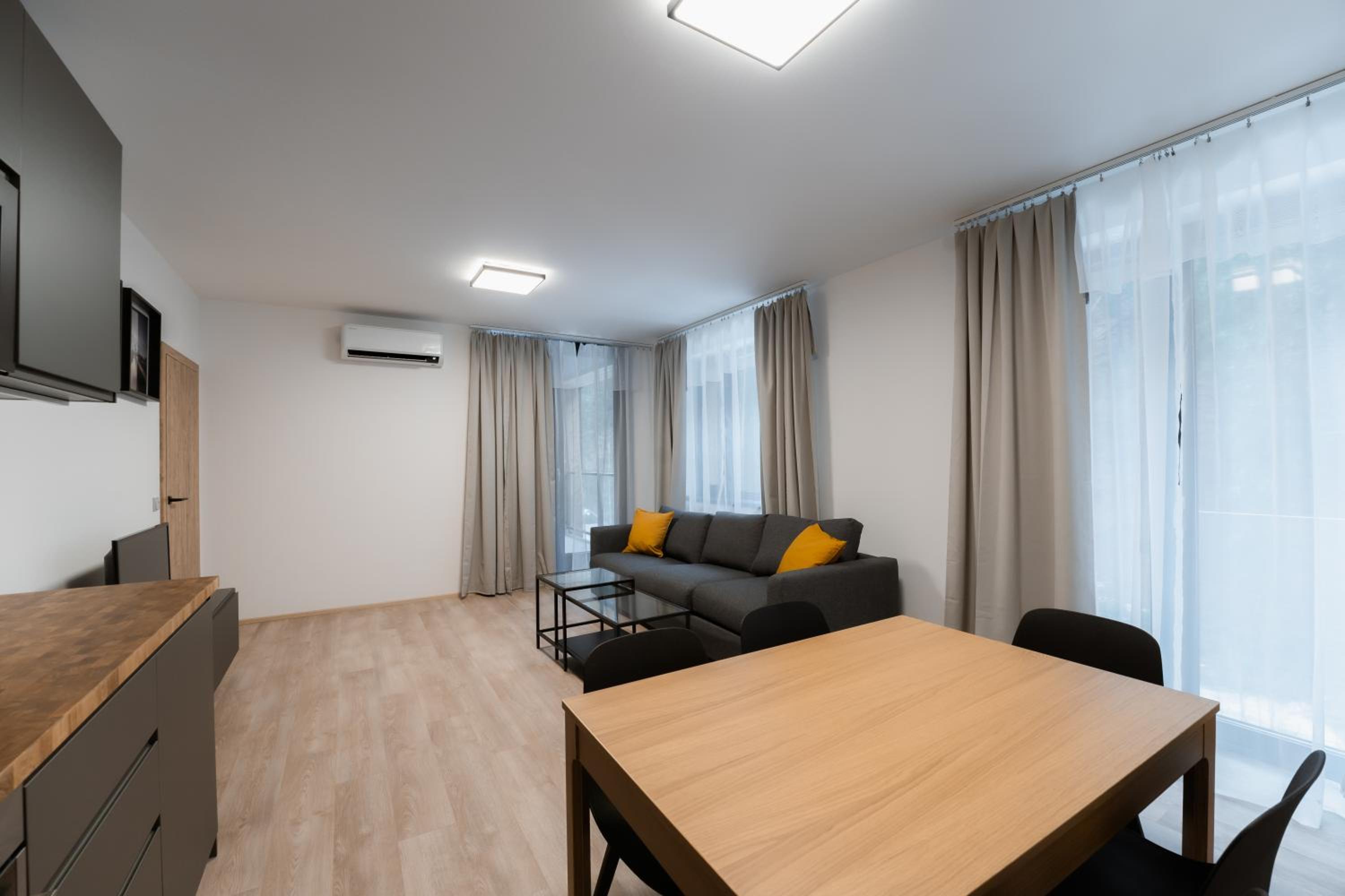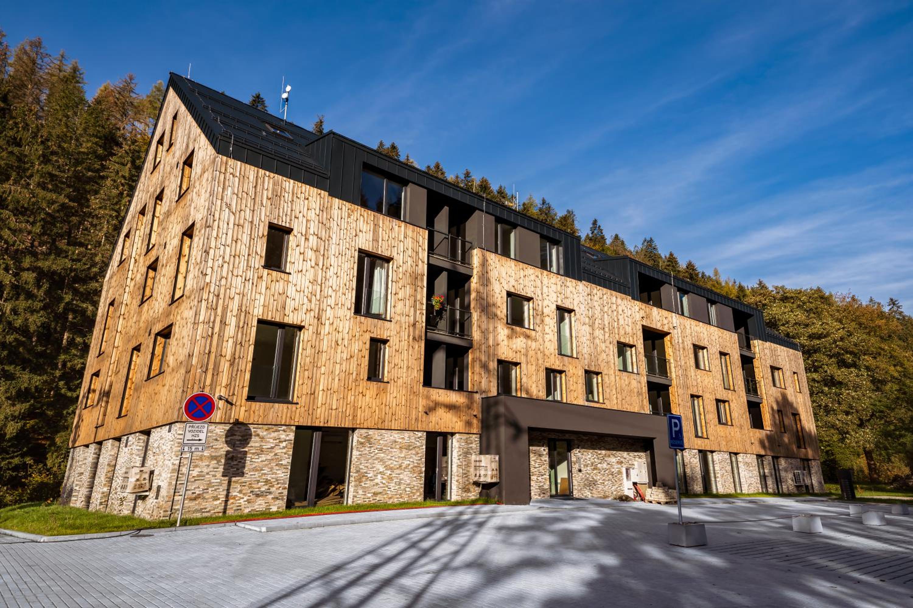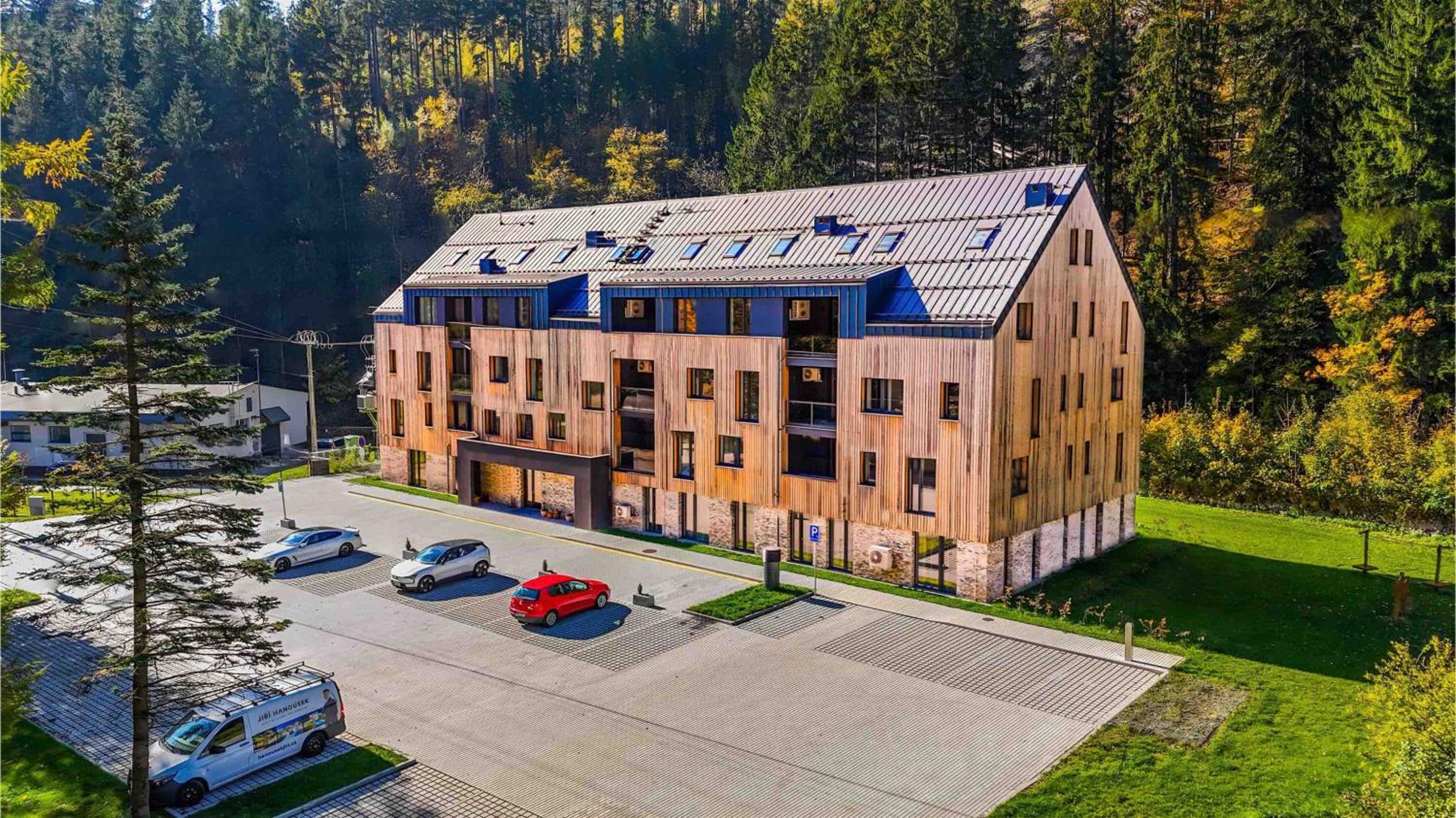 Clean, modern, comfy apartments in good location. Quiet despite being very well communicated with ski resort. Well equipped kitchen and bathrooms.