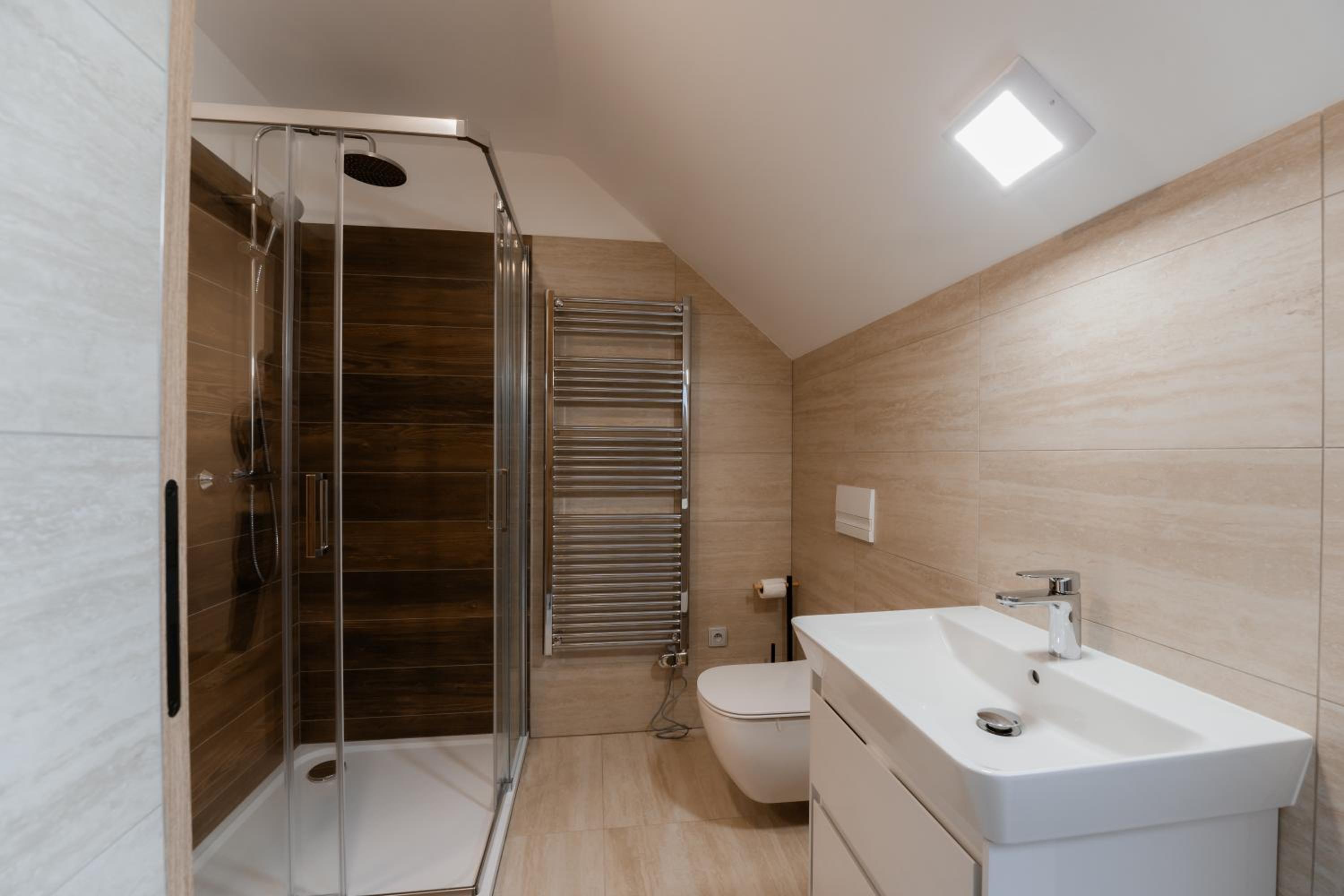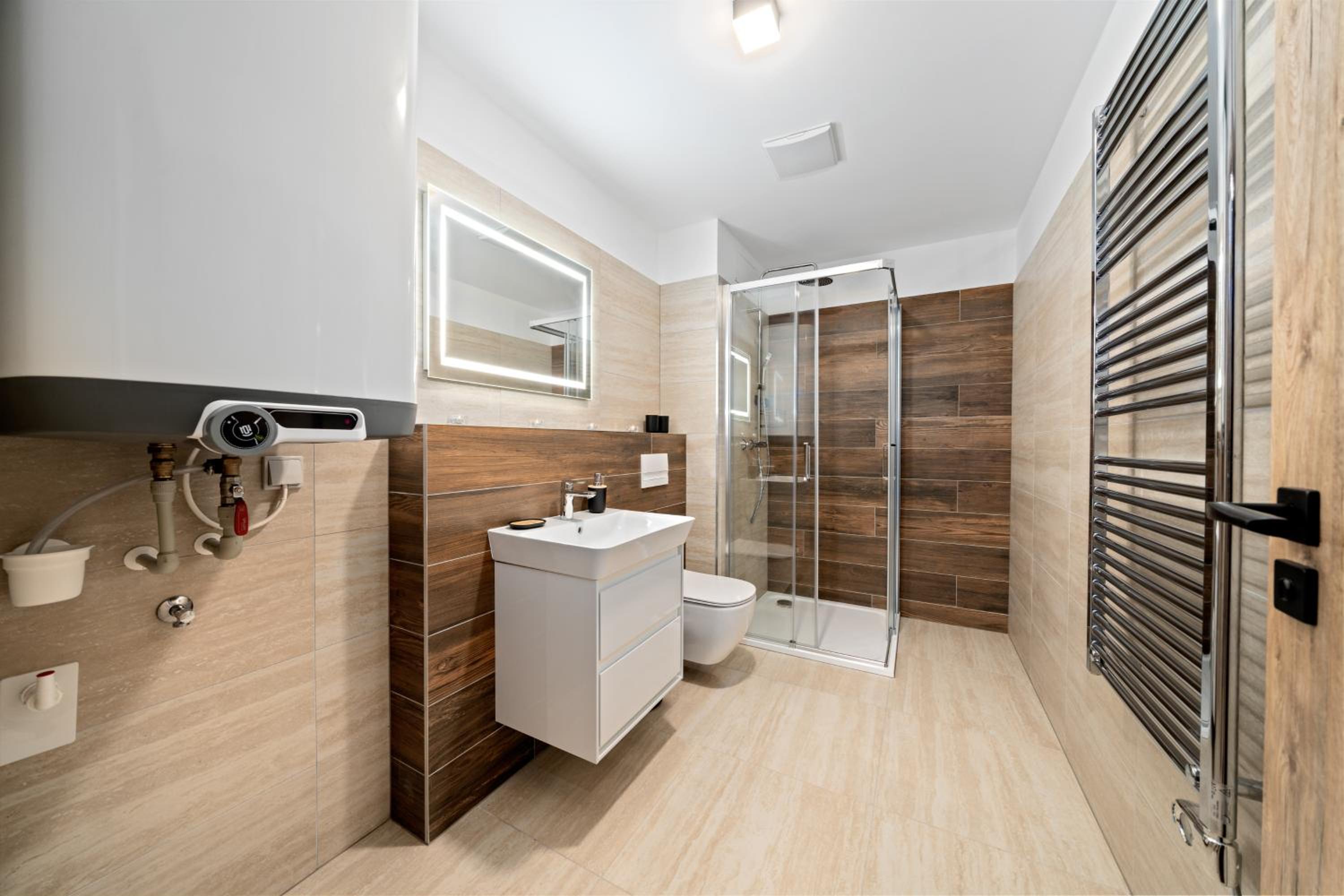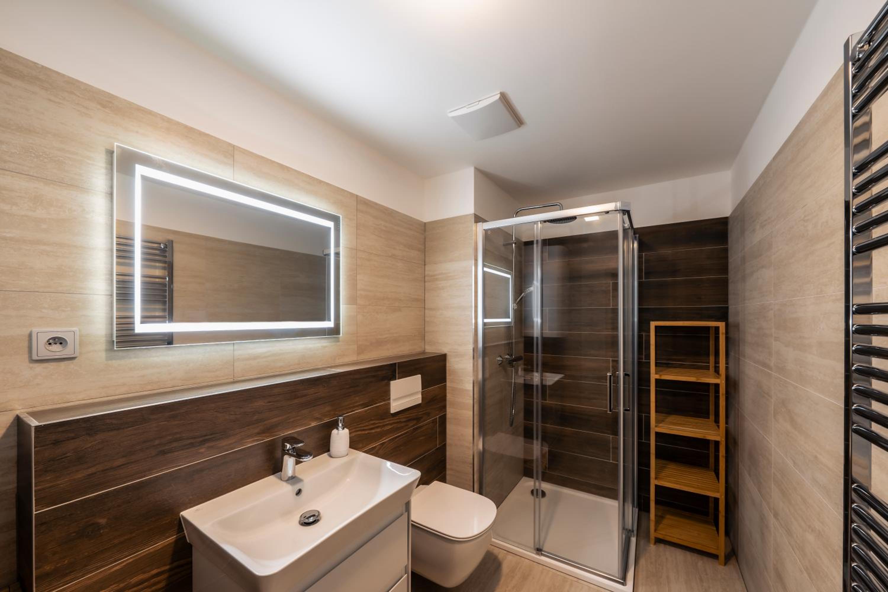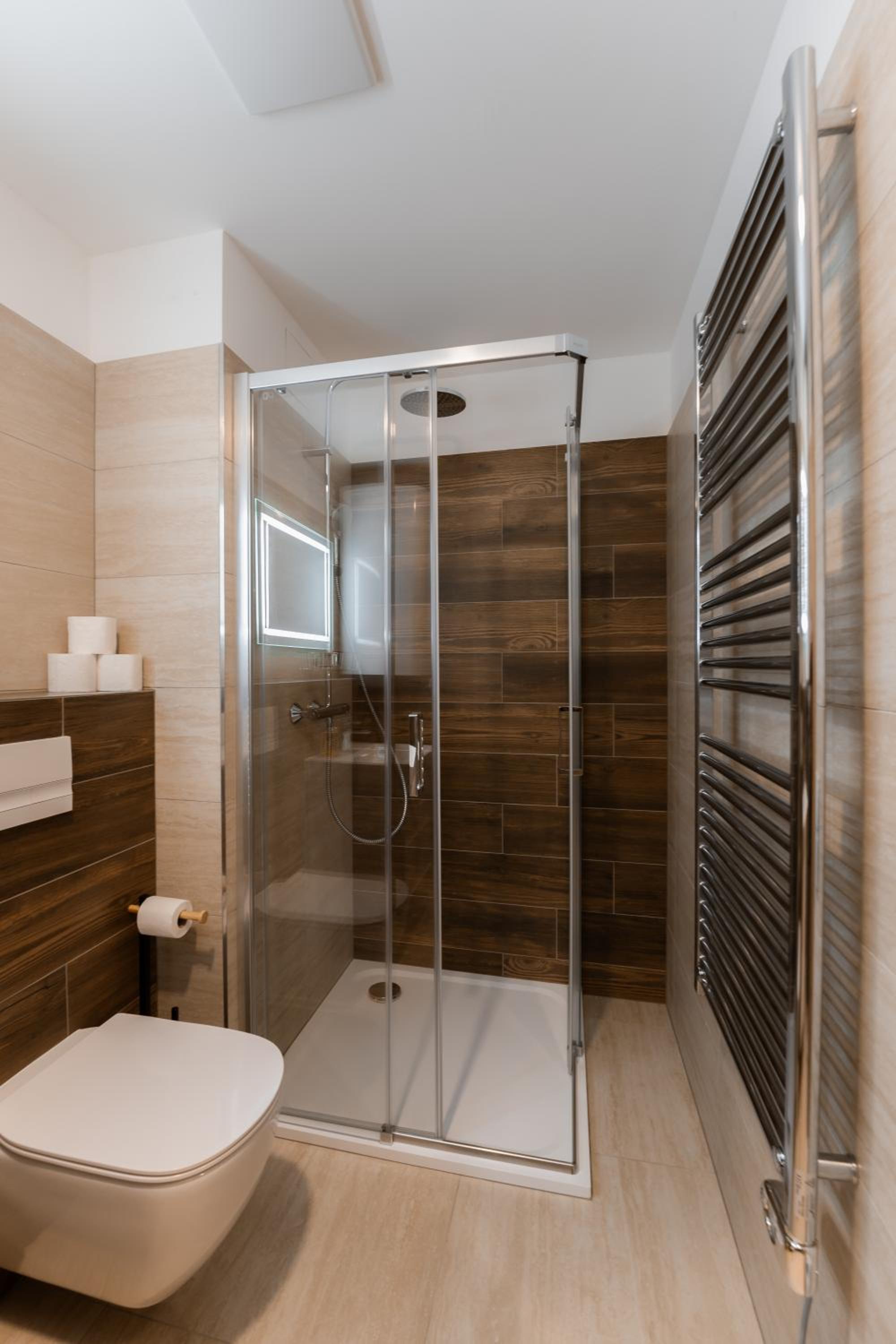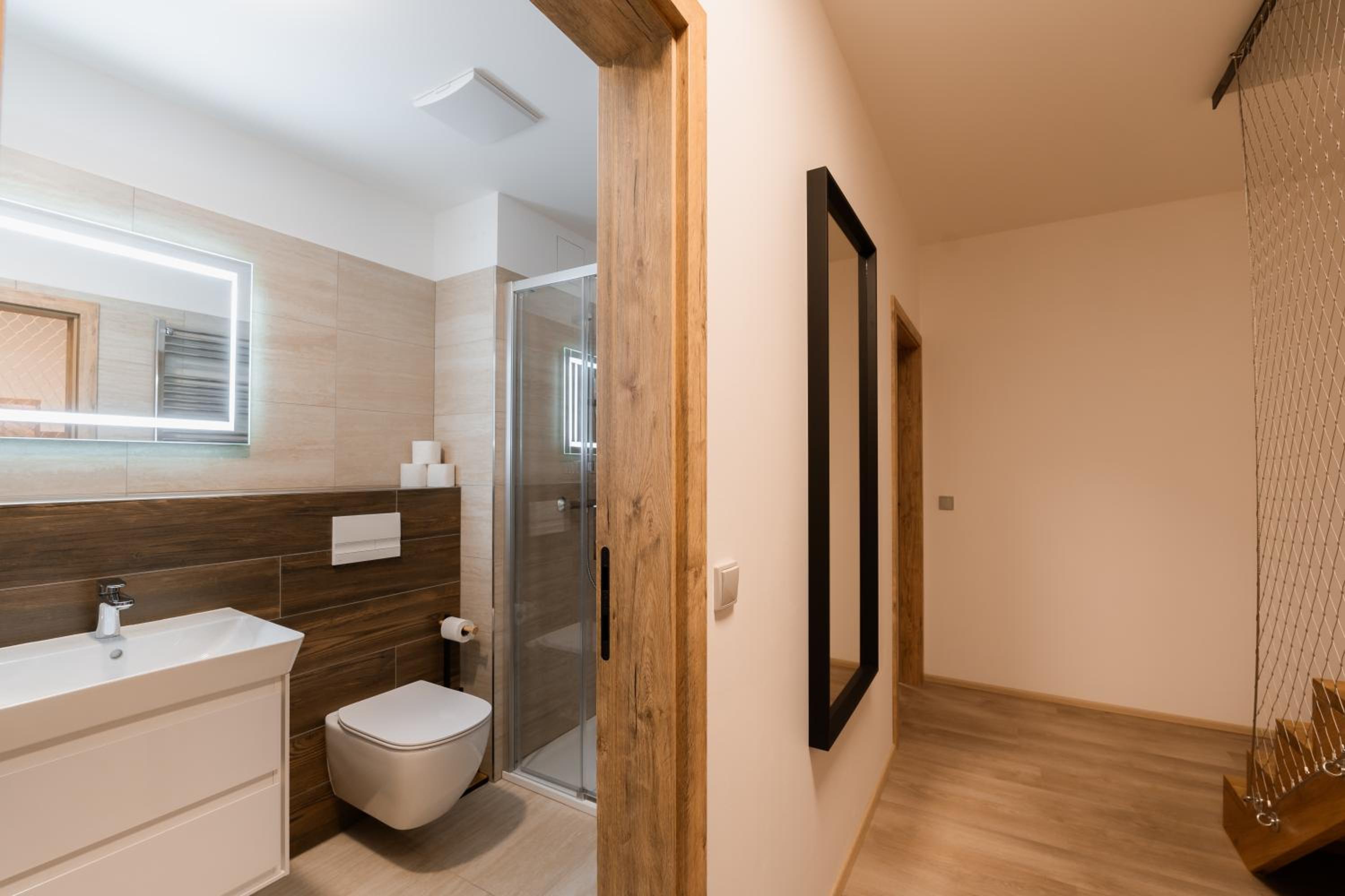 Clean, modern, comfy apartments in good location. Quiet despite being very well communicated with ski resort. Well equipped kitchen and bathrooms.