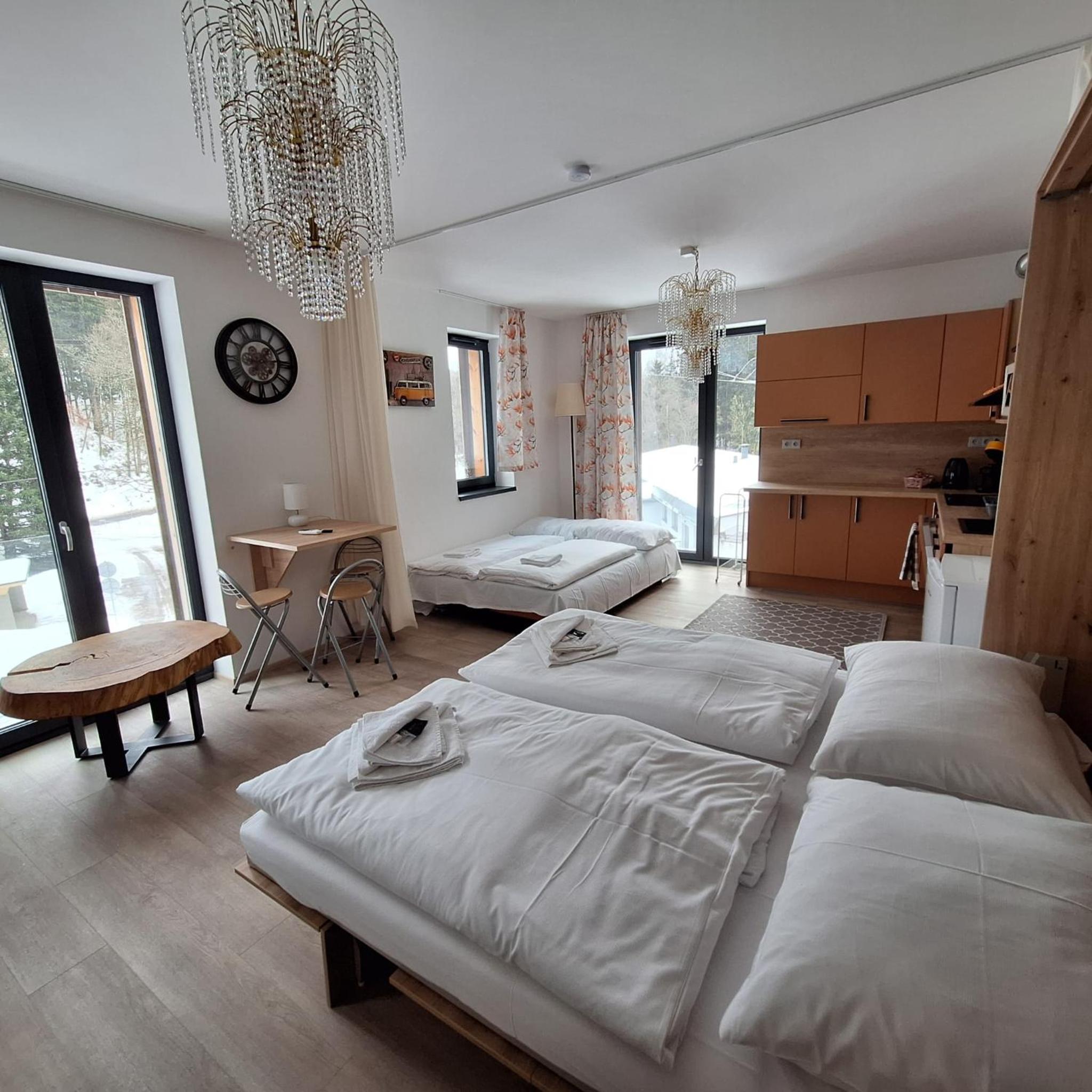 Krásné, čisté ubytování, kousek na sjezdovku, vybavení apartmánu, welness, skvělý pan majitel. Přijedu rád znovu.
