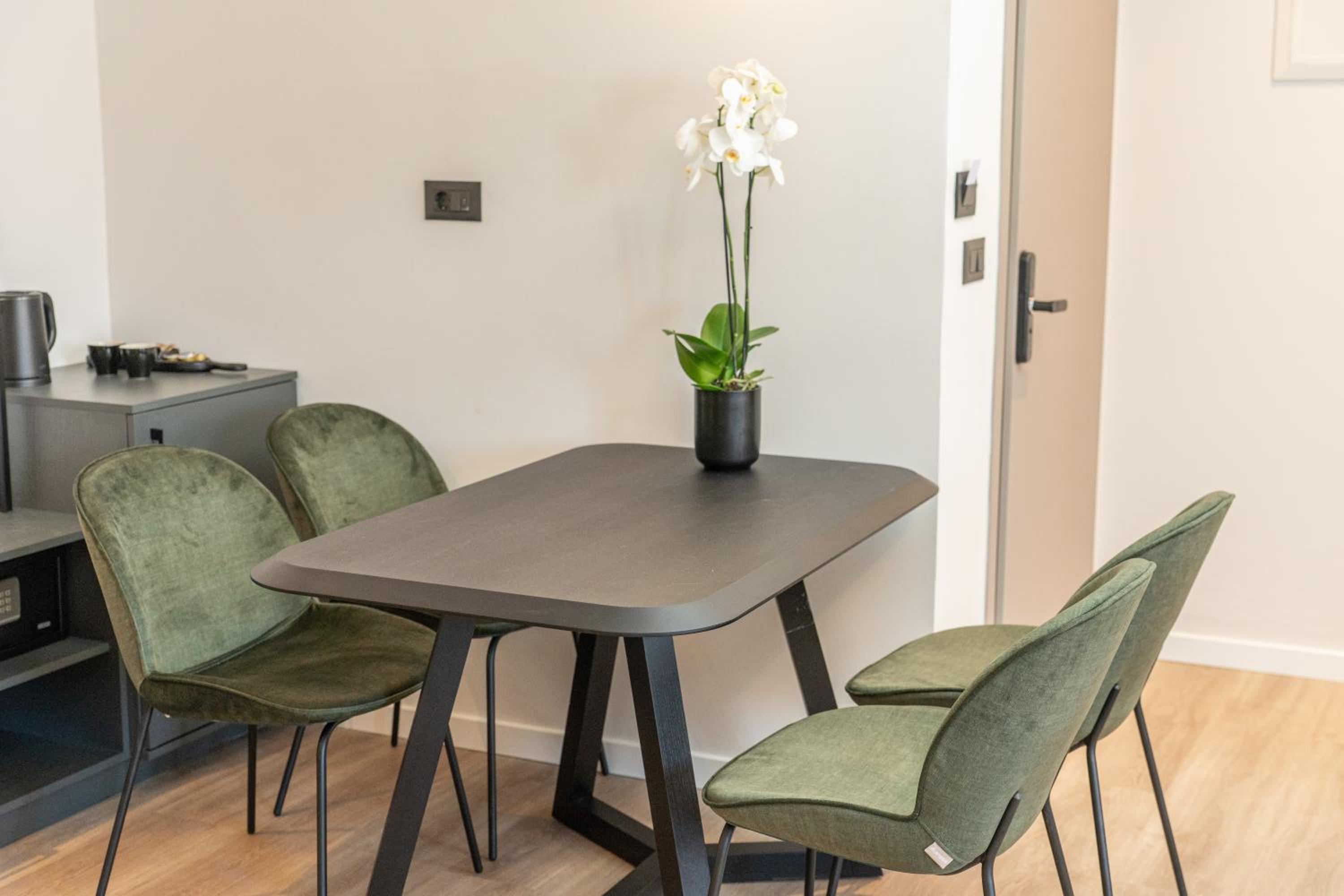 Experience a comfortable stay in our air-conditioned rooms equipped with modern amenities like a coffee machine, fridge, and flat-screen TV.