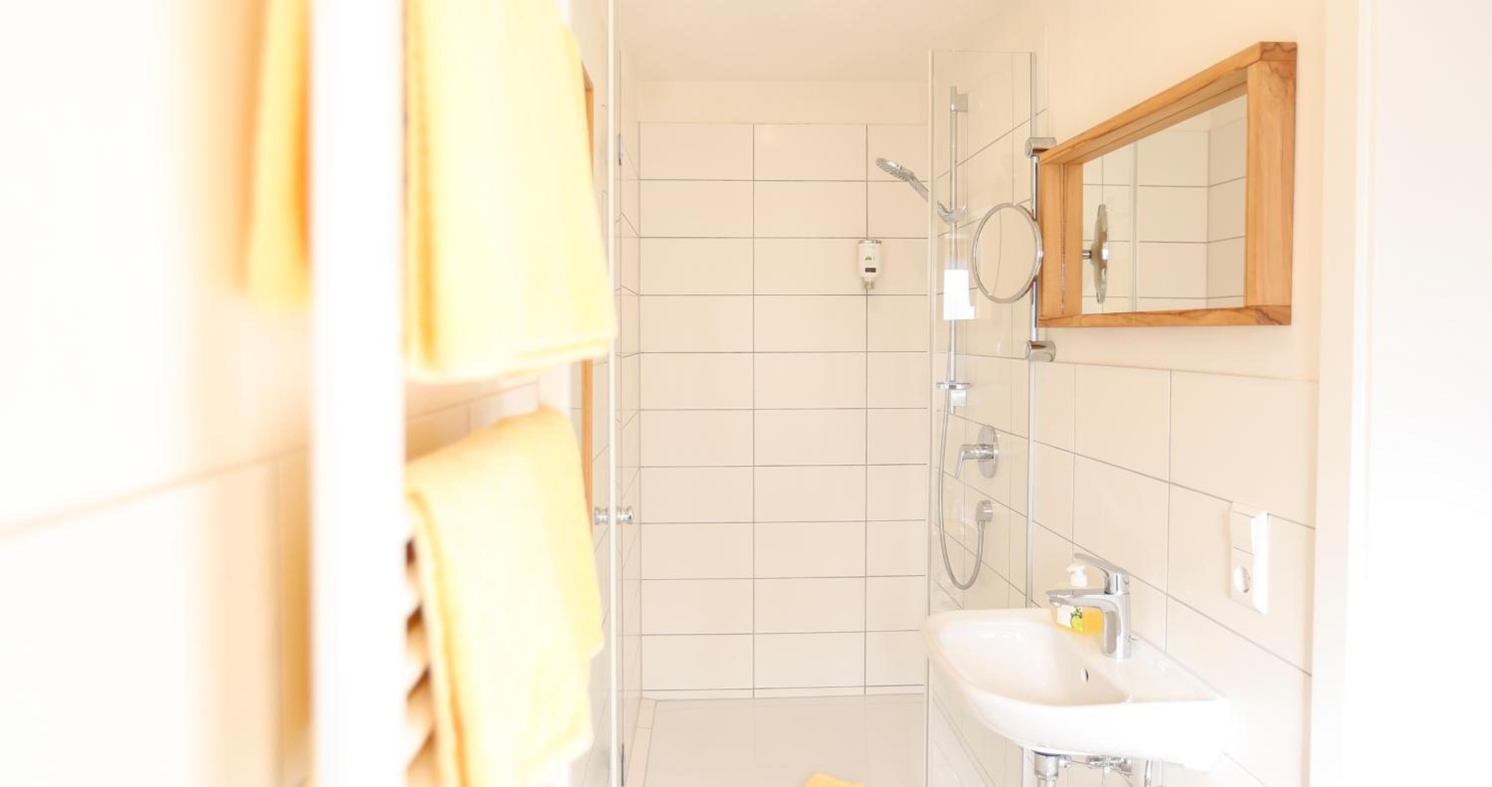 Een punt, douchen zittend in bad,niet staan, het was voor twee dagen prima te doen. Een ophanghaakje zou fijn zijn.