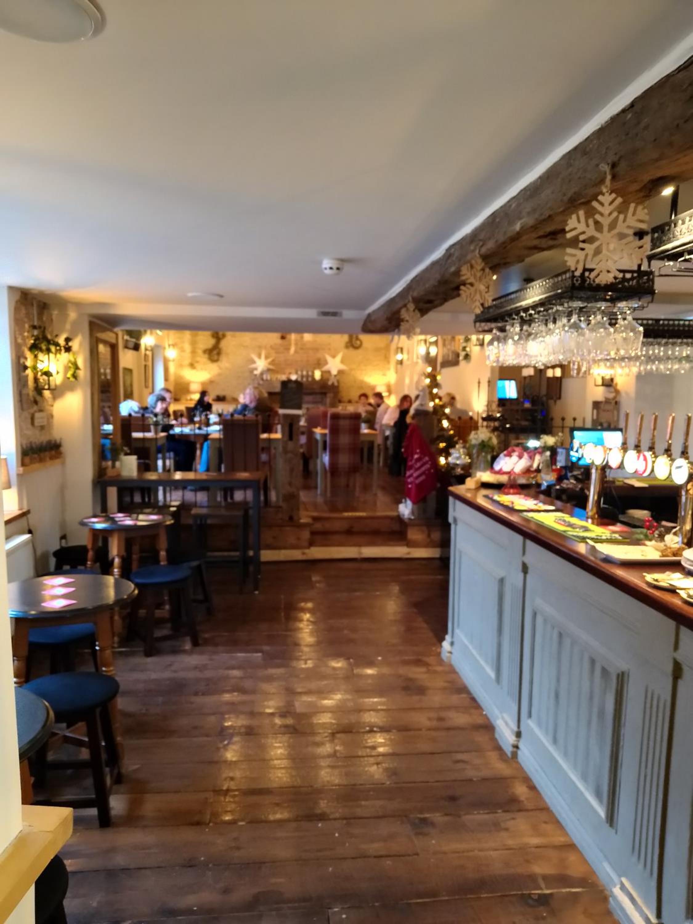 We had a very warm welcome from Steve and the staff, even the patrons in the bar area were very friendly. We booked a table for dinner at 6pm and the food was delicious, home cooked and fresh. The prices were great too. The staff were exemplary and could not do enough to look after us. I had a shandy (as I don't really drink) and they even gave me a small glass of lemonade so I could mix it how I wanted it, amazing. The bedroom was on the top floor so it's nice and quite, and due to the weather being extremely cold they even put an extra electric heater in the room so it was very toasty. The room was clean and very comfortable, all you'd expect in a decent hotel, this was better than many we've stayed in around London etc for double/triple the price. There is ample free car, parking at the back of hotel so you don't need to worry about a parking fine. The whole building is beautifully decorated and is very homely. The breakfast was delicious and my wife had the fruit bowl which she loved. We will definitely be going back to stay and eat, but I warmer weather. Thanks to Steve and all the staff that looked after us.