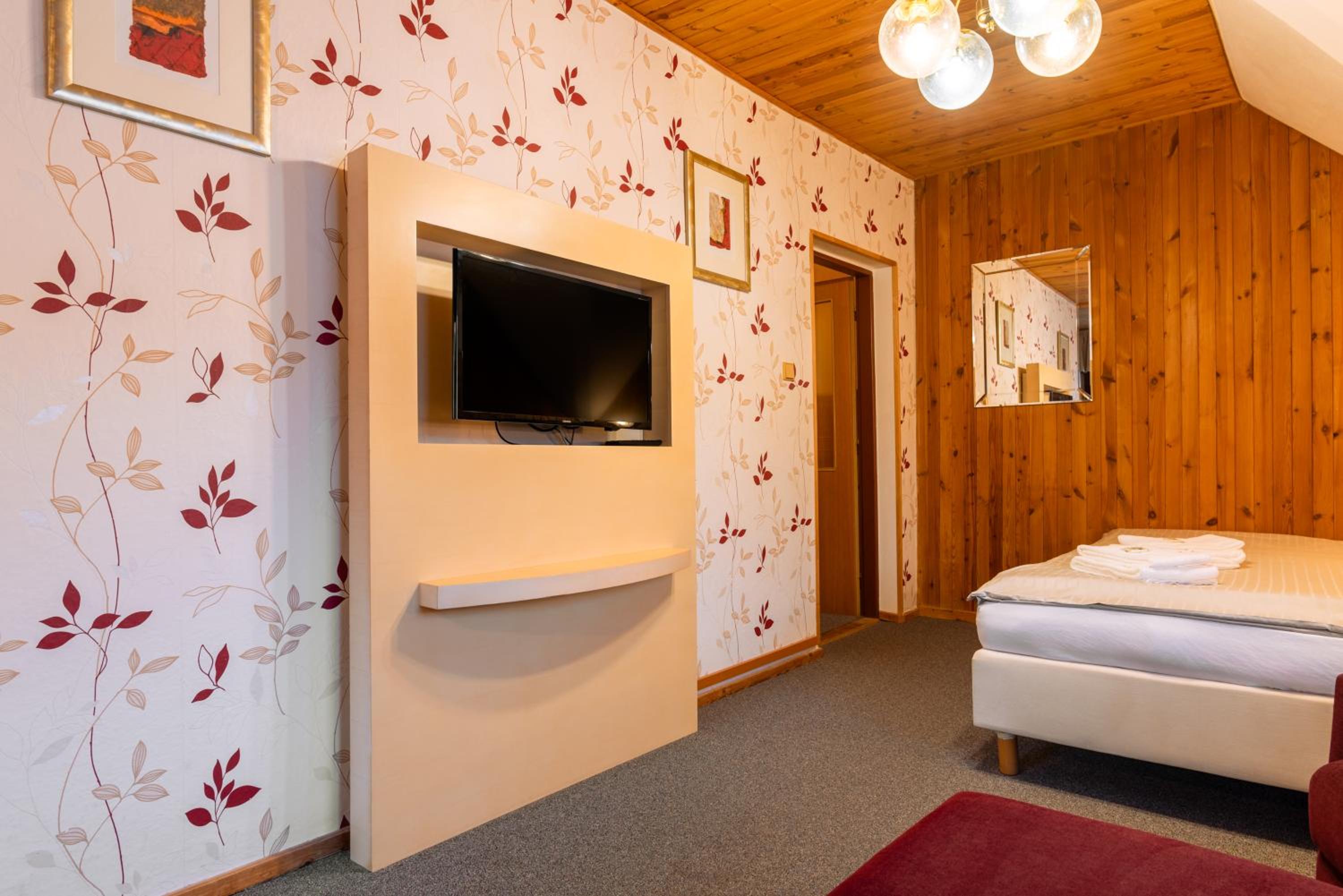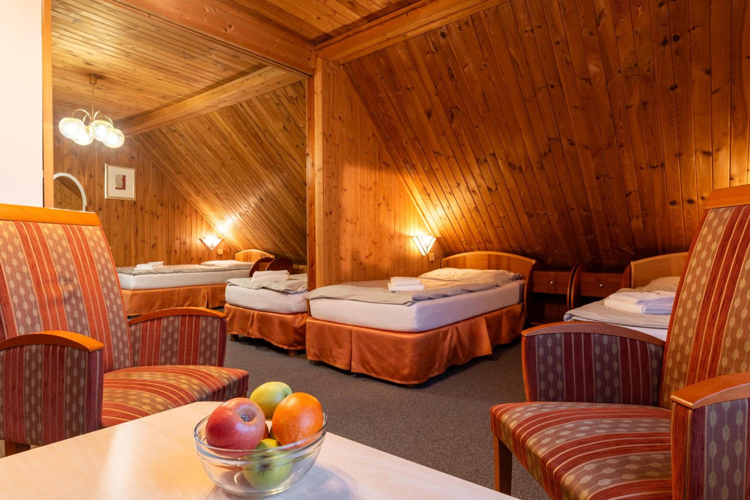 Pobyt jen 1 den v rámci treku. Velká společenská místnost s výběrem knih. vnitřní bazén.virivka nefunkční, sauna na objednání . Pěkné, čisté pokoje. Milý personál a super kuchyně. Na přespání ideál.