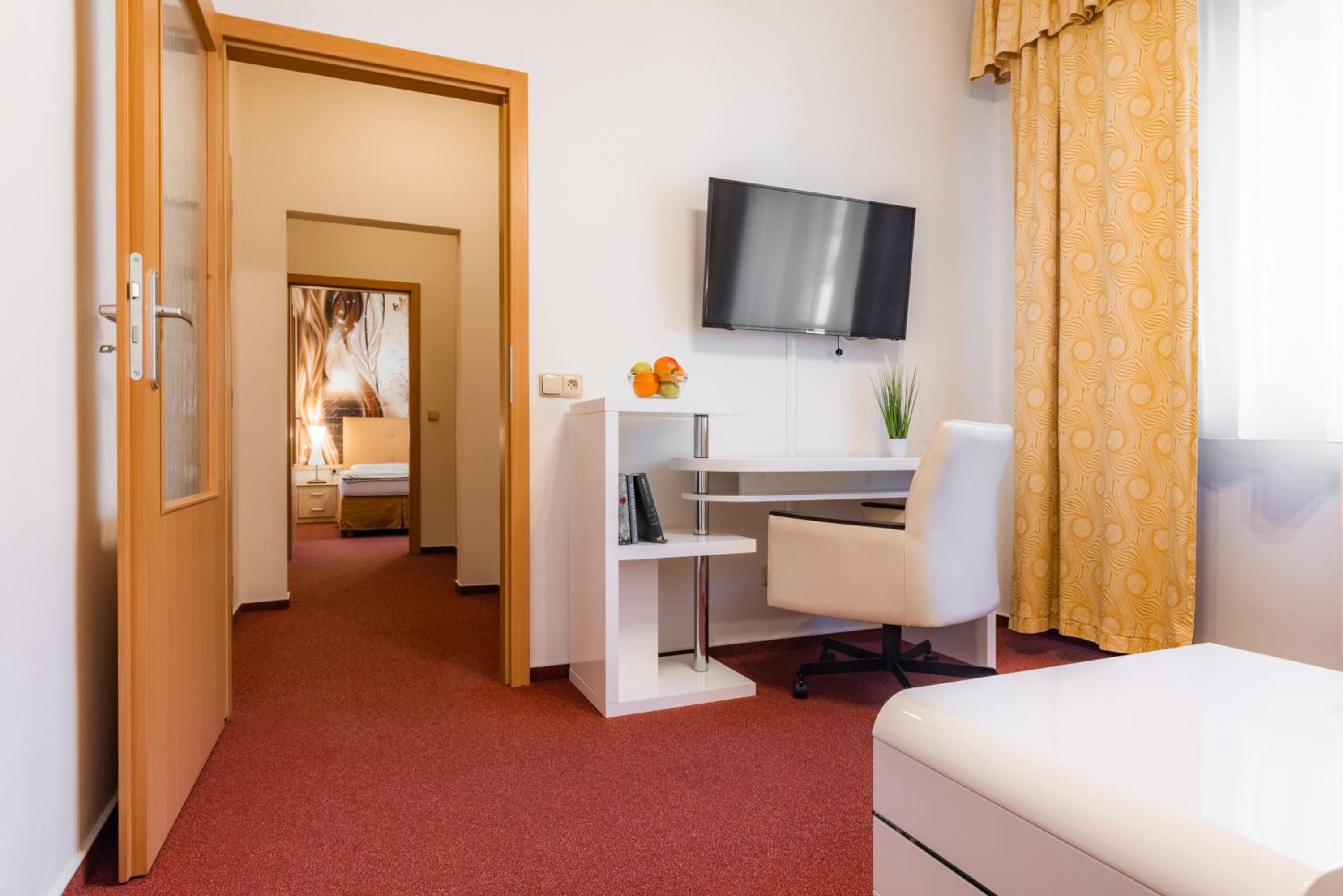 Indulge in a delicious buffet breakfast every morning at Hotel Schwarz's restaurant. Some rooms offer a picturesque city view, providing a charming backdrop for your stay.