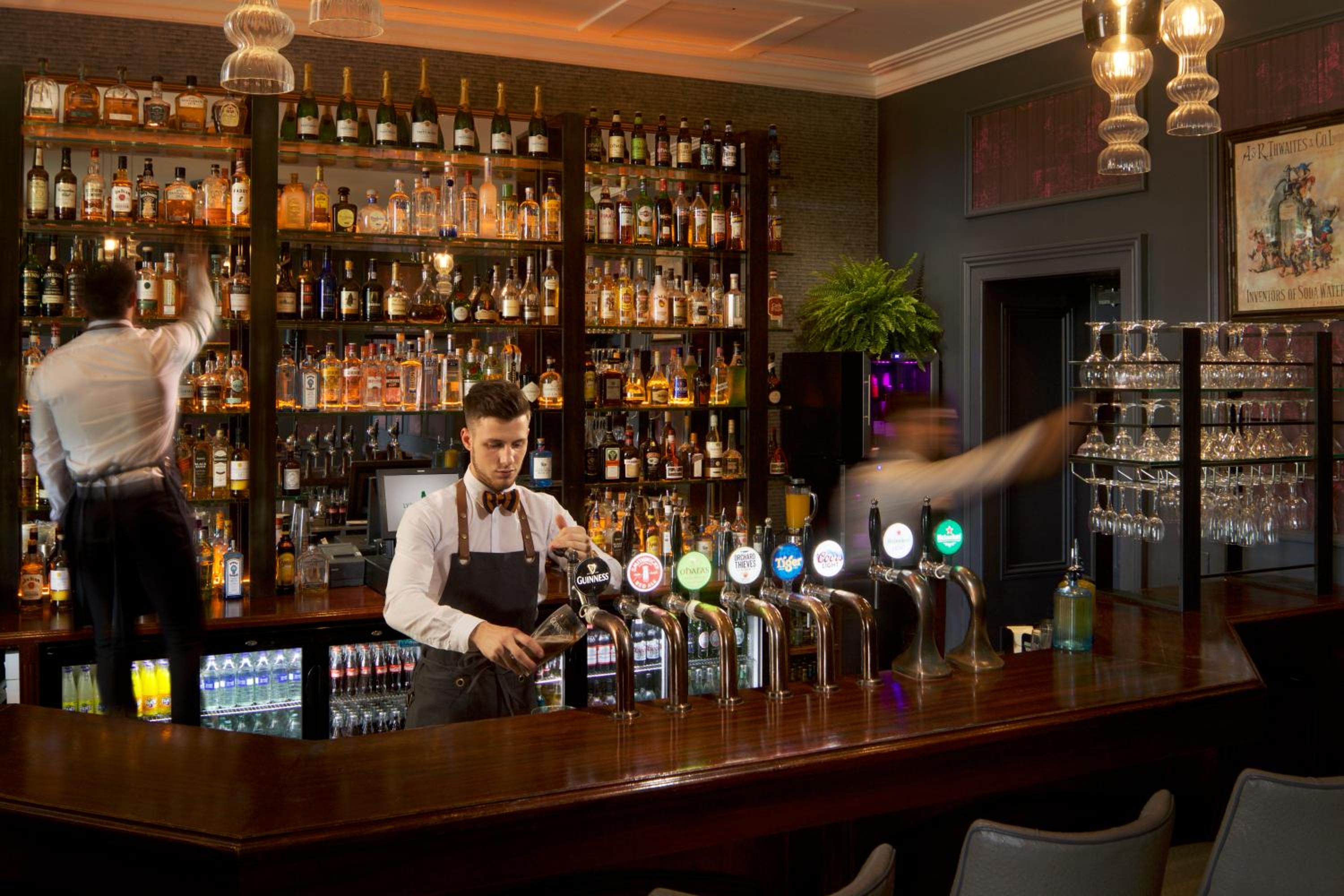 Indulge in contemporary Irish cuisine at Yew Restaurant or savor traditional Irish fare at Tupper's bar. The Grill & Bar on the mezzanine level offers panoramic views, an open kitchen, and a cocktail bar, providing a unique dining experience.