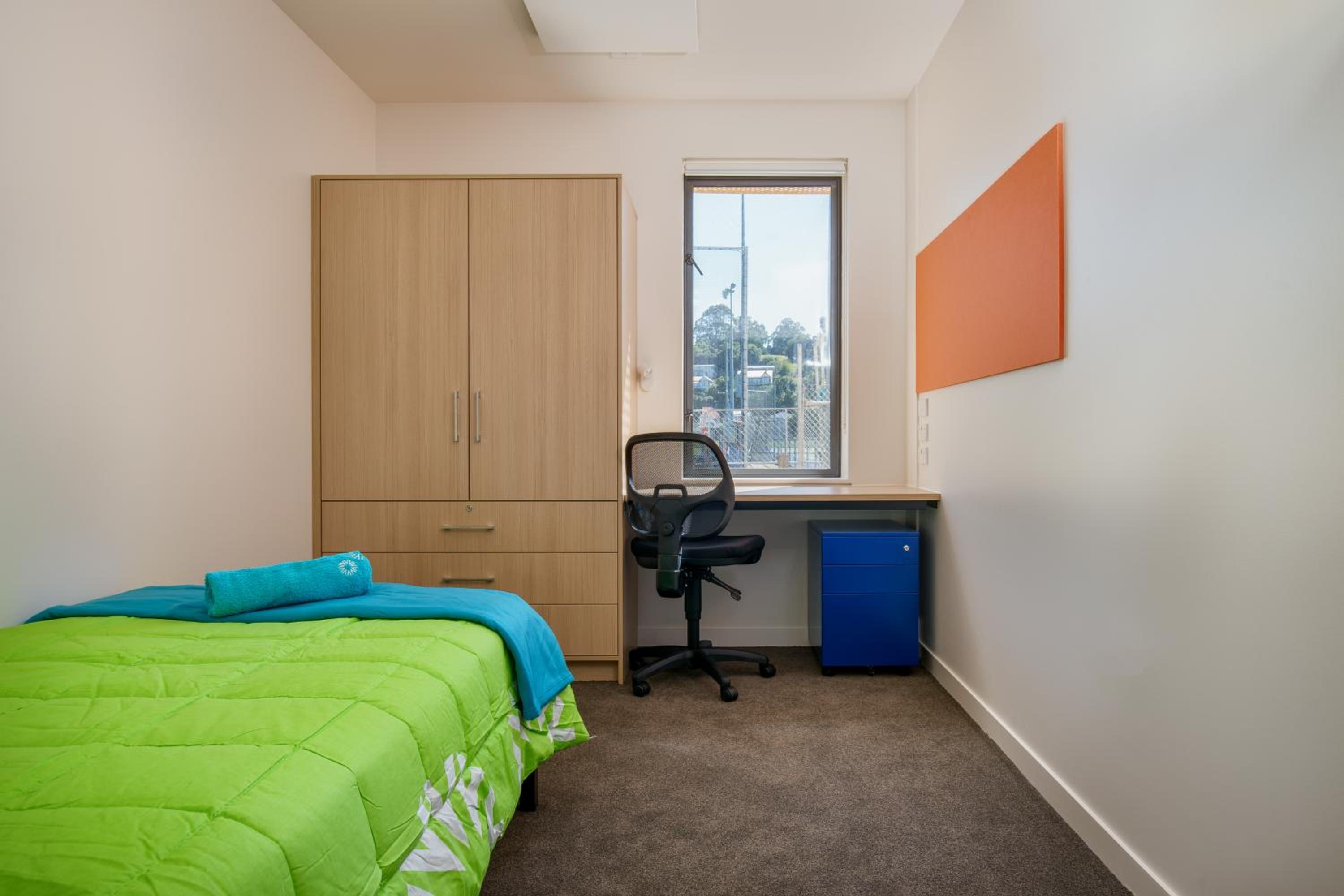 I loved the accessibility to the university, and the central position of the room to the entrance and lovely clean kitchen and dining facilities with the awesome view out to the hockey fields and surrounding hills. I loved the friendly staff who assisted with assisting with my after hours arrival, directions and getting on top of the internet. Definitely a safe place with fob access.