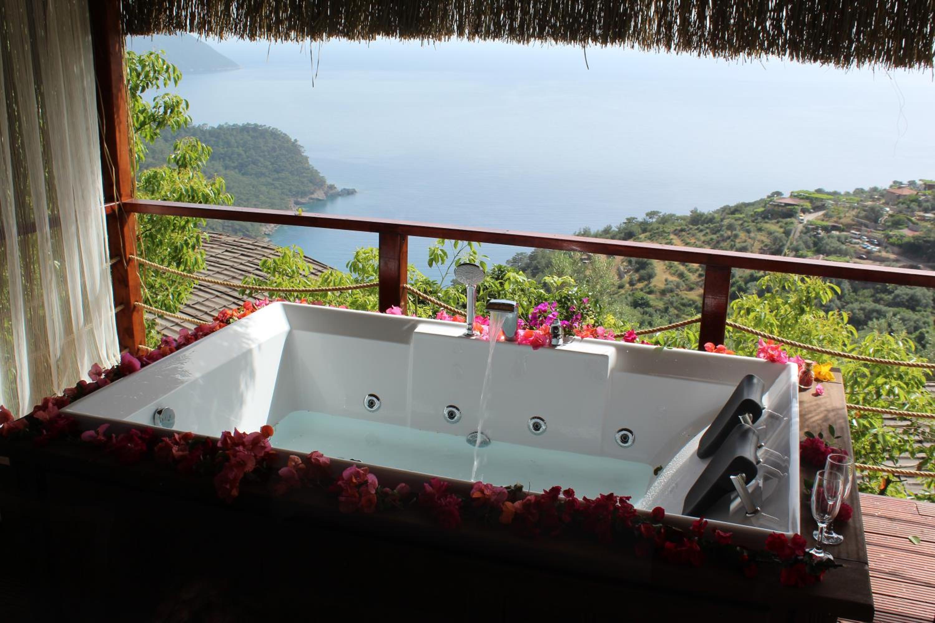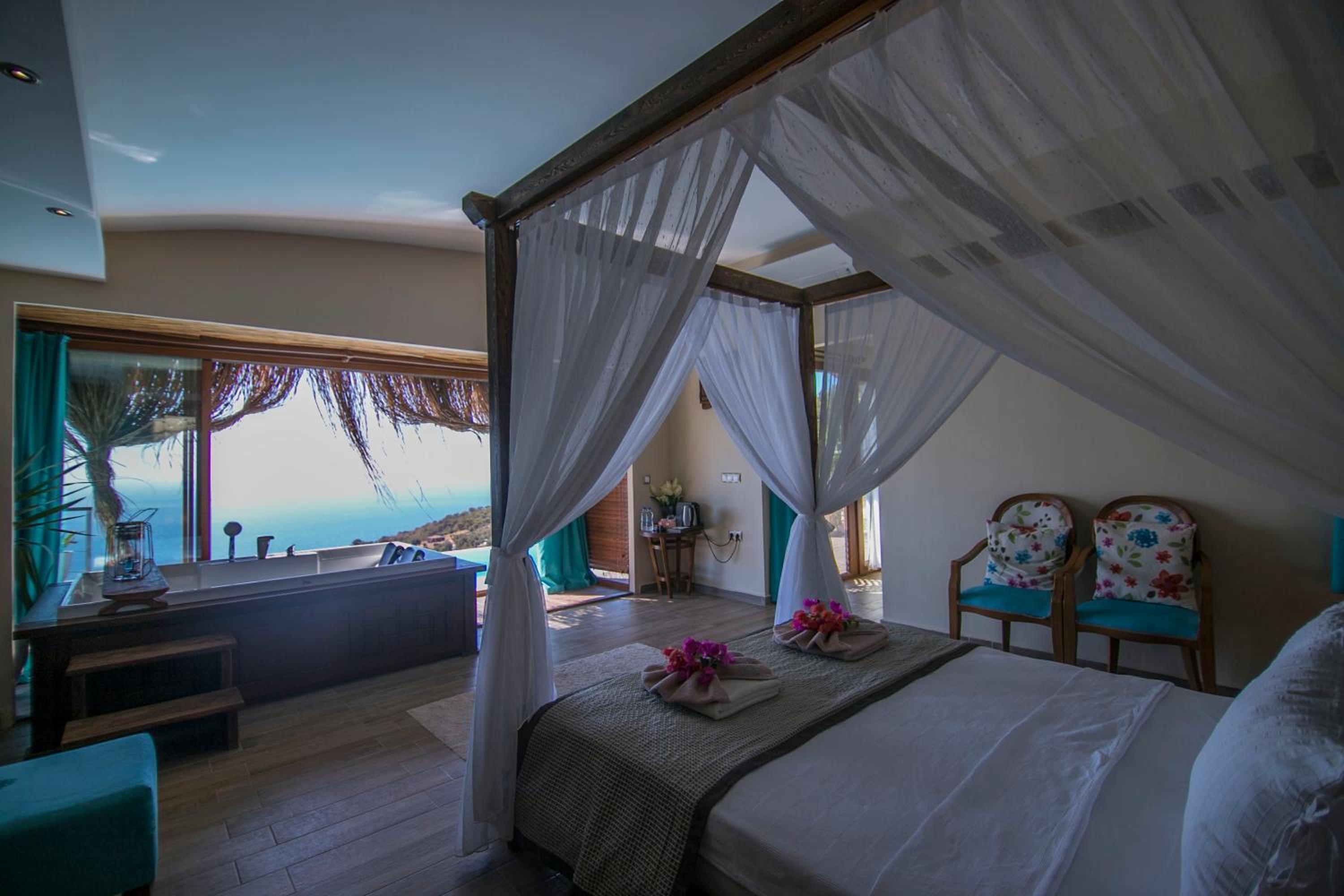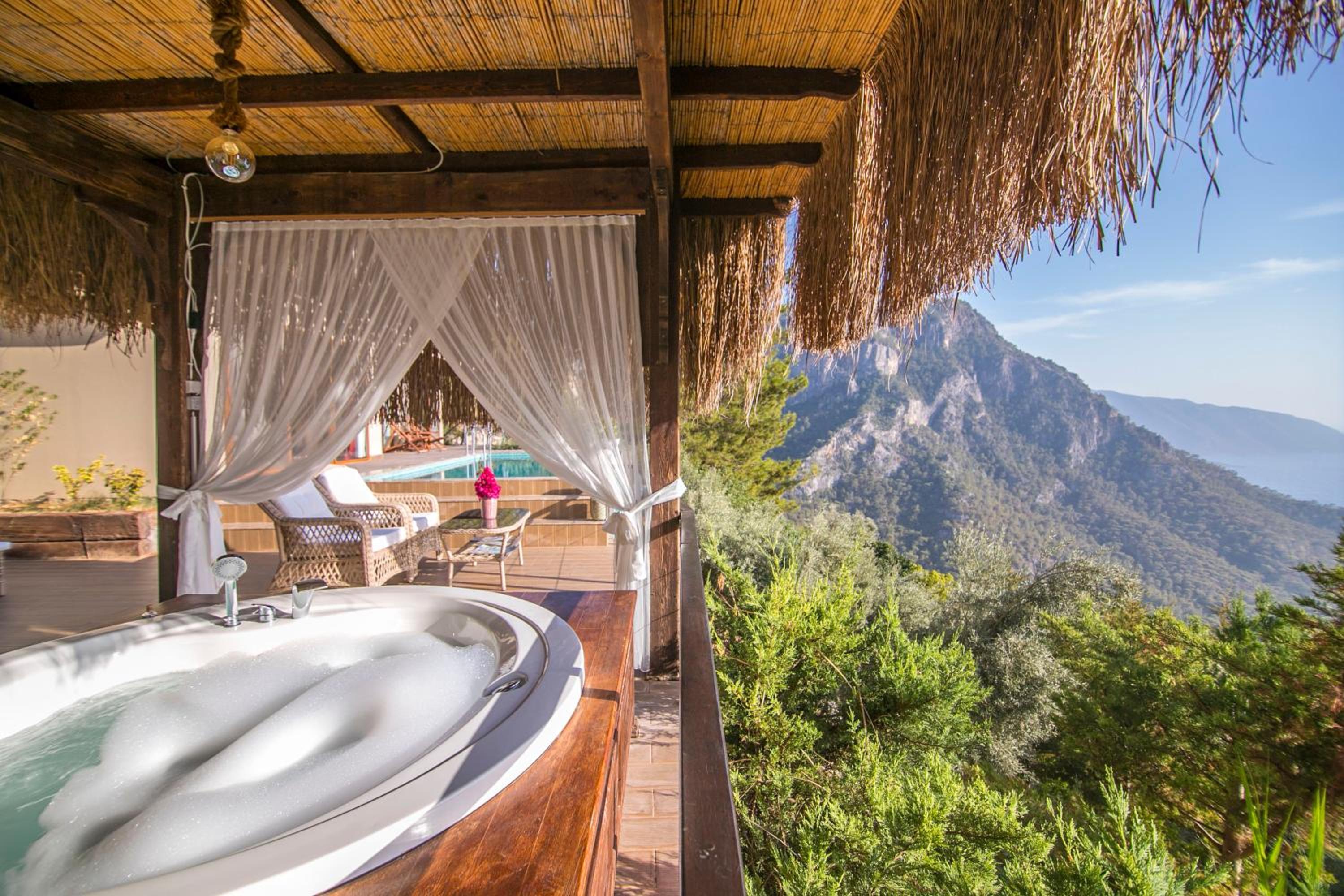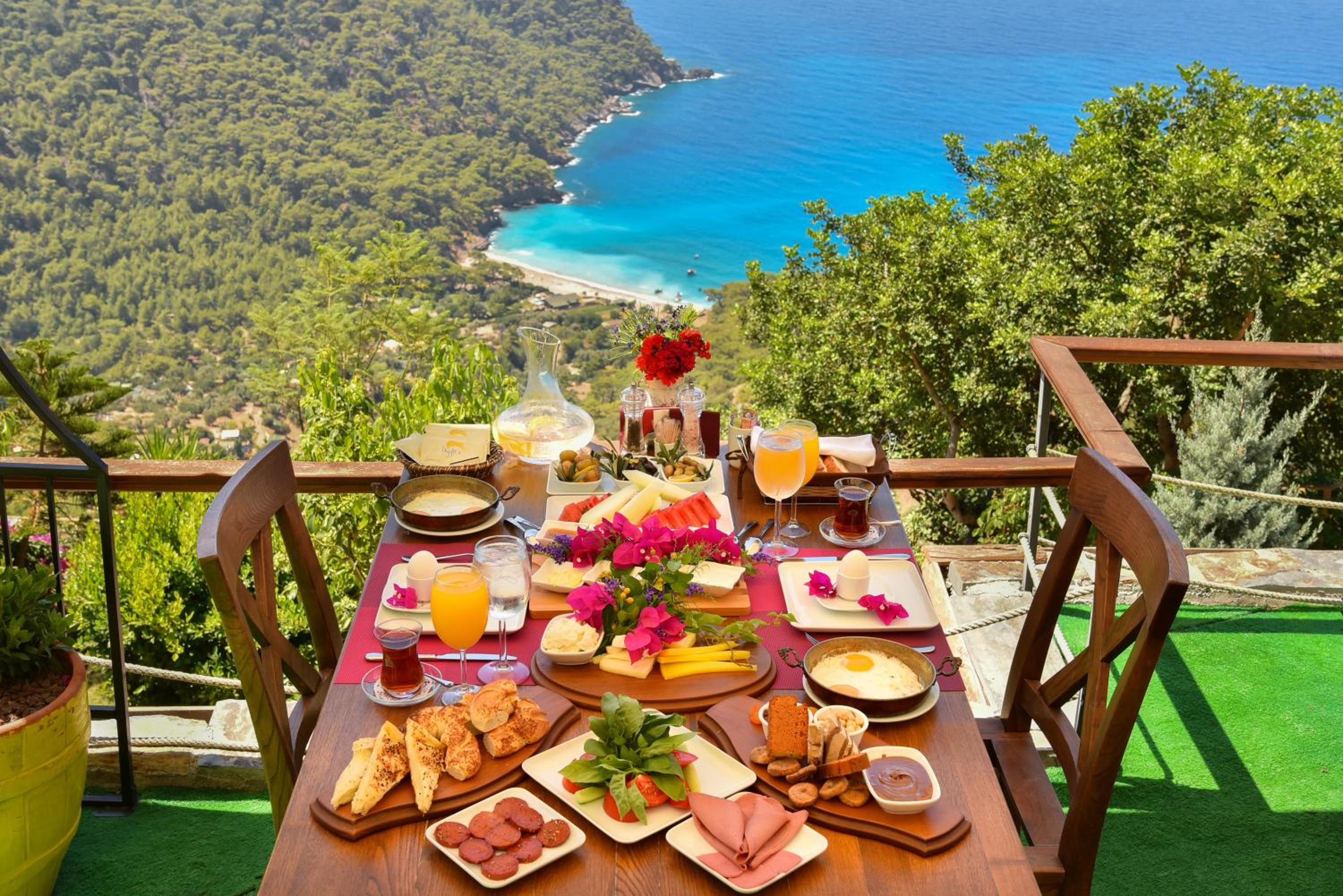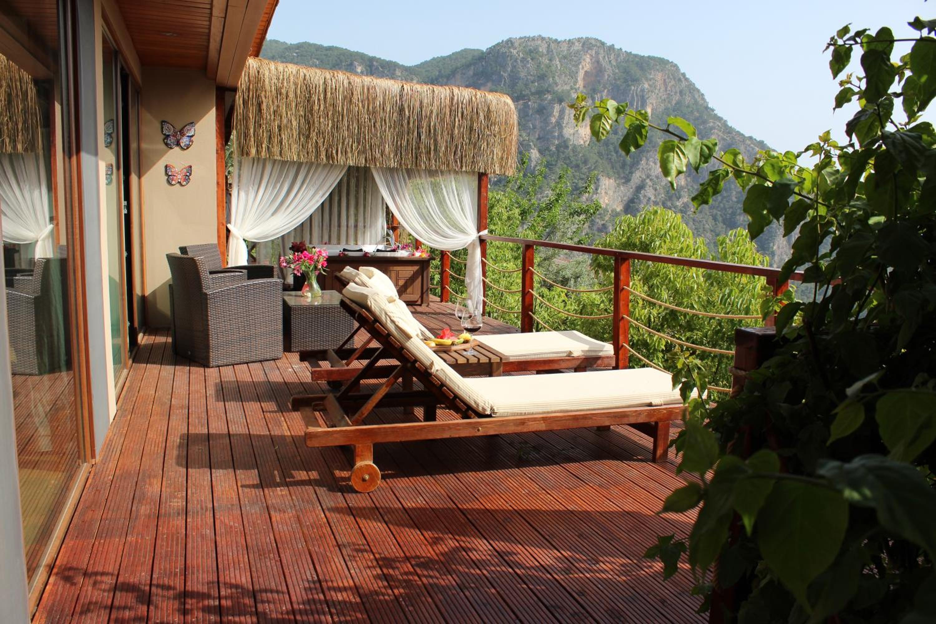 The staff were excellent, in particular the manager who was always available and extremely helpful in arranging bookings. He gave excellent suggestions. The hotel is in a beautiful location with stunning views of Kabak bay and the valley. It is peaceful and quiet with plenty of space between the suites. Breakfast is enourmous and a great selection of local foods.