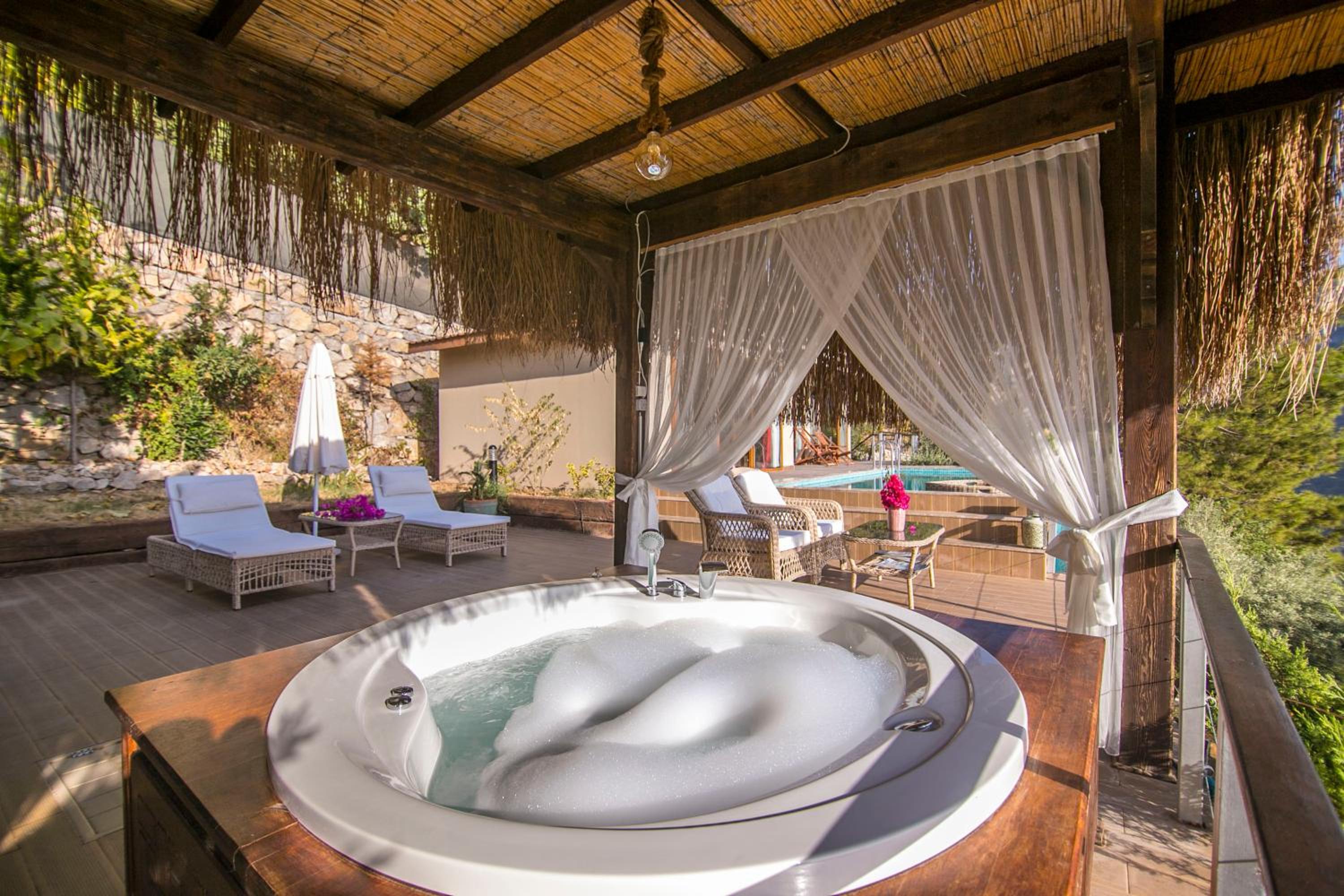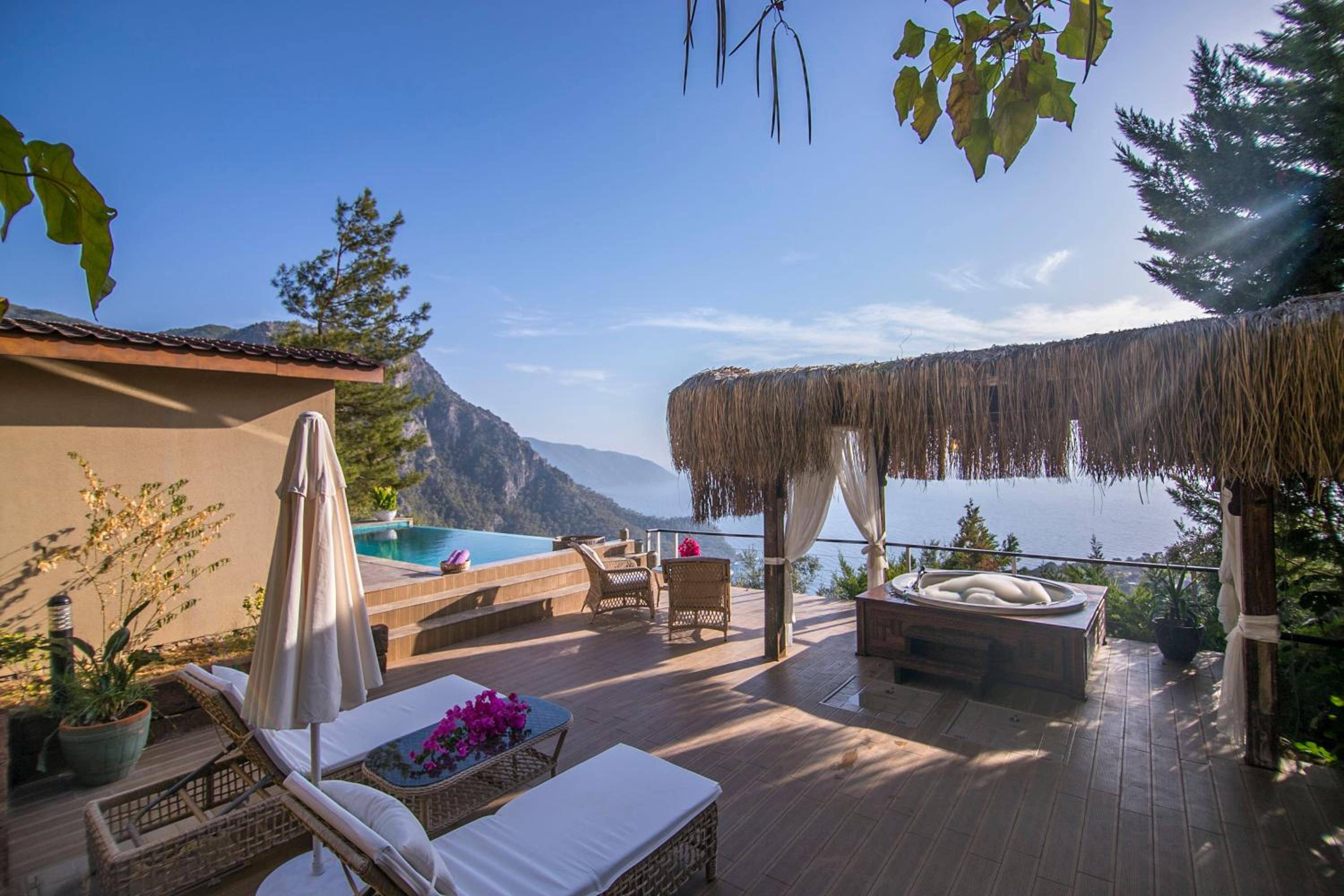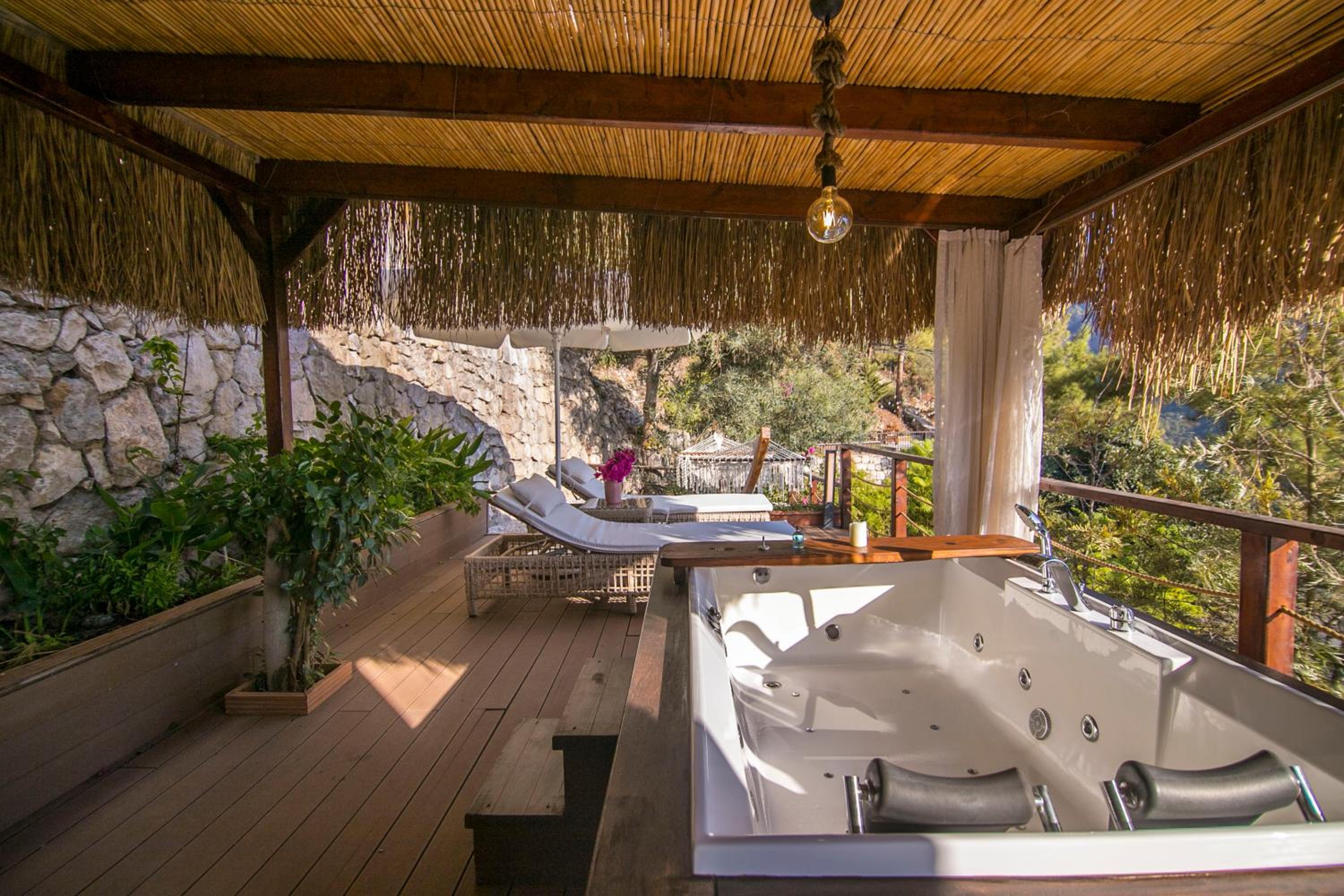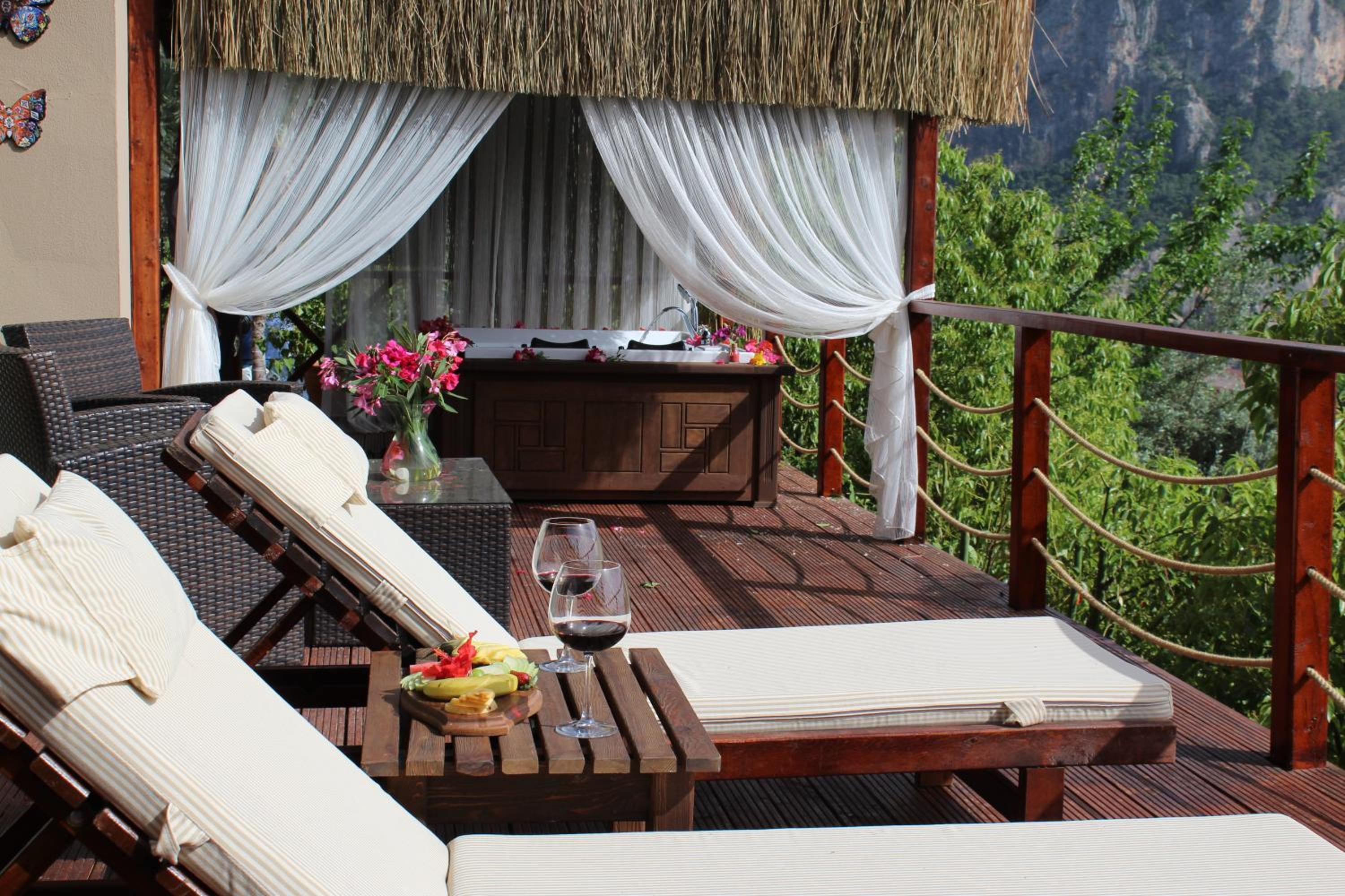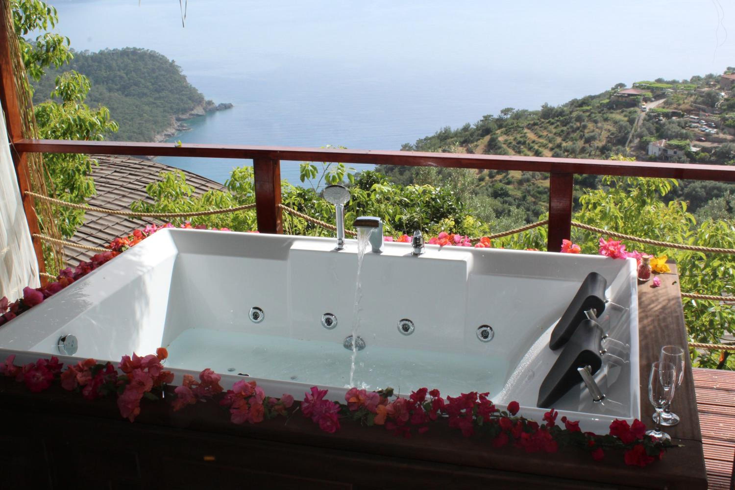 The staff were excellent, in particular the manager who was always available and extremely helpful in arranging bookings. He gave excellent suggestions. The hotel is in a beautiful location with stunning views of Kabak bay and the valley. It is peaceful and quiet with plenty of space between the suites. Breakfast is enourmous and a great selection of local foods.