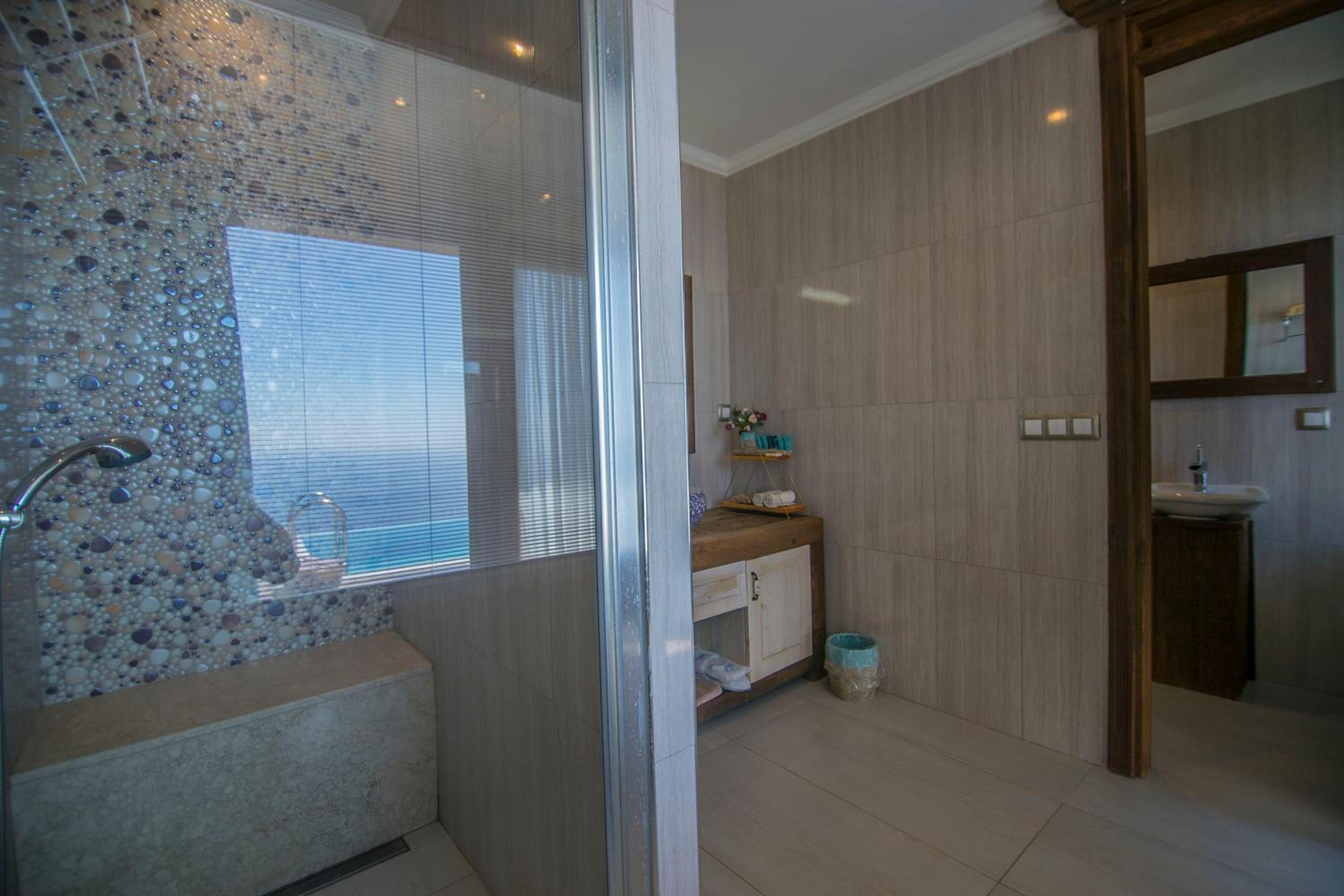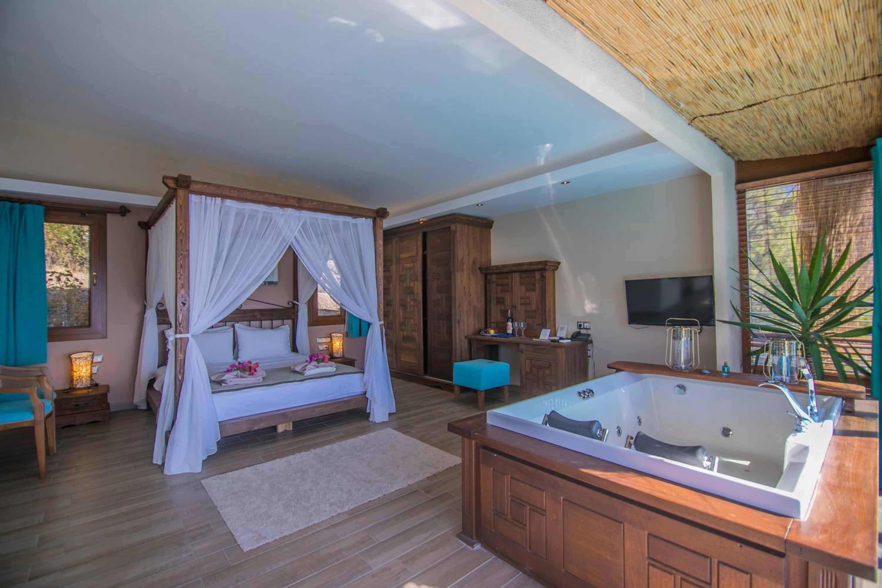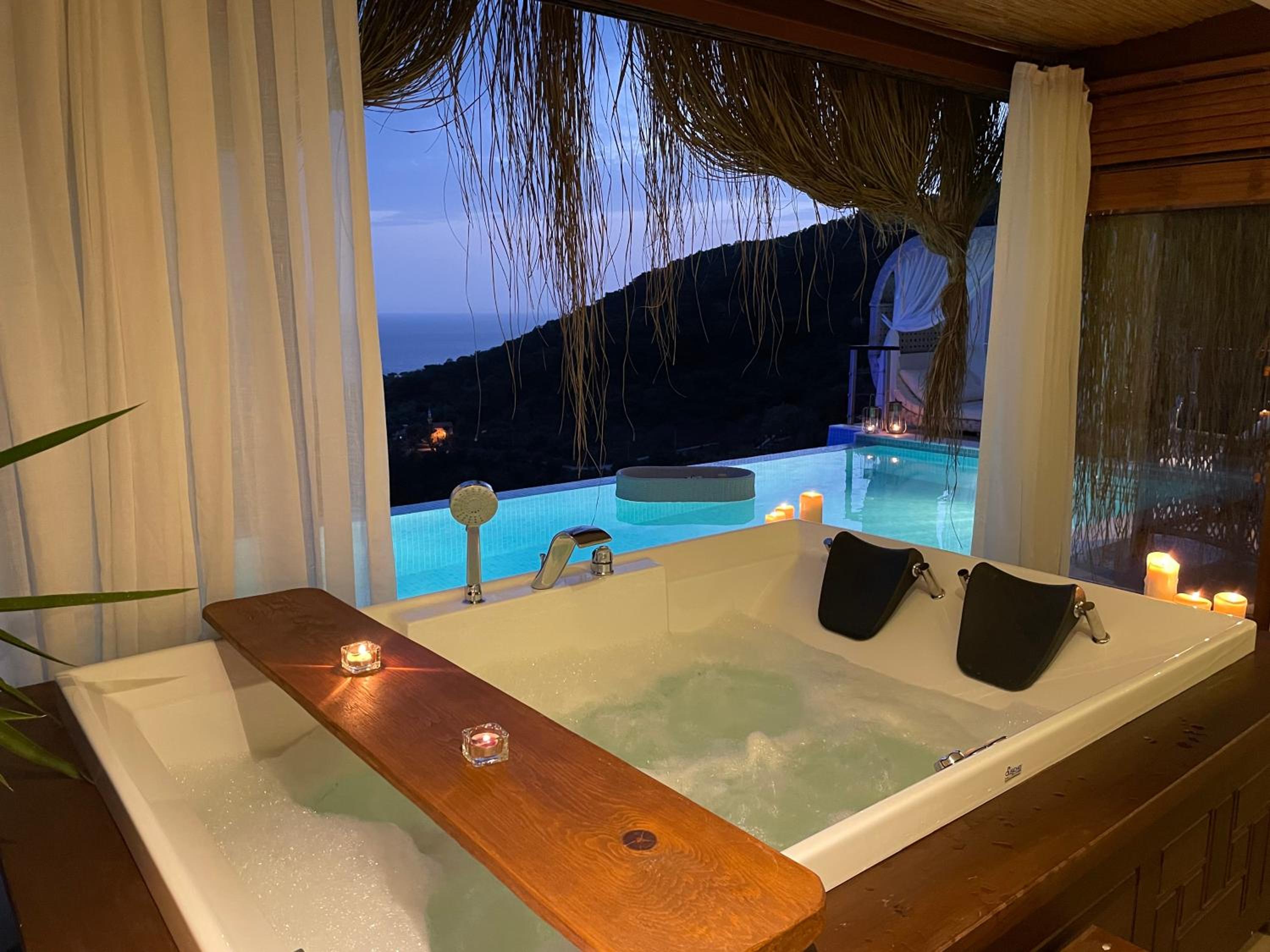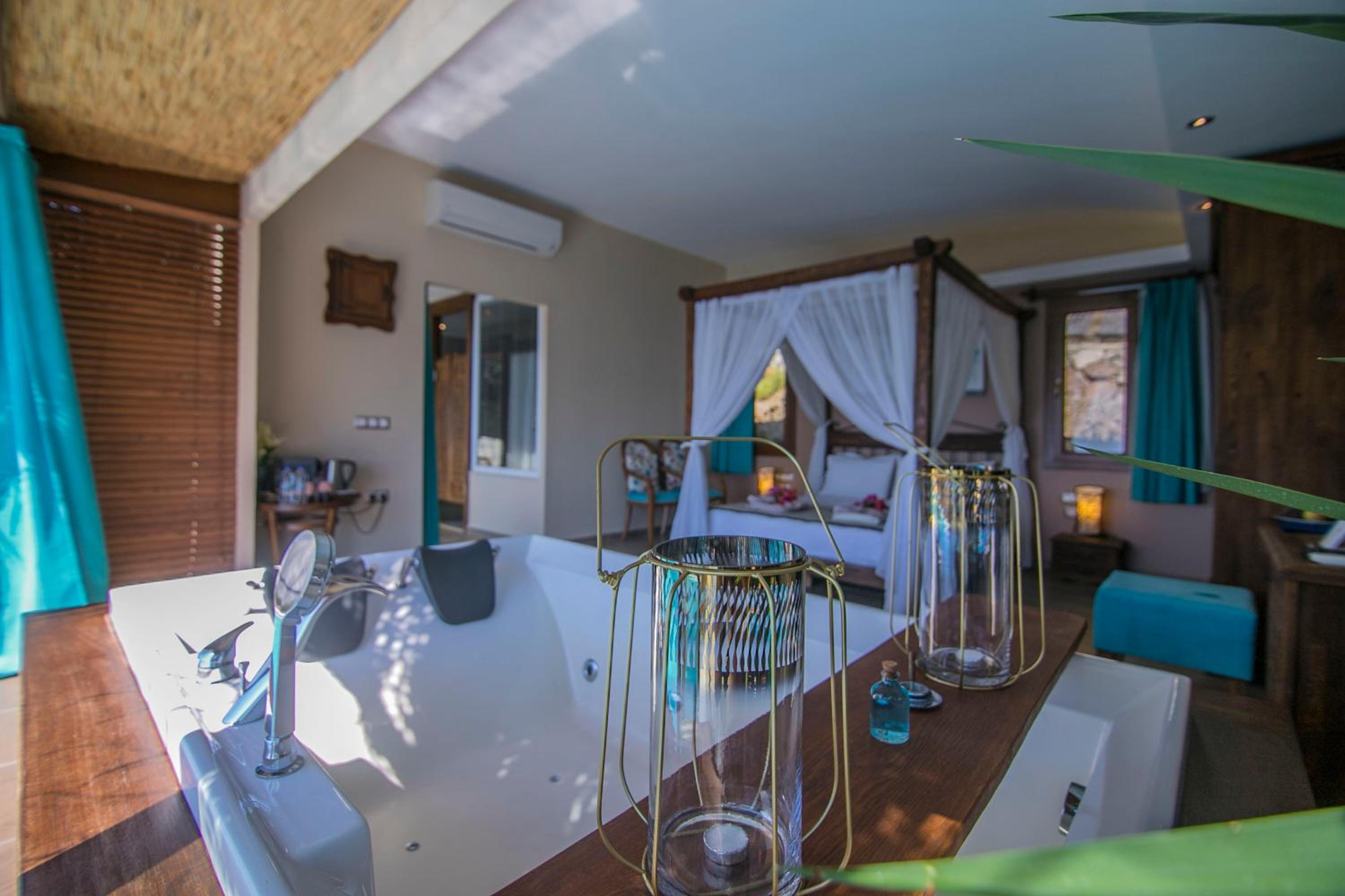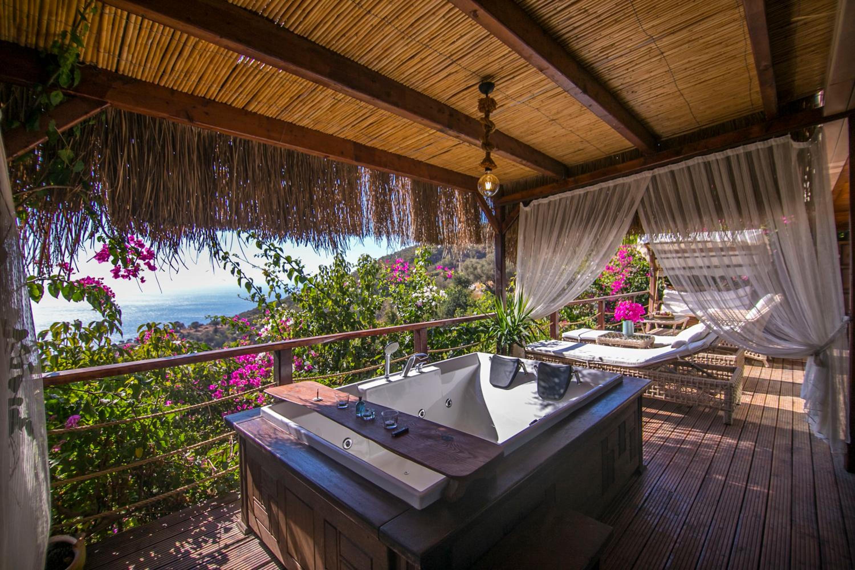 The staff were excellent, in particular the manager who was always available and extremely helpful in arranging bookings. He gave excellent suggestions. The hotel is in a beautiful location with stunning views of Kabak bay and the valley. It is peaceful and quiet with plenty of space between the suites. Breakfast is enourmous and a great selection of local foods.