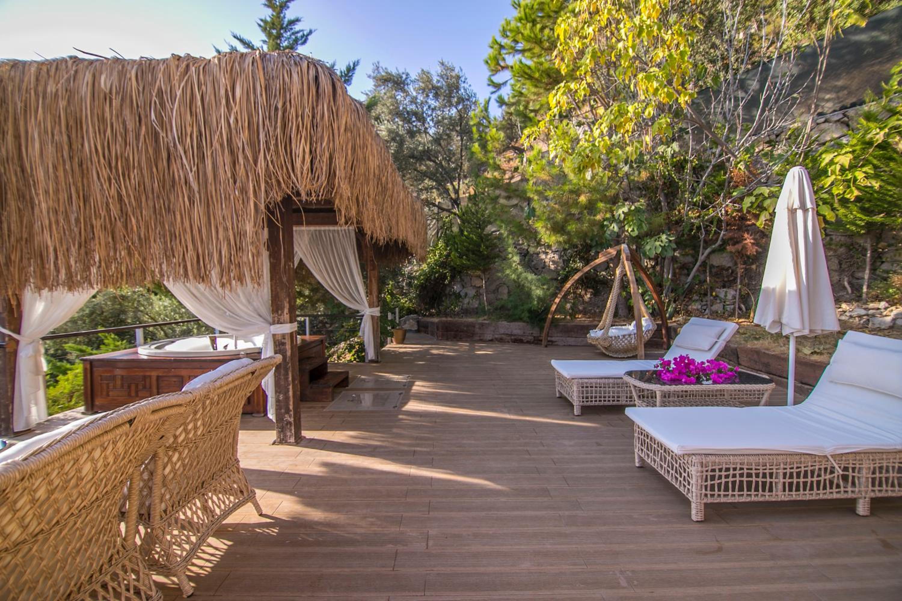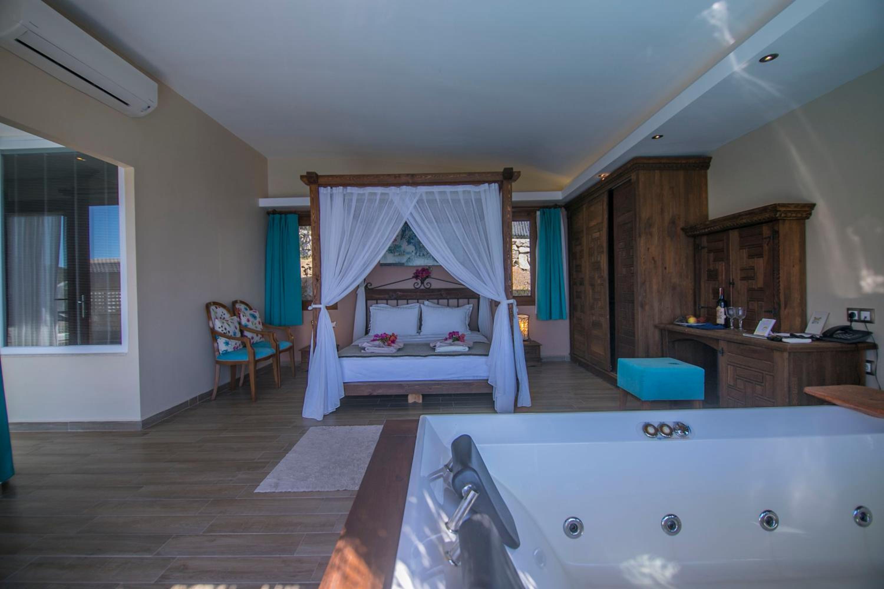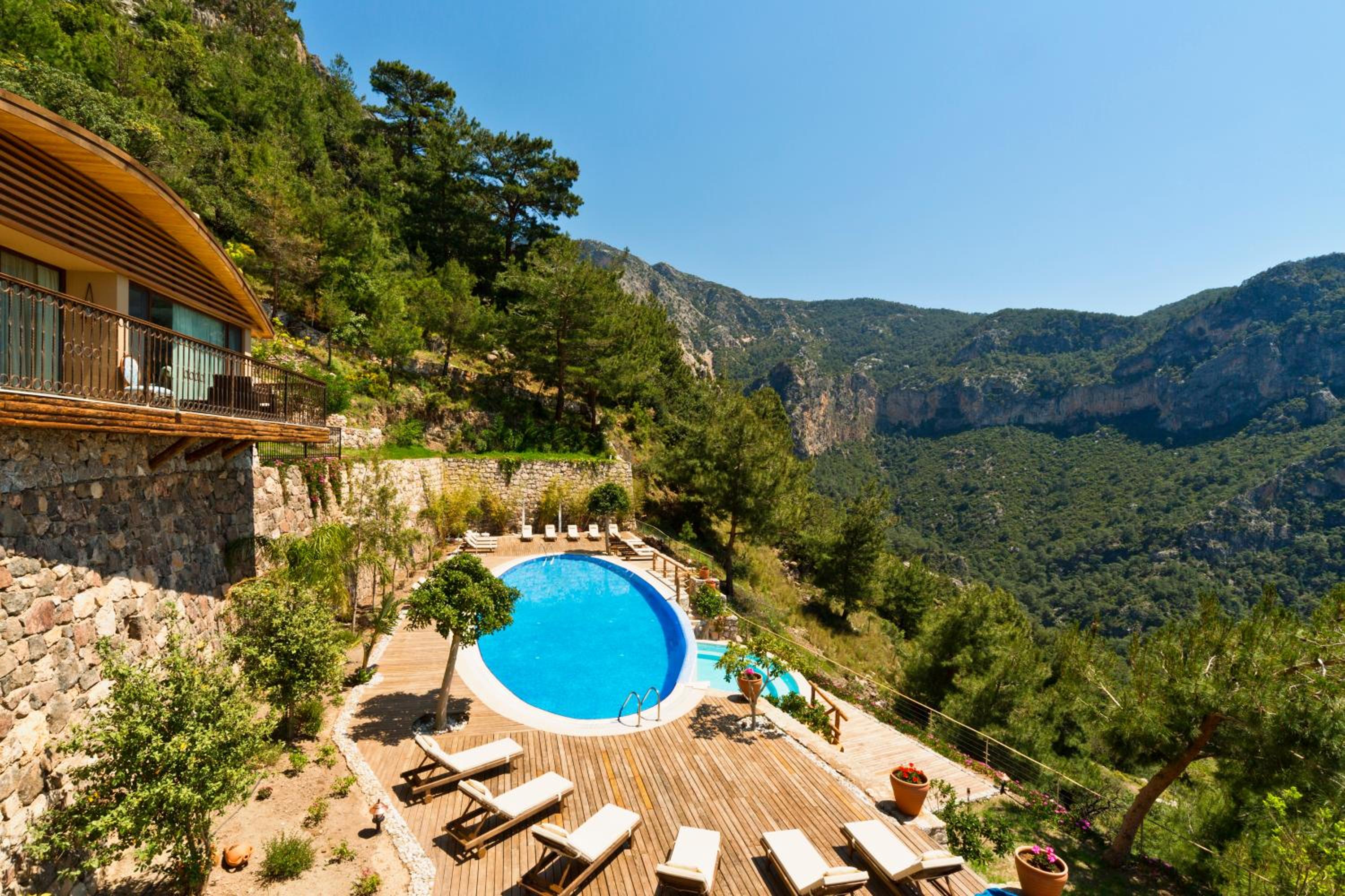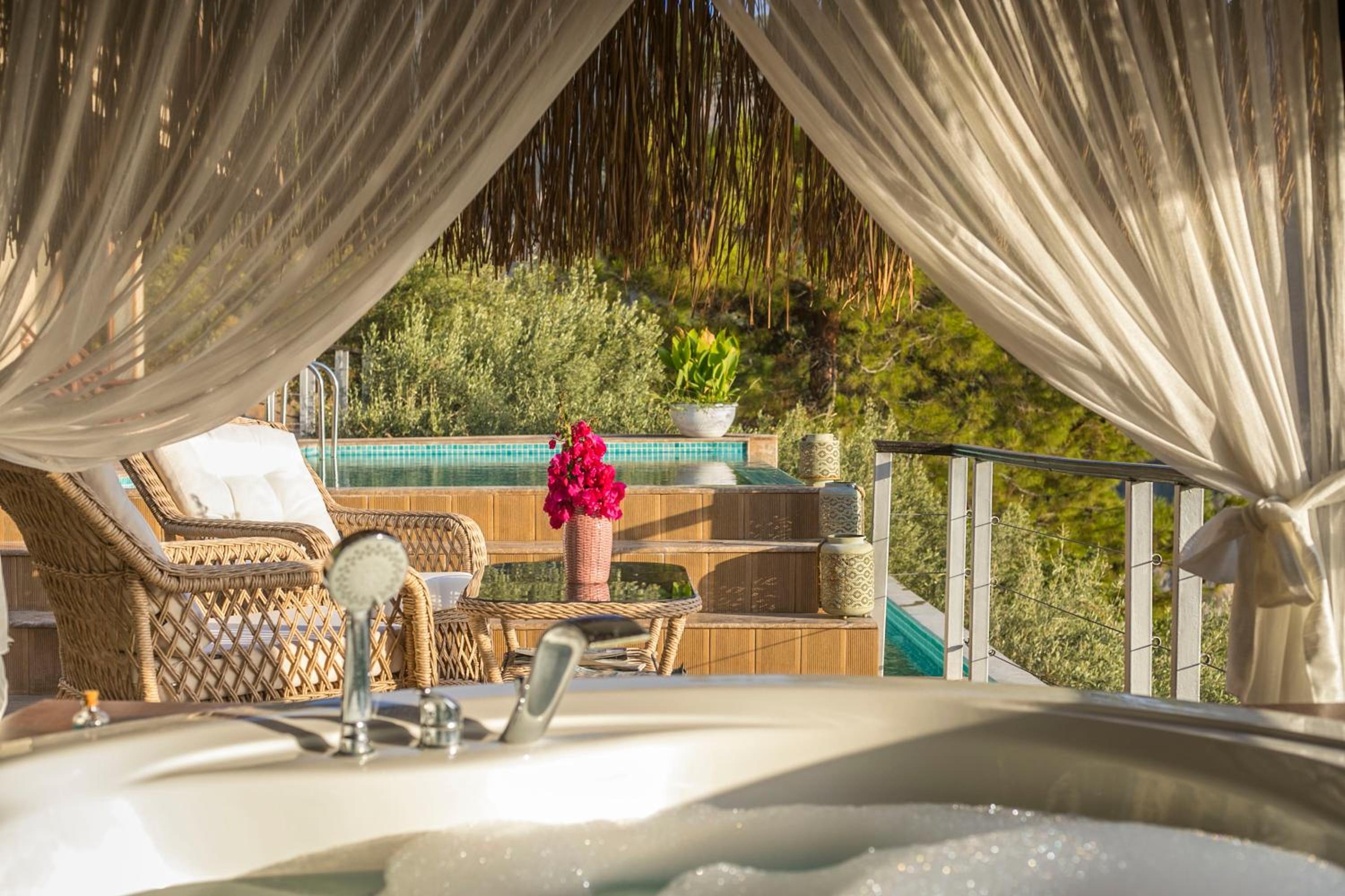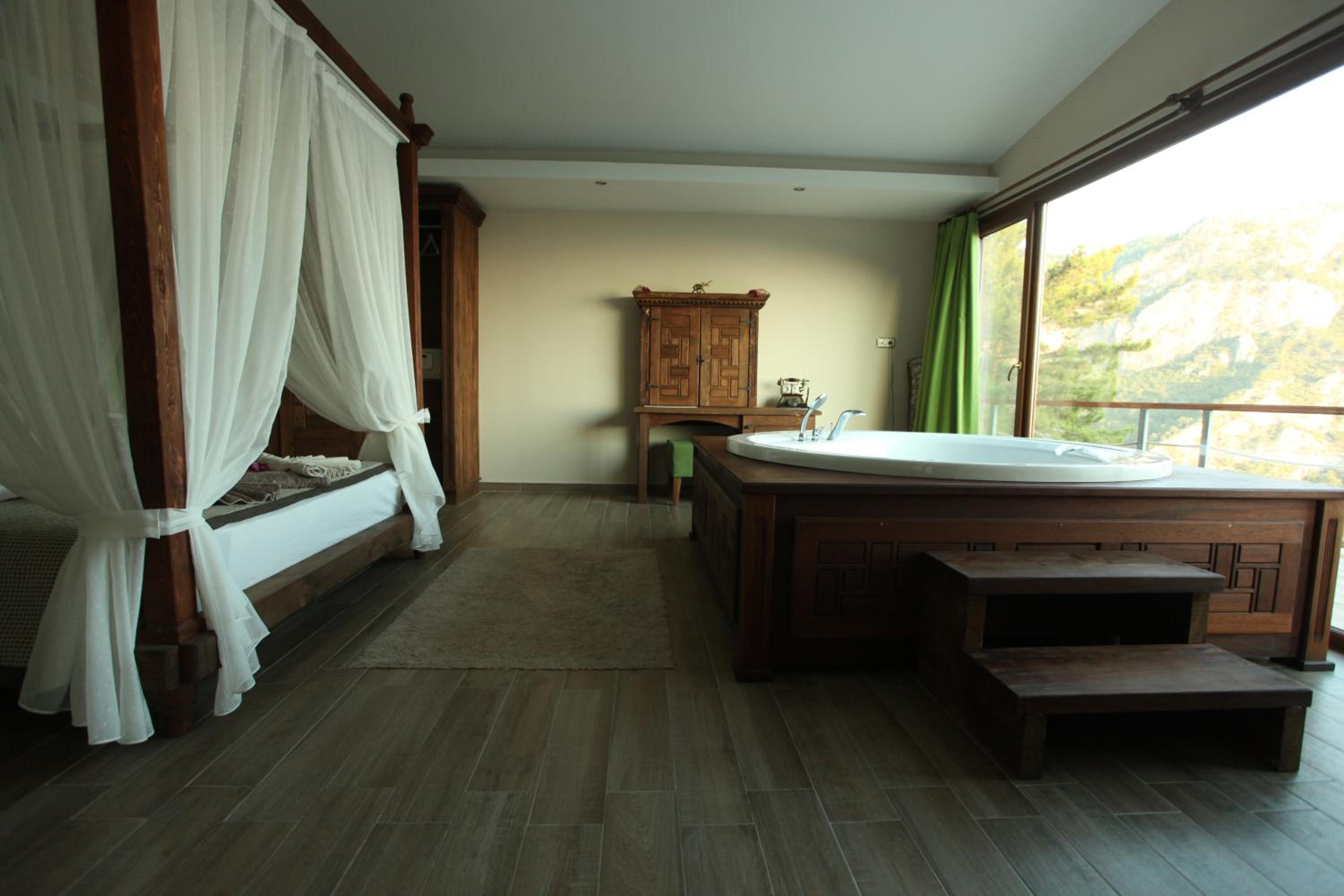 The staff were excellent, in particular the manager who was always available and extremely helpful in arranging bookings. He gave excellent suggestions. The hotel is in a beautiful location with stunning views of Kabak bay and the valley. It is peaceful and quiet with plenty of space between the suites. Breakfast is enourmous and a great selection of local foods.