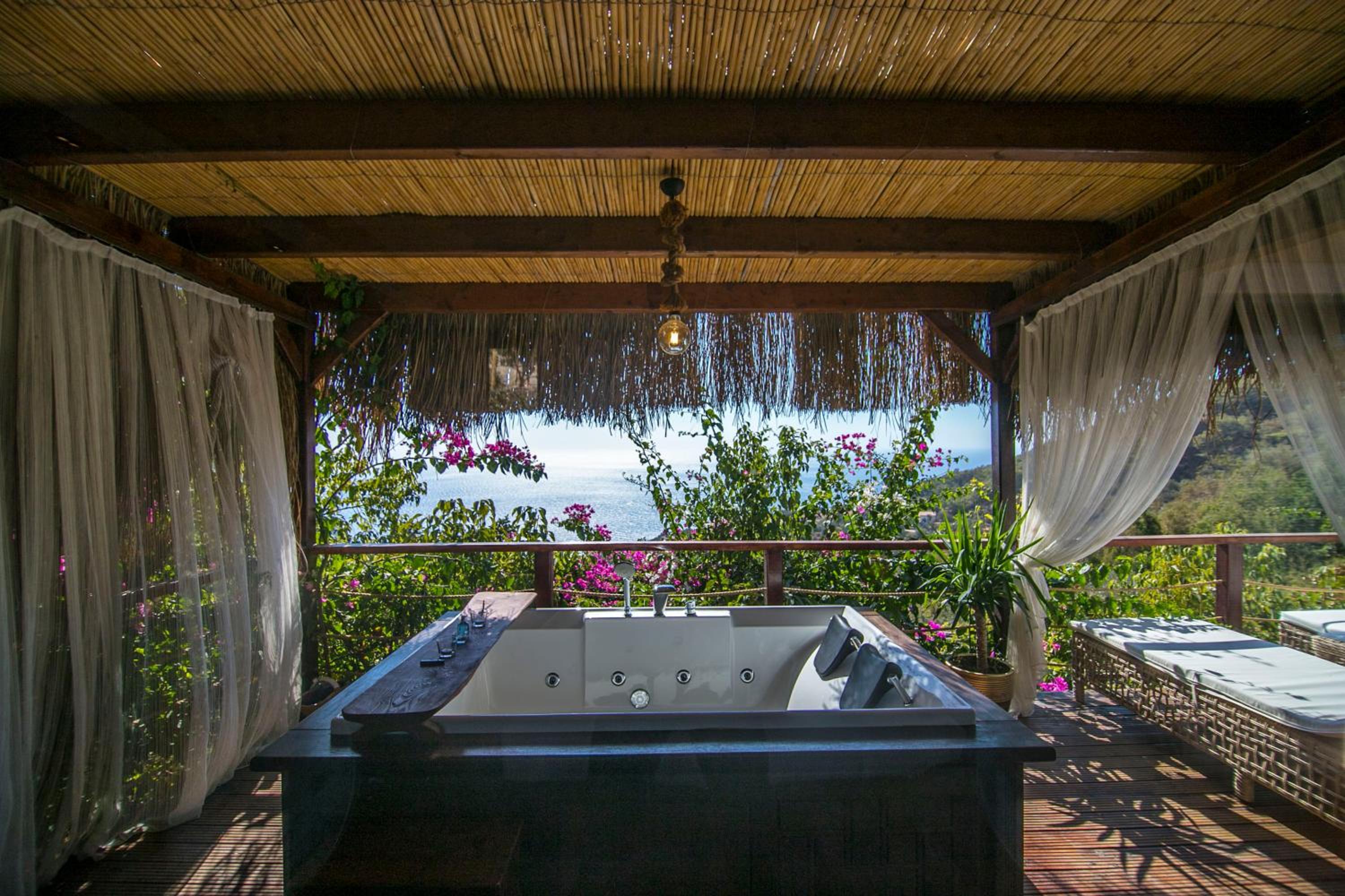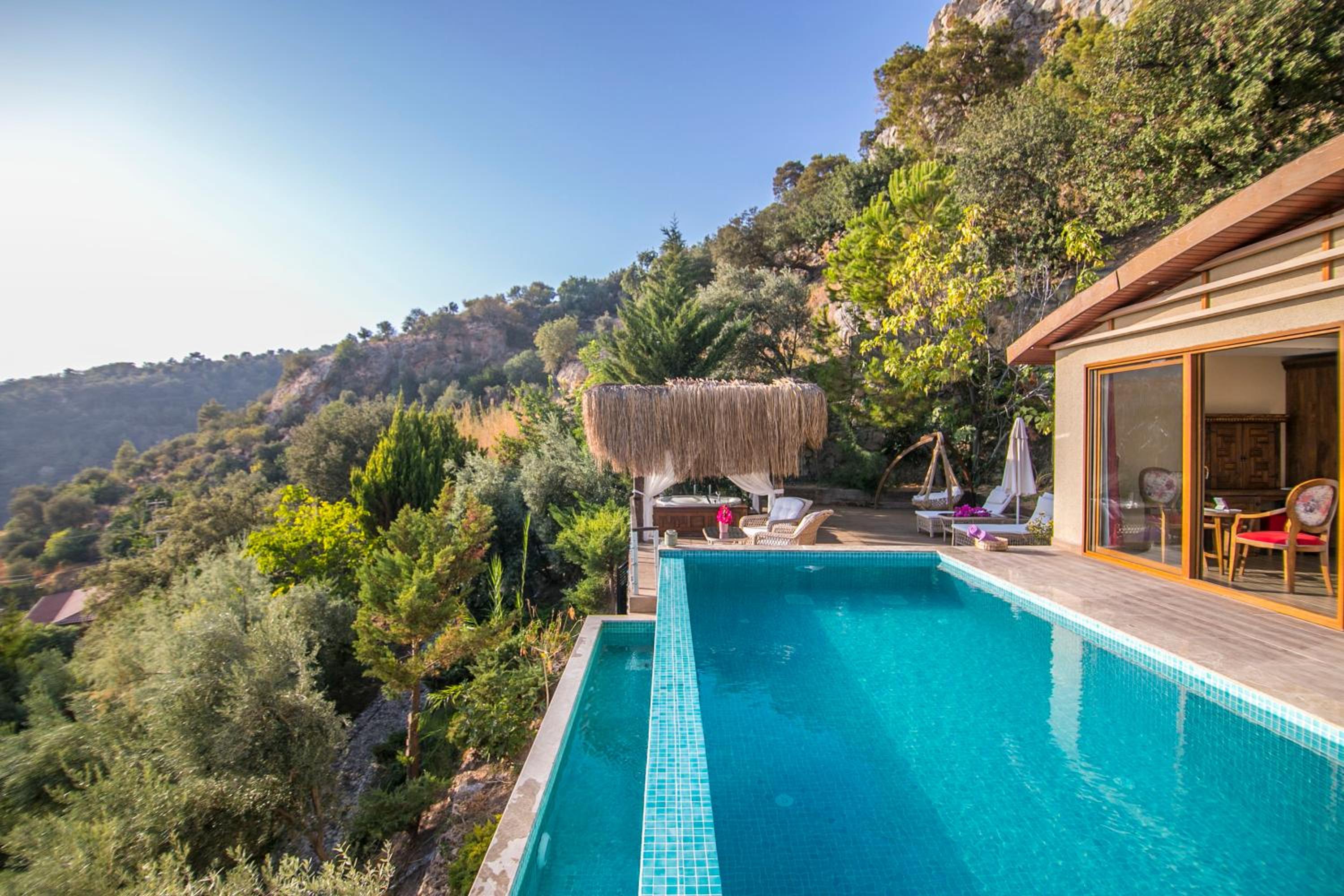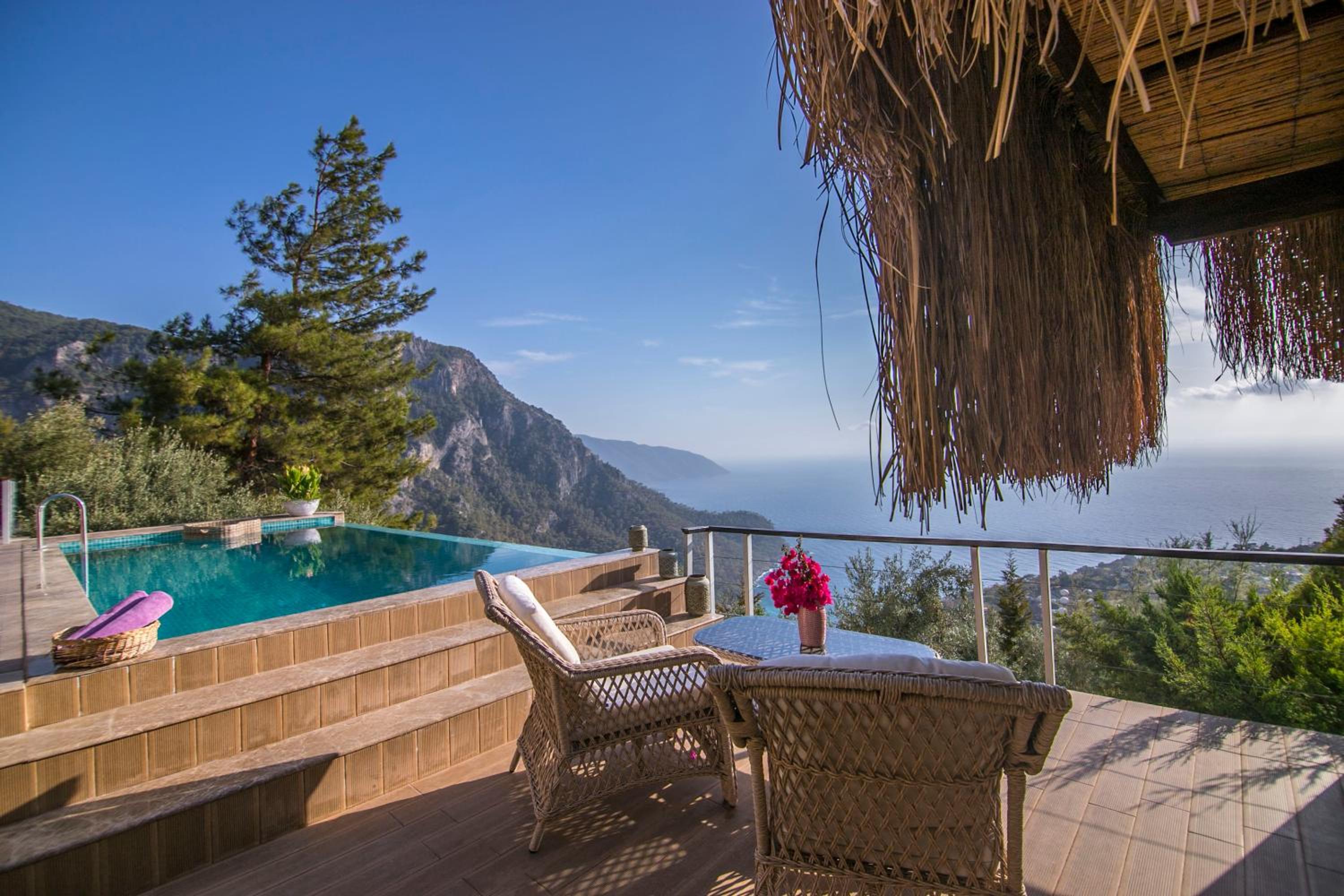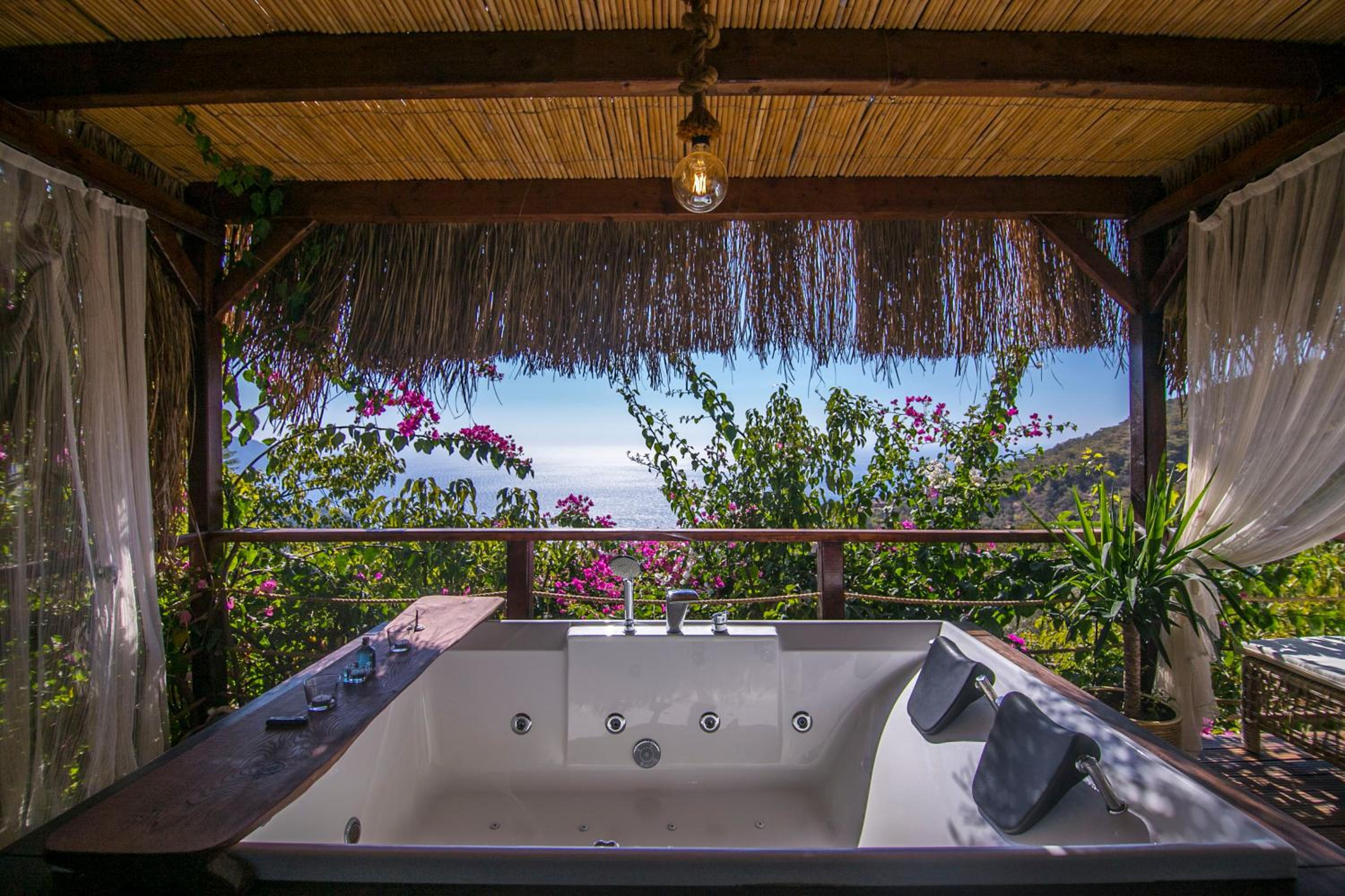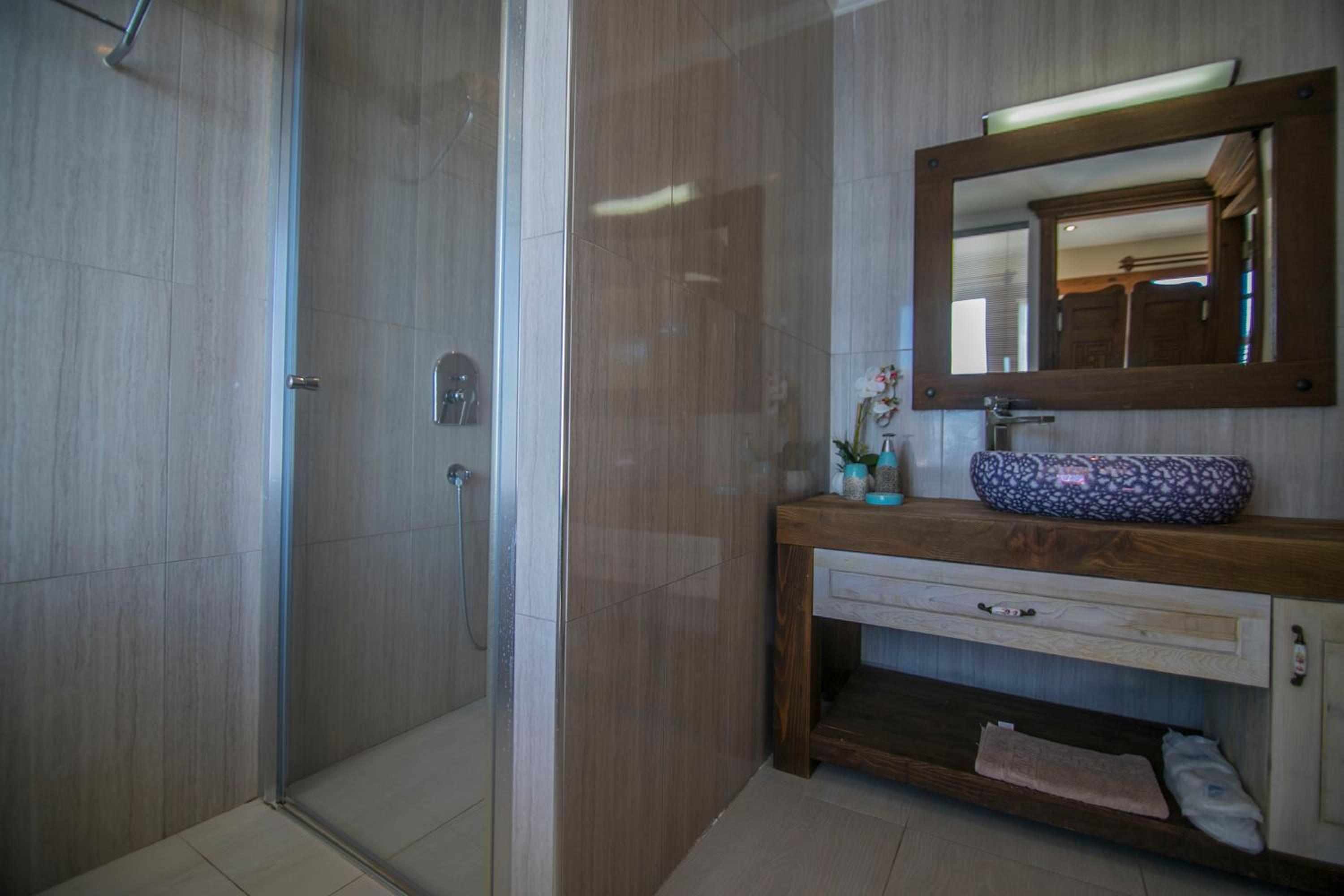 The staff were excellent, in particular the manager who was always available and extremely helpful in arranging bookings. He gave excellent suggestions. The hotel is in a beautiful location with stunning views of Kabak bay and the valley. It is peaceful and quiet with plenty of space between the suites. Breakfast is enourmous and a great selection of local foods.