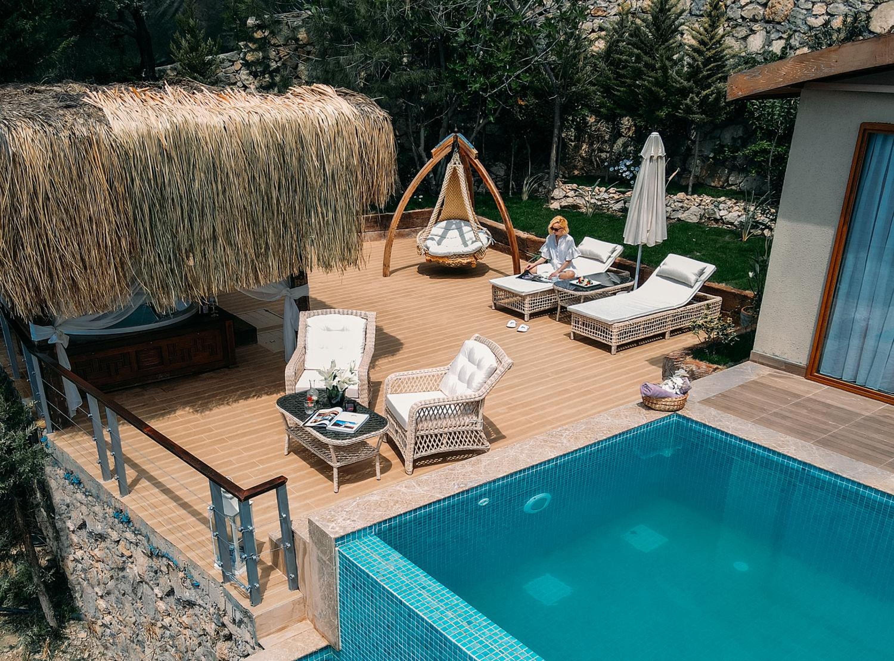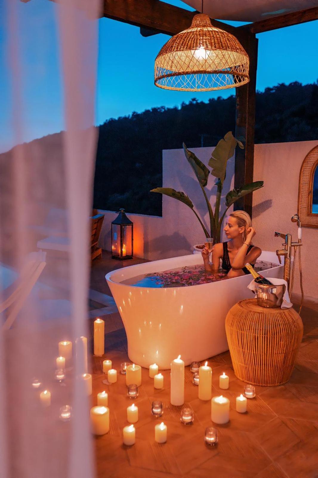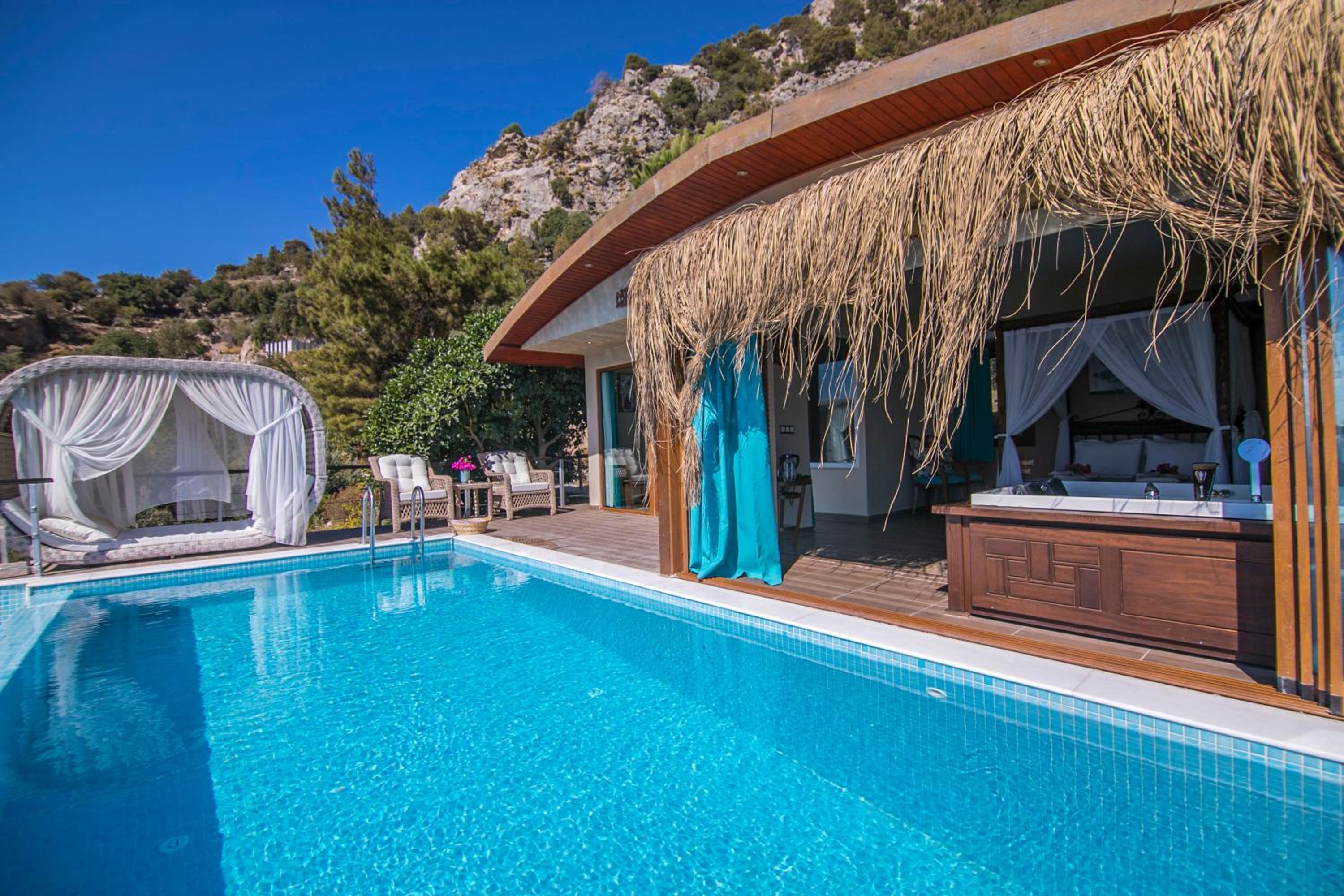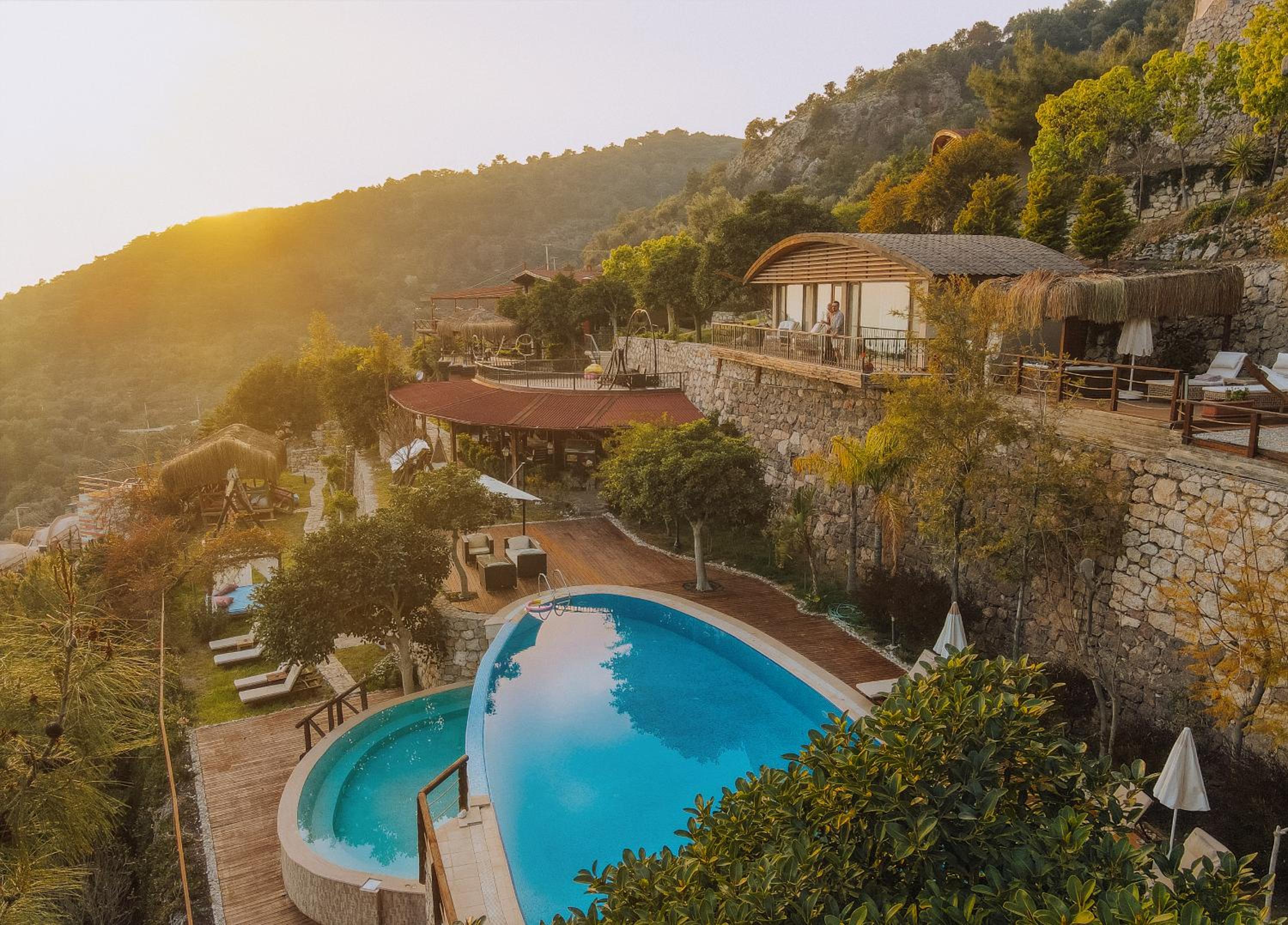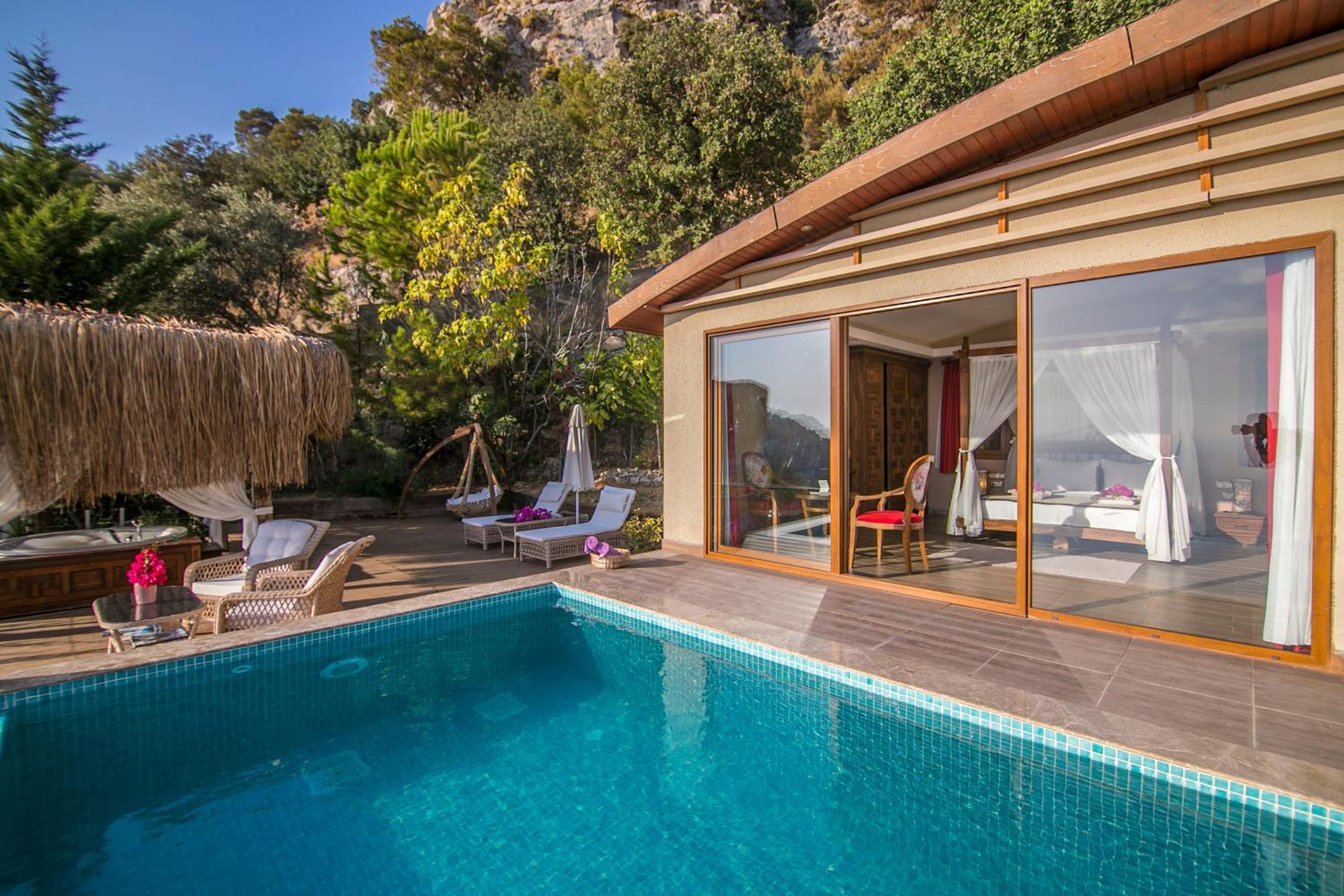 The staff were excellent, in particular the manager who was always available and extremely helpful in arranging bookings. He gave excellent suggestions. The hotel is in a beautiful location with stunning views of Kabak bay and the valley. It is peaceful and quiet with plenty of space between the suites. Breakfast is enourmous and a great selection of local foods.