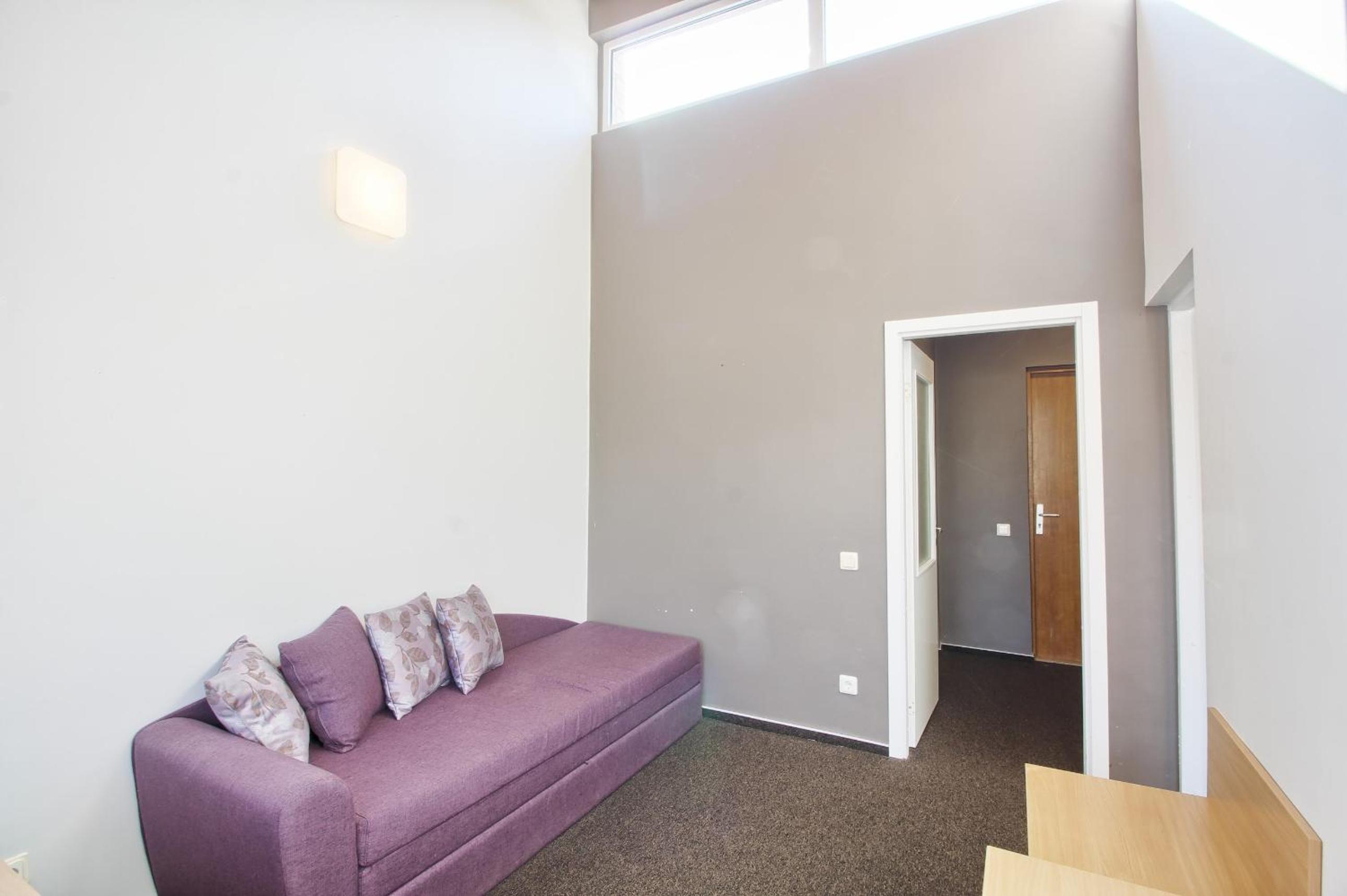 Nepatogi sofa miegojimui, nejaukios bendros erdvės, labai reiktų atnaujinimo.