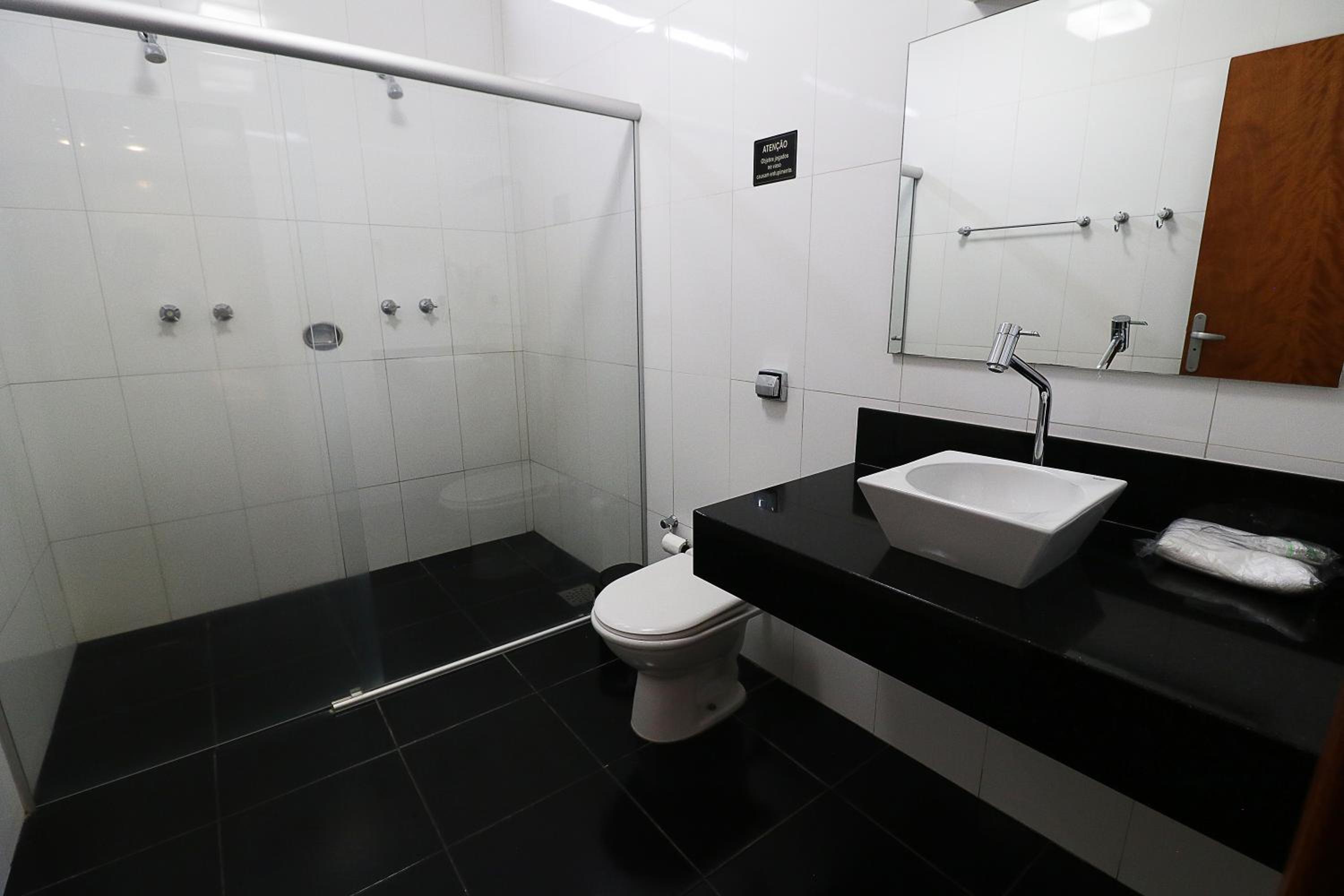 Portaria entrada, barulho do ar condicionado excessivo e péssima limpeza do vaso sanitário, cheirando xixi e com marca interna, horrível.