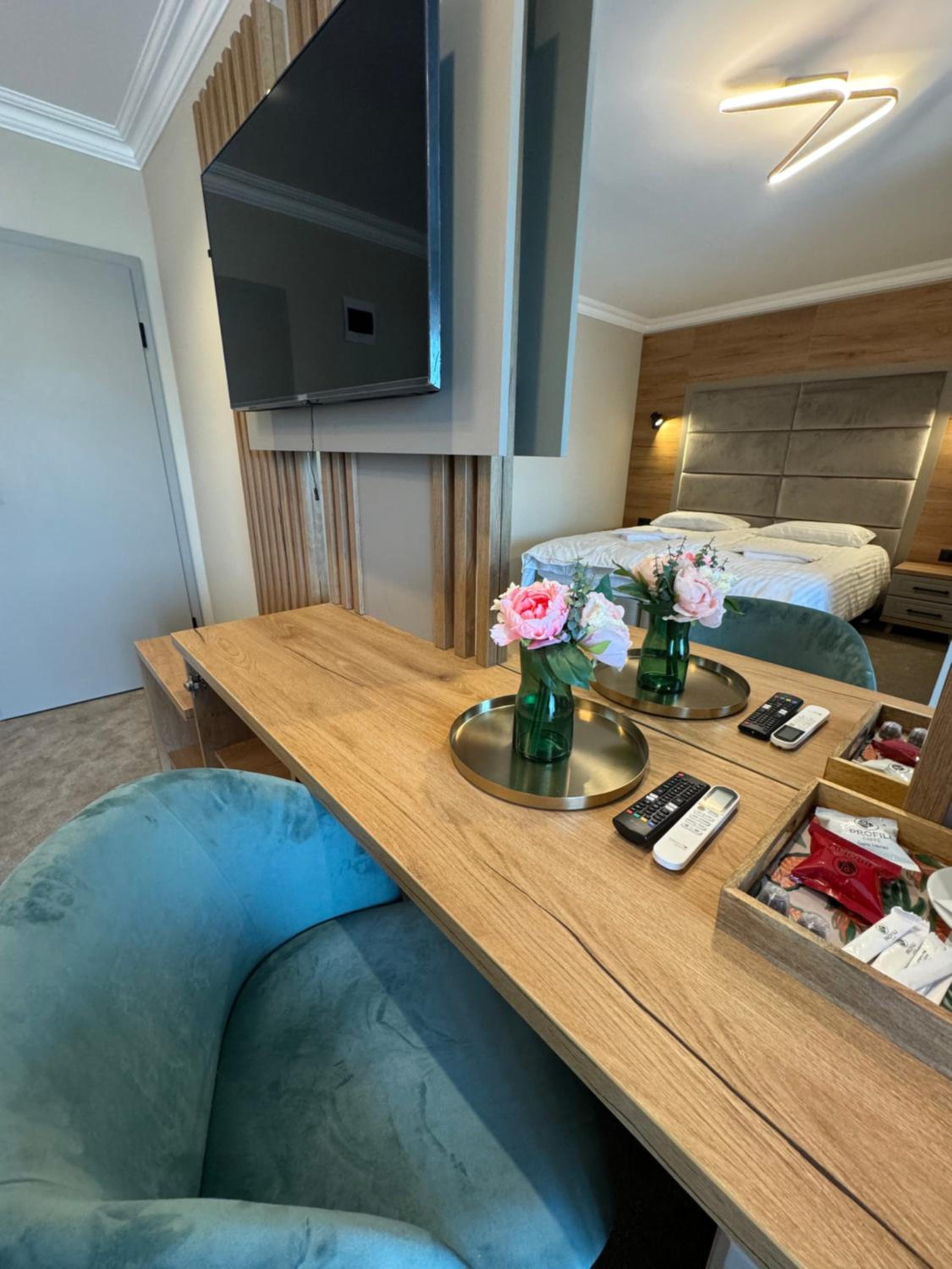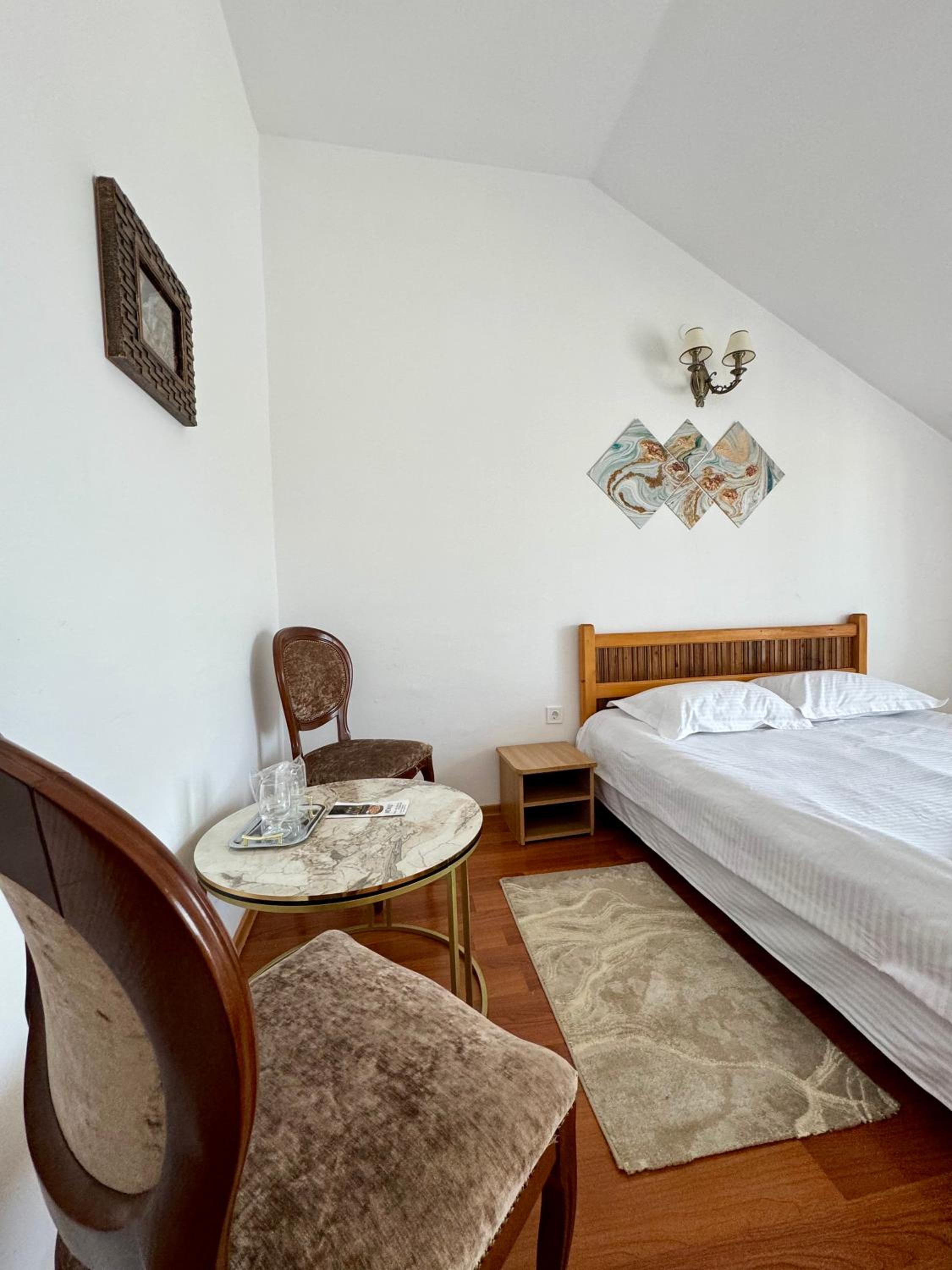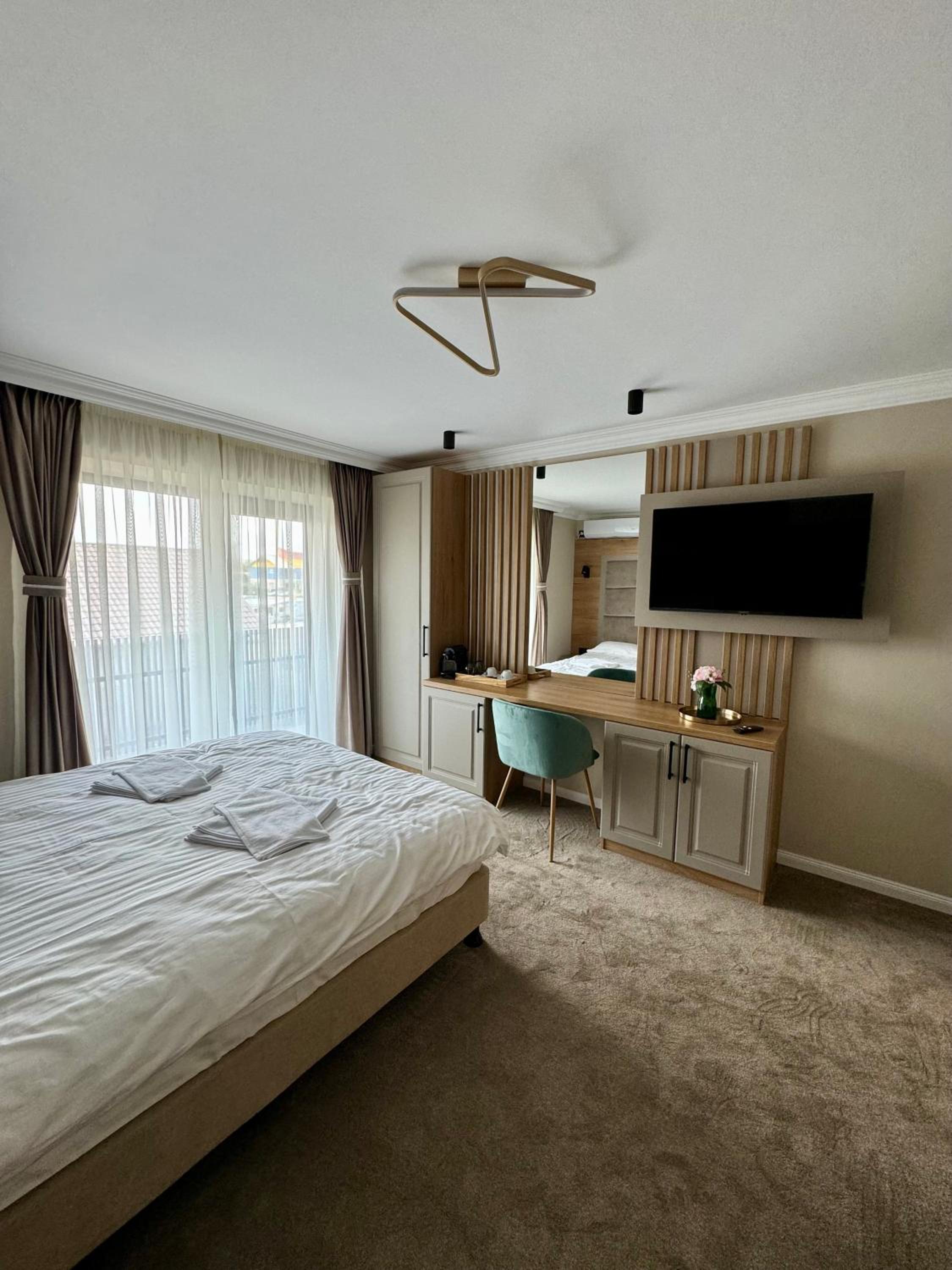 Pozele afisate ale camerelor nu corespund cu realitatea. De facto sunt 2 complexuri alaturi, unul renovat si altul mai vechisor, unde am fost cazati. Camerele sunt cam obosite, vorbind de mobilier, in schimb curatenia e la nivel.