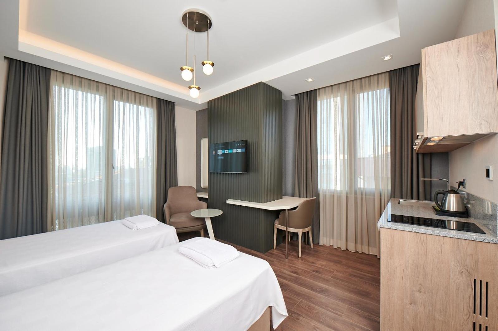 Indulge in air-conditioned rooms with modern amenities and comfortable bedding at Livinton İstanbul Ataşehir. Some rooms even feature convenient kitchenettes for added comfort during your stay.