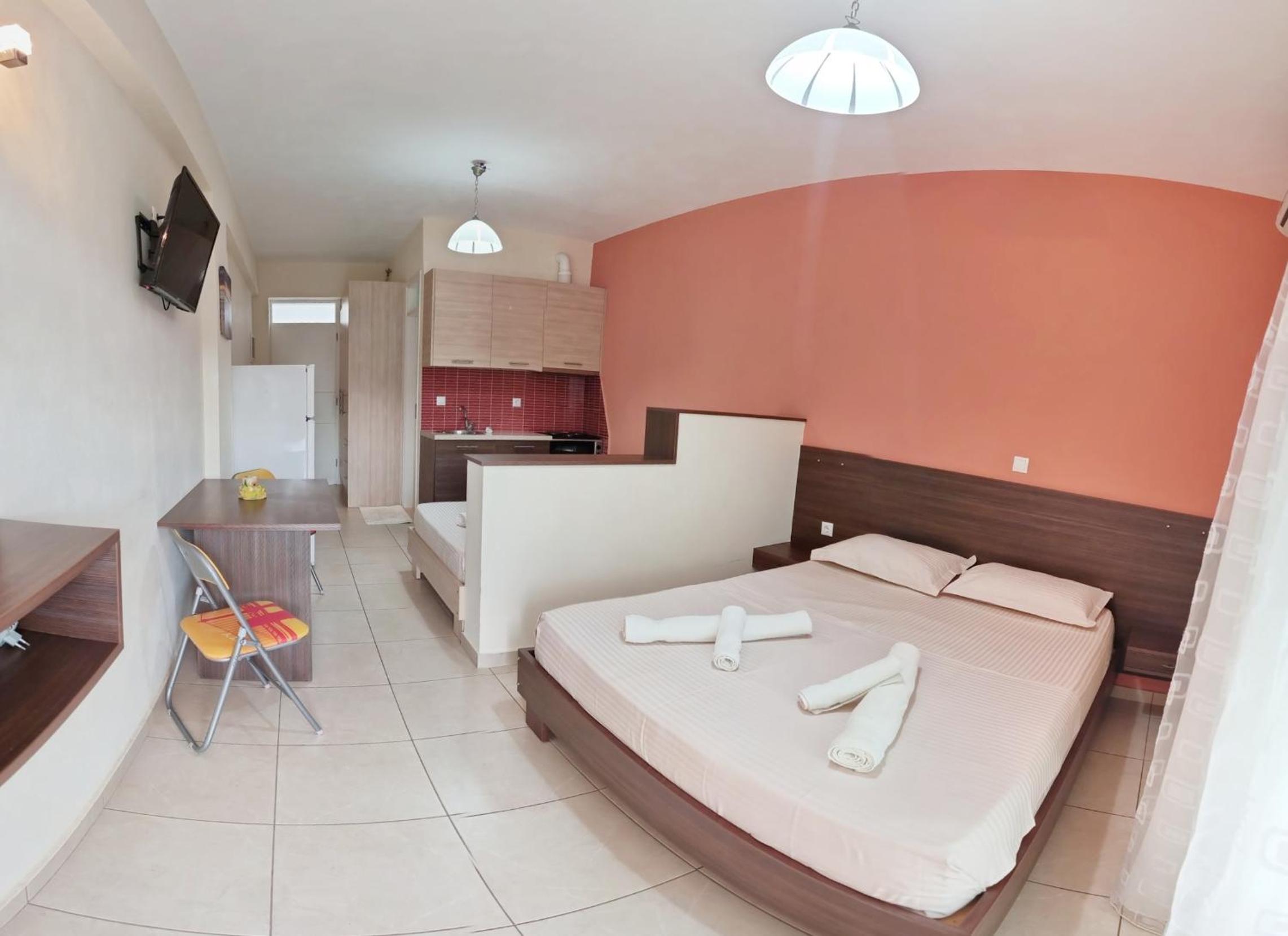 Appartamento a due passi dal centro, pulito e con tutto il necessario per sentirsi come a casa. Abbiamo apprezzato il silenzio, la dotazione completa di bagno e angolo cottura, l’aria condizionata, la comodità del materasso e il bel balcone con tavolo sedie e stenditoio. Parcheggio sempre disponibile all’ombra in area sicura. Market a 2 minuti a piedi. La signora che contribuisce alla gestione della struttura lo fa con grande passione e gentilezza, sempre pronta in caso di necessità. Assolutamente consigliato per il vostro soggiorno a Himara!