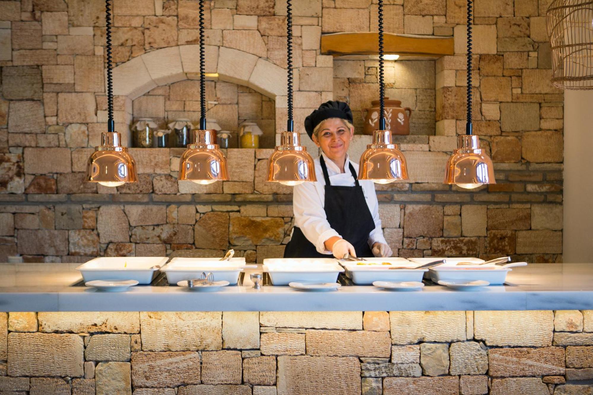 A couple of things to note: the hotel is mostly geared towards German-speaking guests, so many signs in the dining area were either in German or Greek, making it occasionally difficult to identify what each dish was (something to consider). Additionally, the maid knocked on our door at 9 AM to ask if we wanted cleaning, which felt a bit odd, especially so early.
