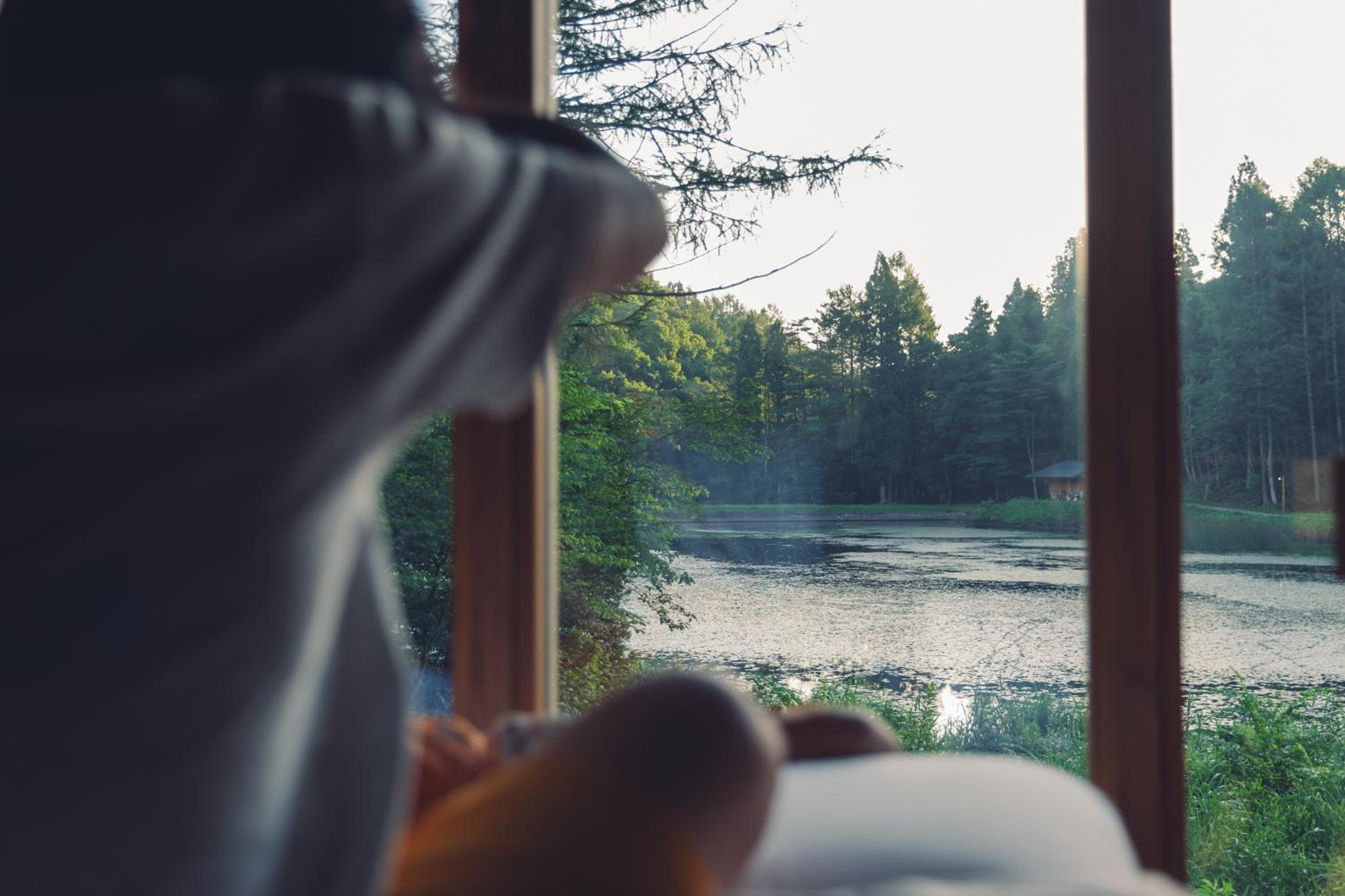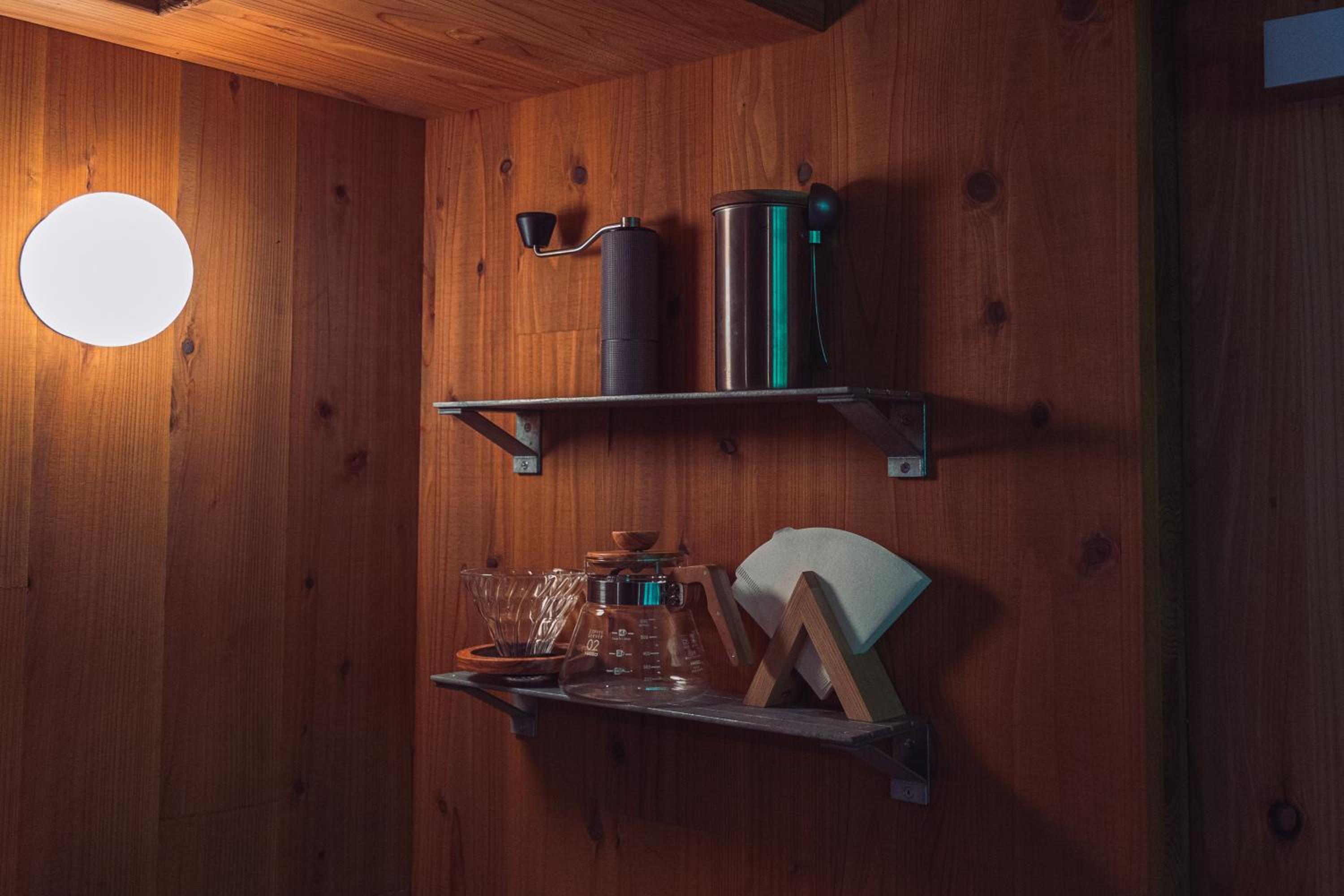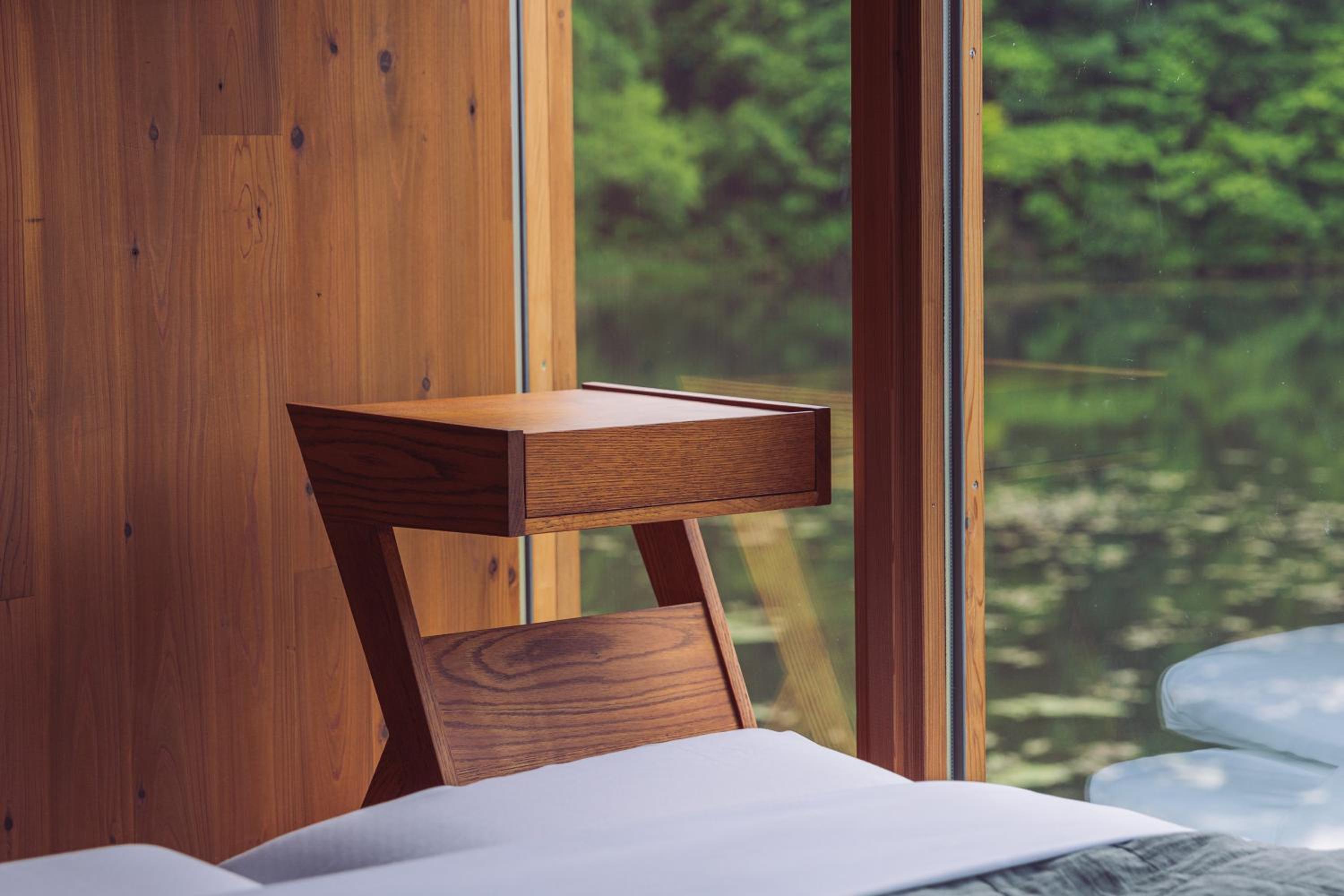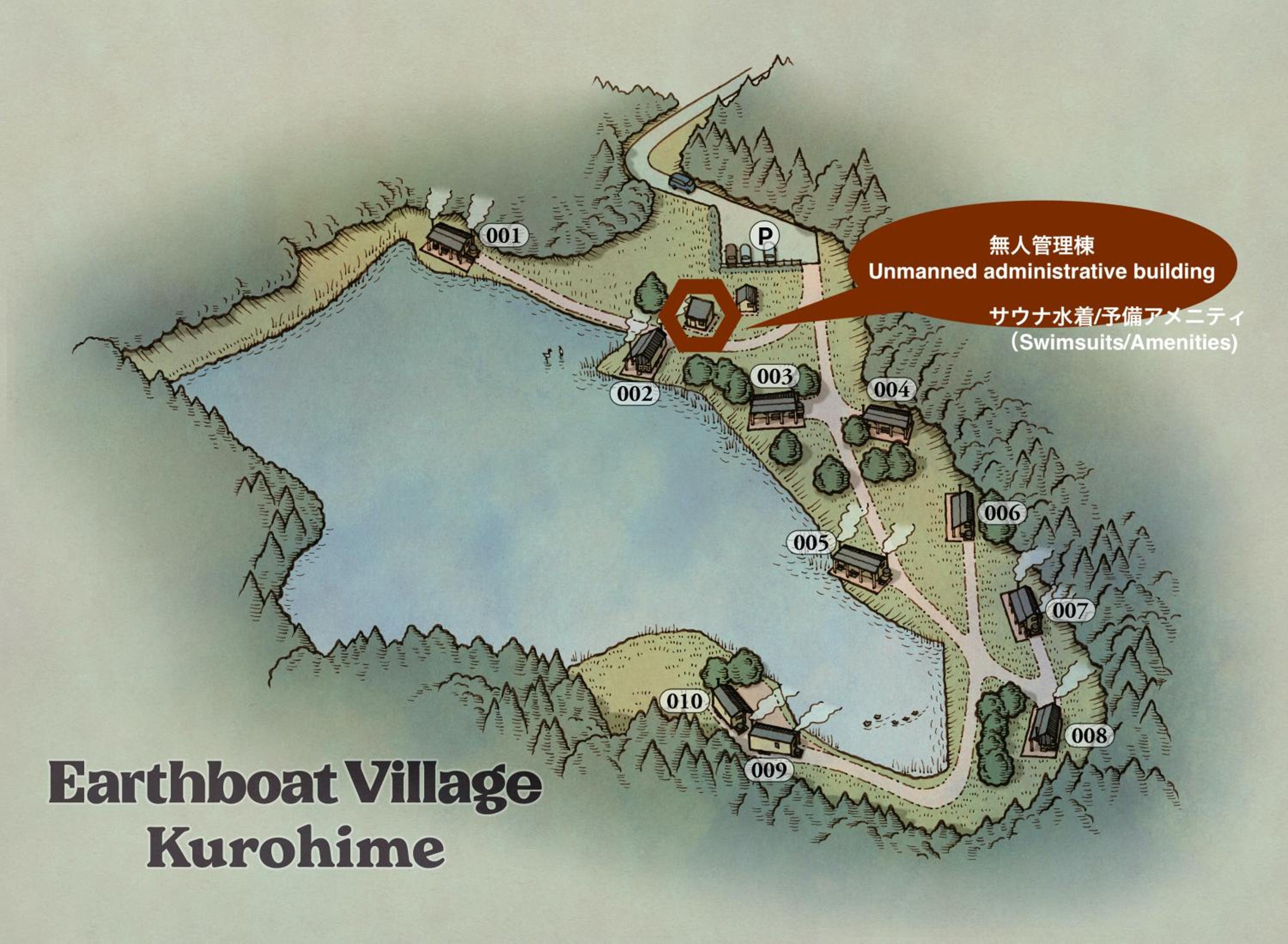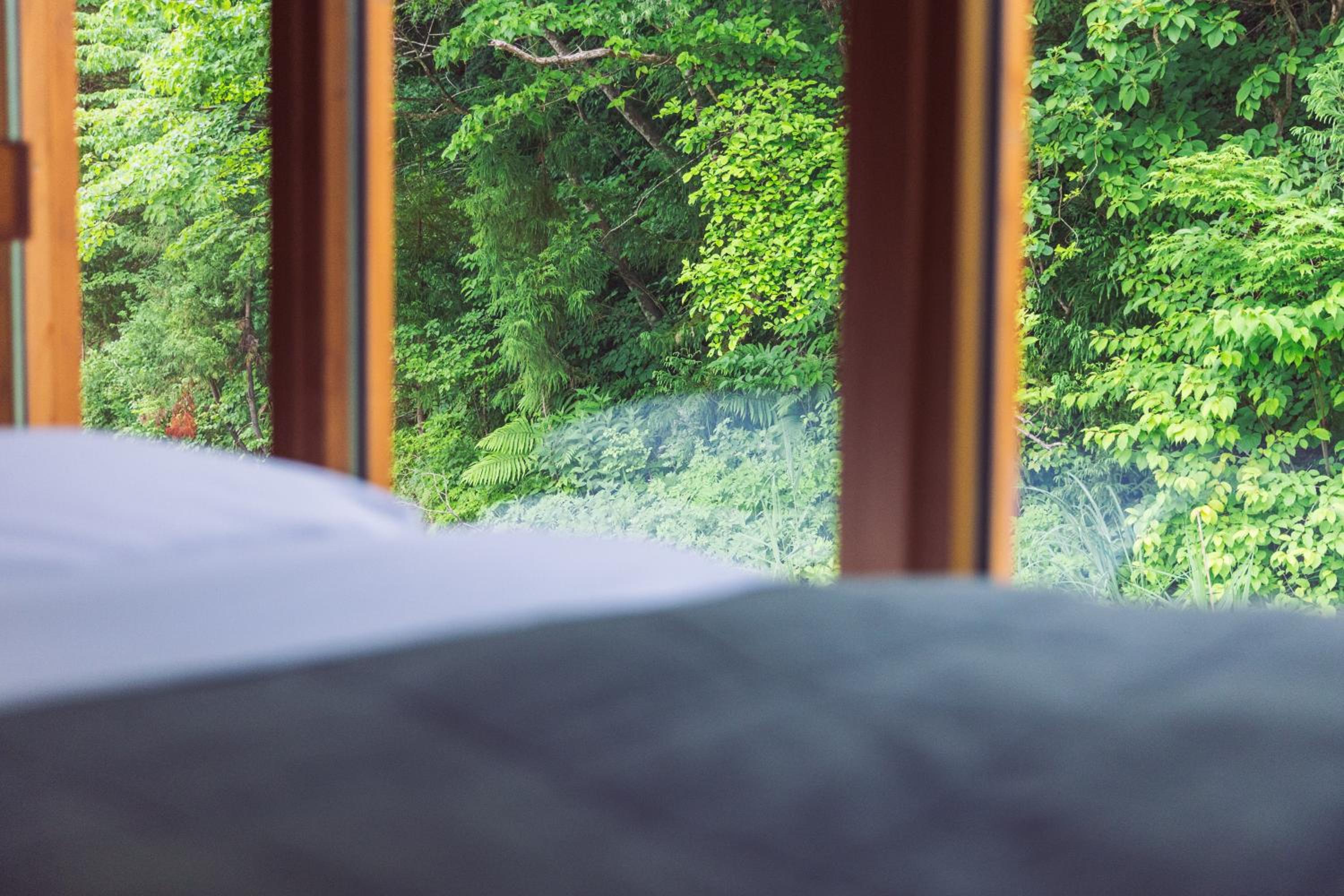 Self-check, there is no staff but very clear instructions also in English. The pond view was amazing and in the morning we could spot a Tanuki on the other side of the pond. Really beautiful room and surroundings, it feels like a very luxurious camping.