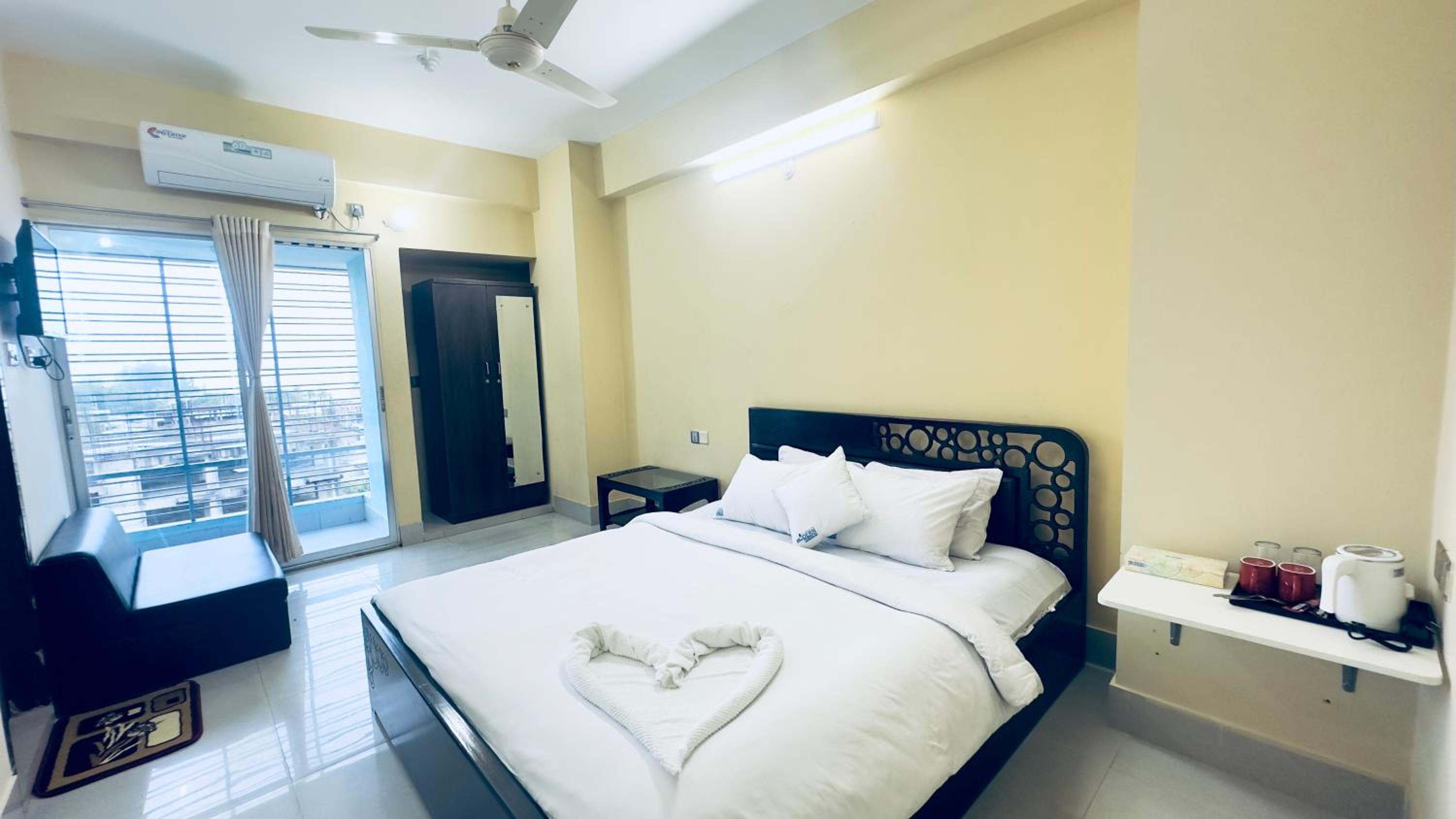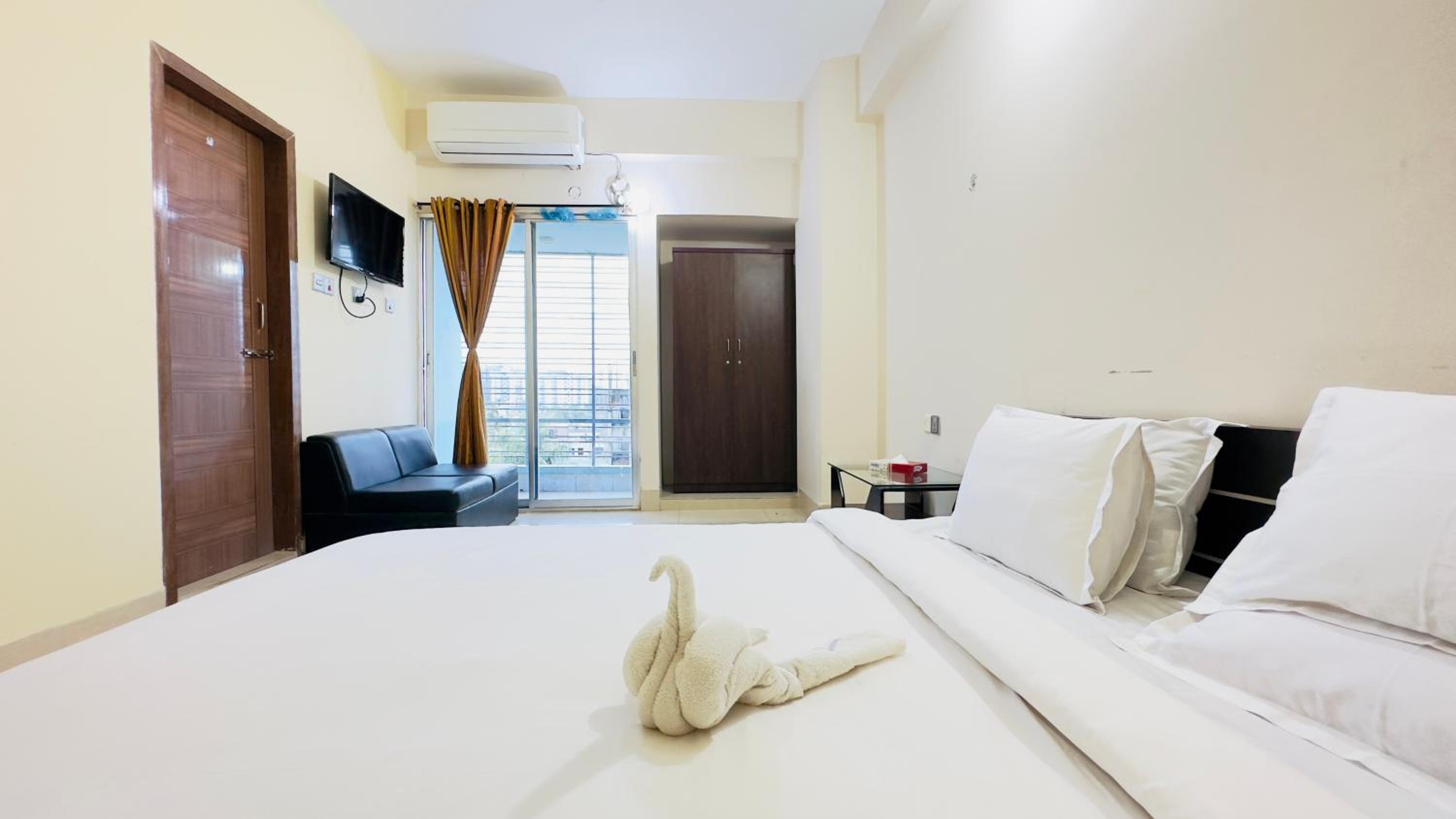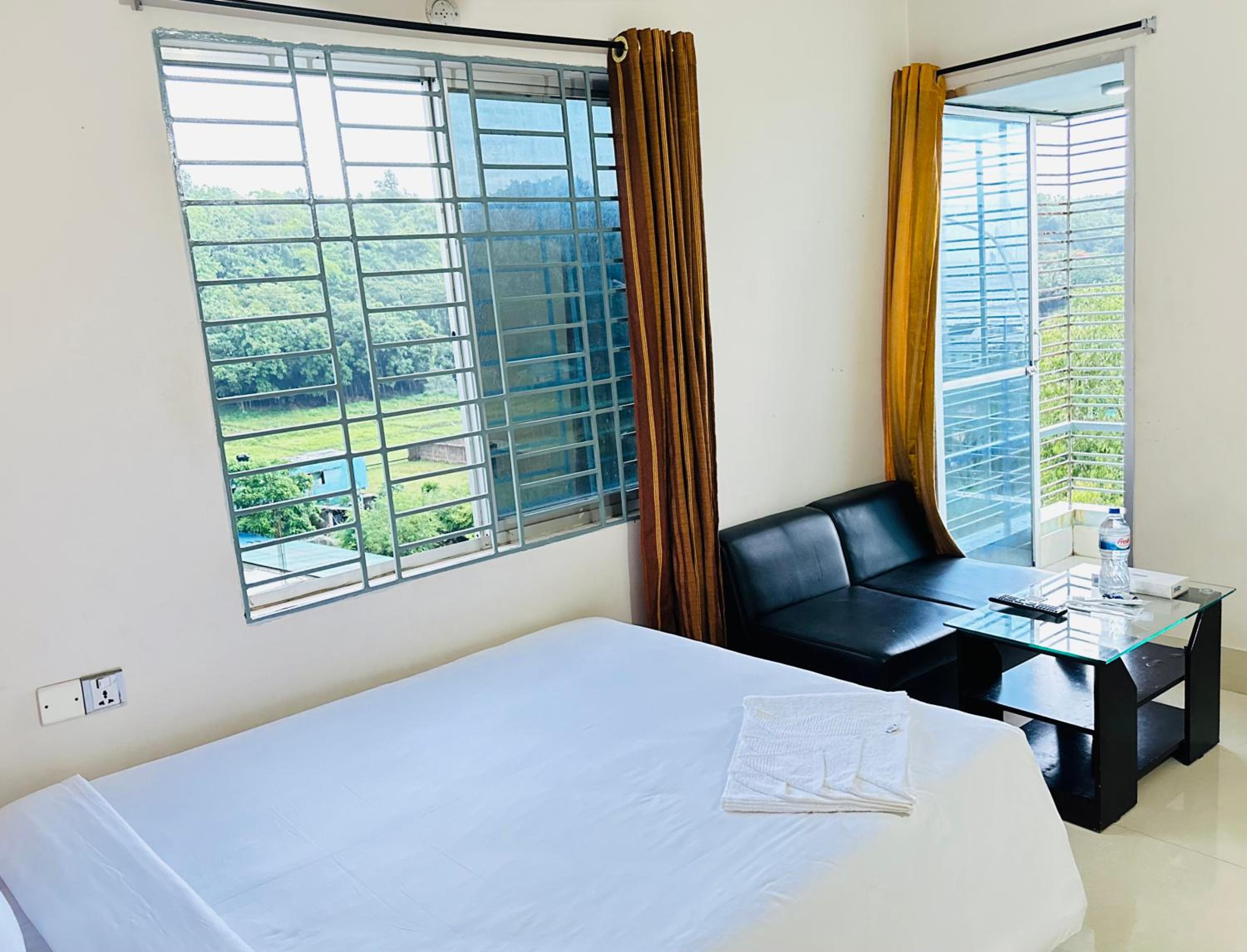 Don't provide any single glass to drink water, found no tawel, belcony door has no handle.... Thats why door does not work.... None can access to balcony for the door, cleanliness is very minimum... Bedsheet, pillow cover seems used... Walls is painted with dry cough....