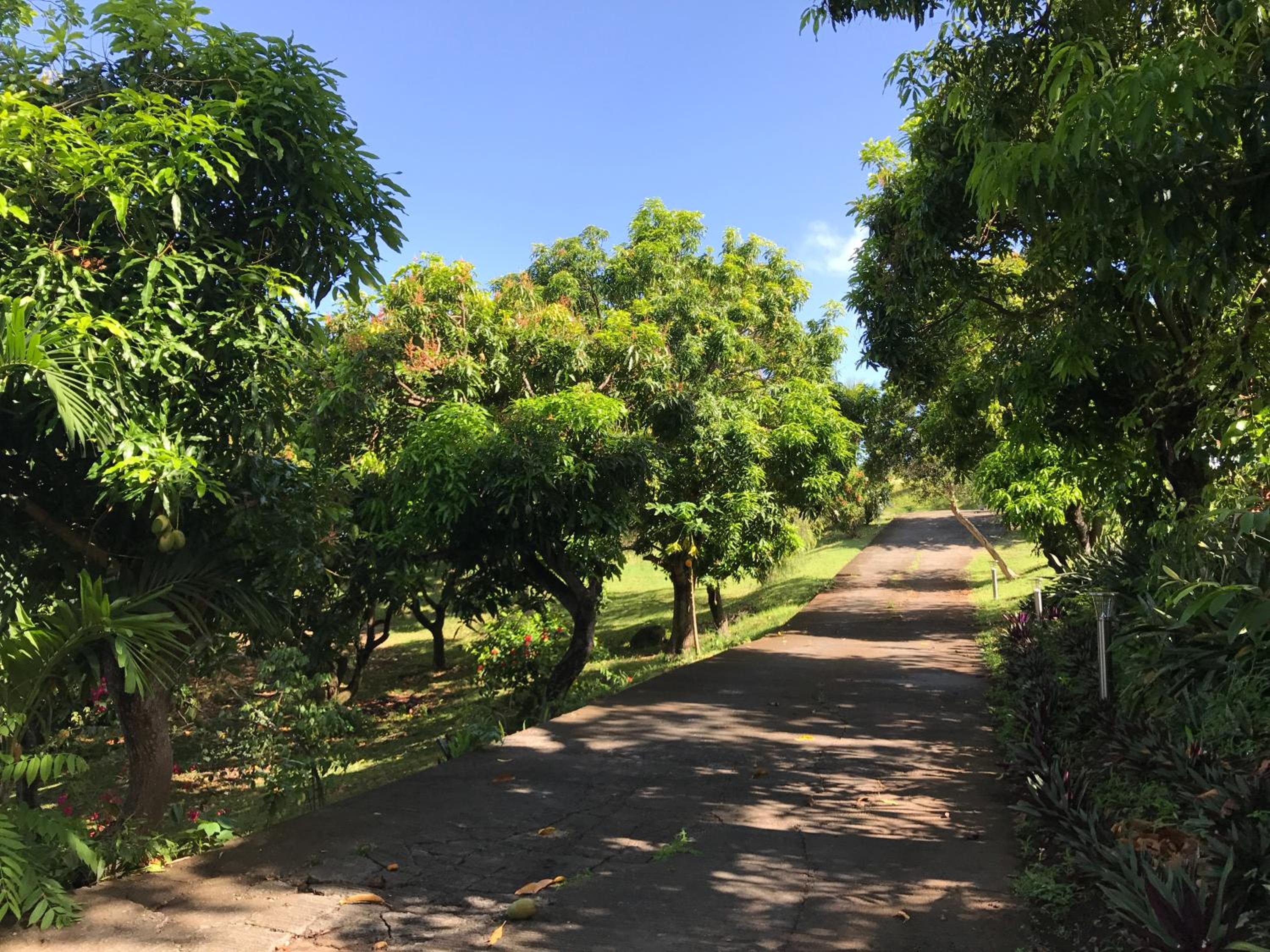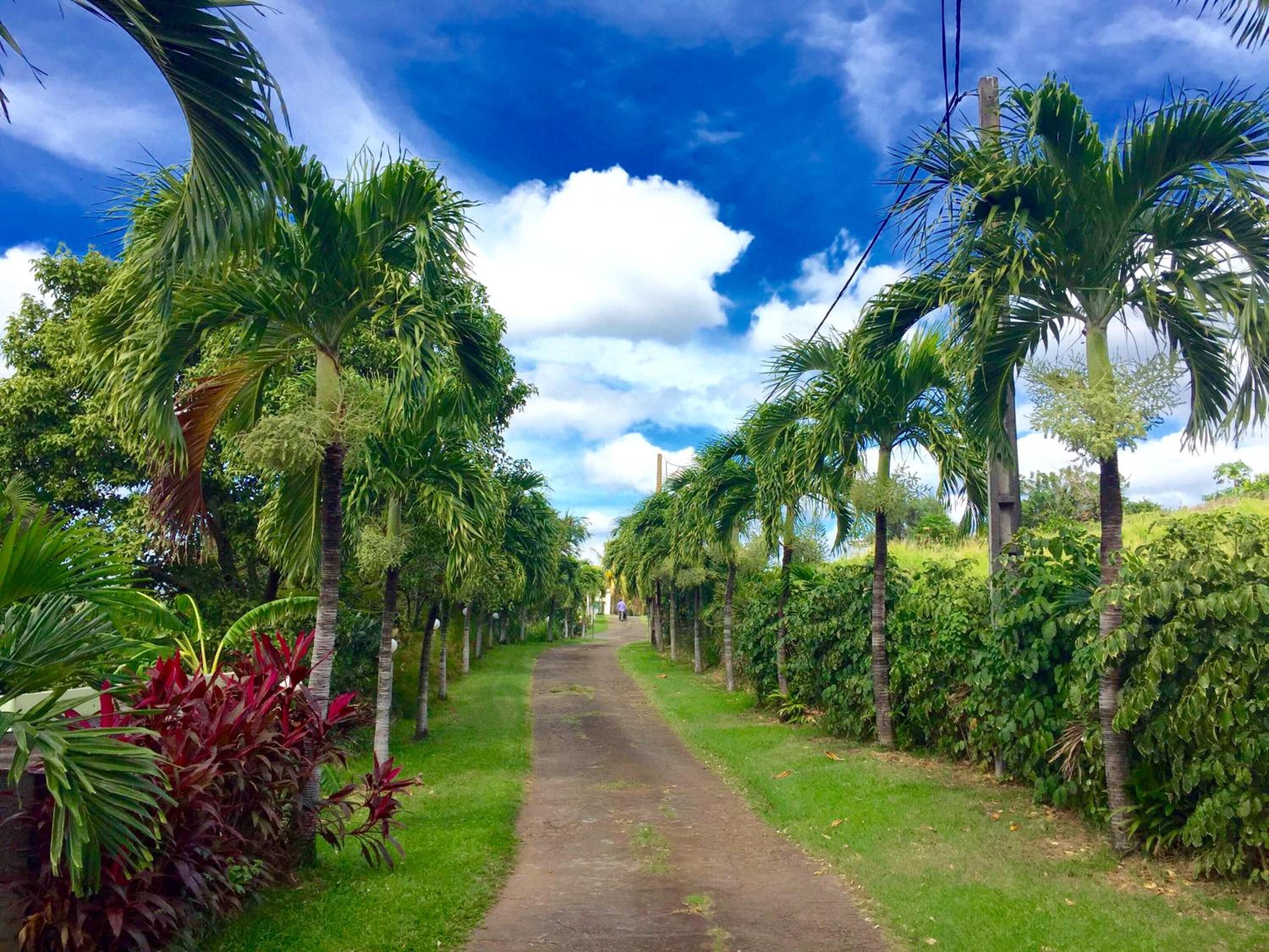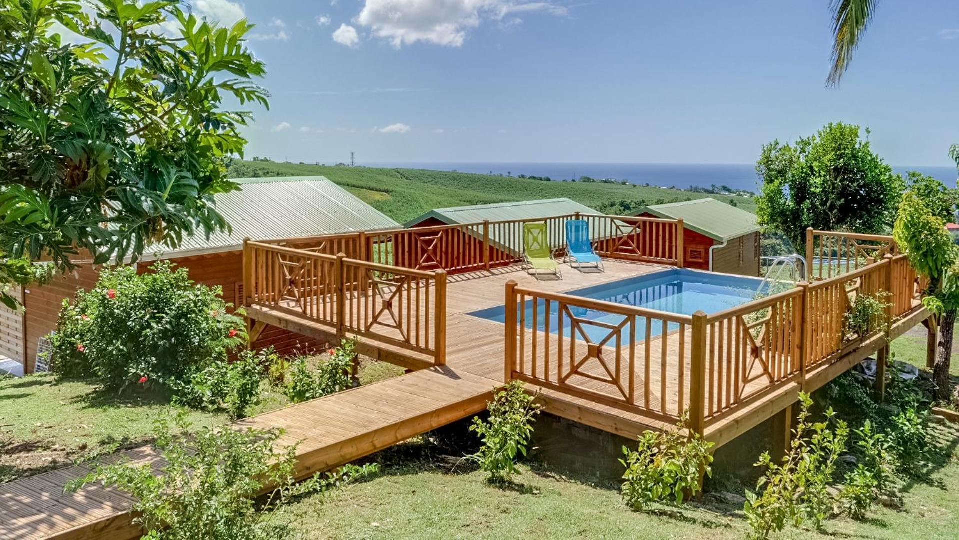Garden Oasis: Step into a lush paradise at Résidence Paradis Tropical, where an extensive garden surrounds a sun terrace and sparkling swimming pool, offering a tranquil retreat for guests.