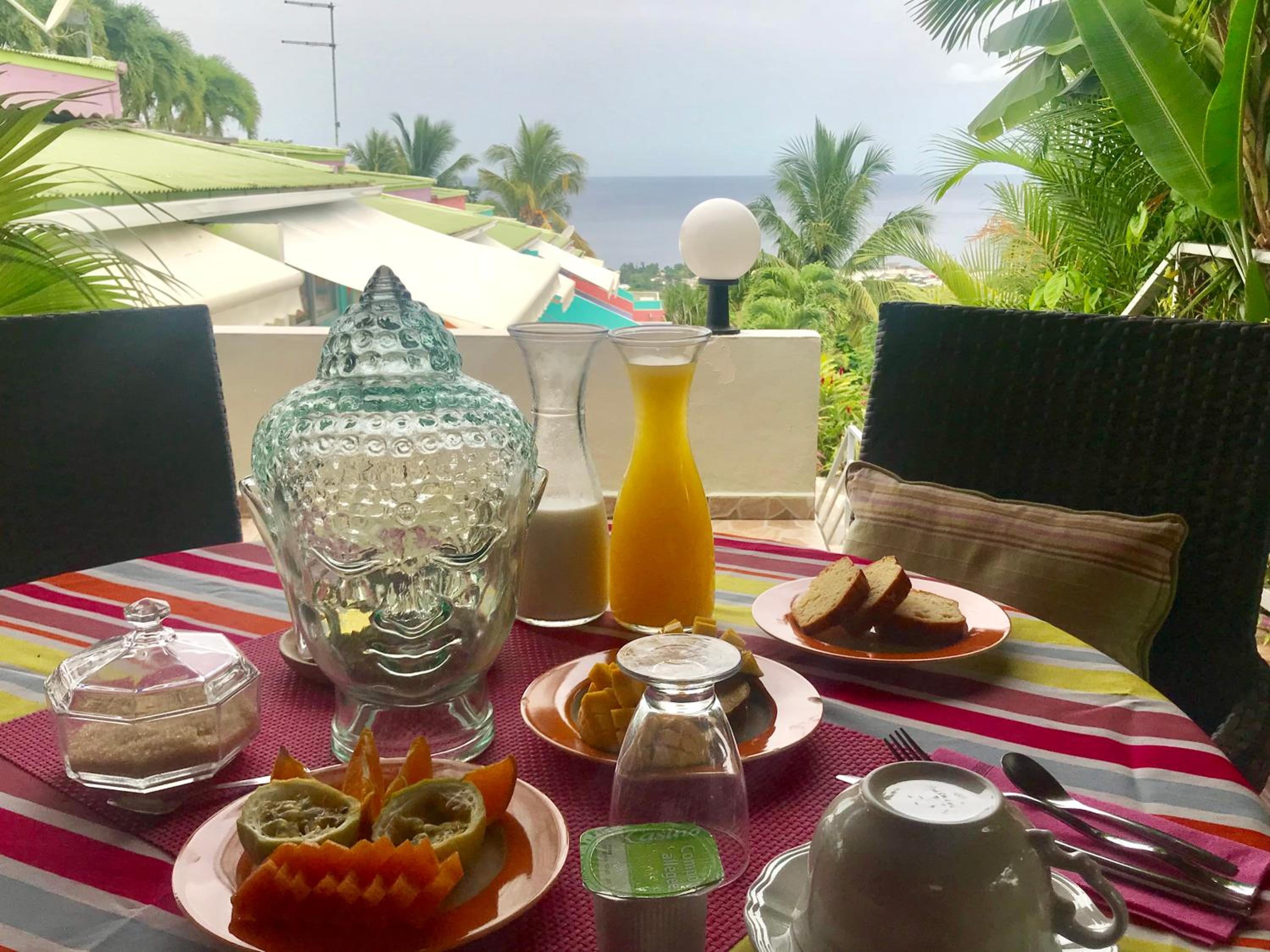 Vue magnifique depuis notre terrasse , propriétaire super sympa , idéalement situé pour la randonnée de la soufrière .