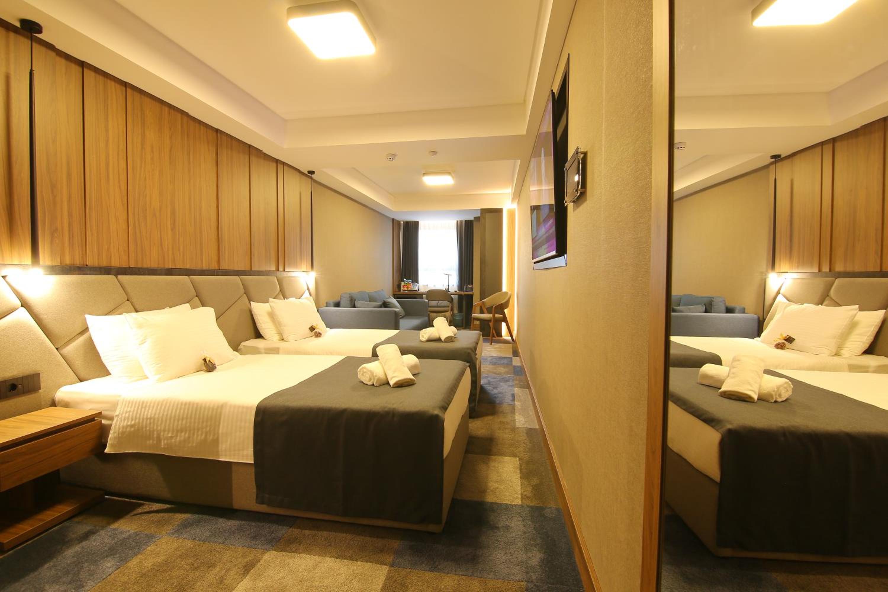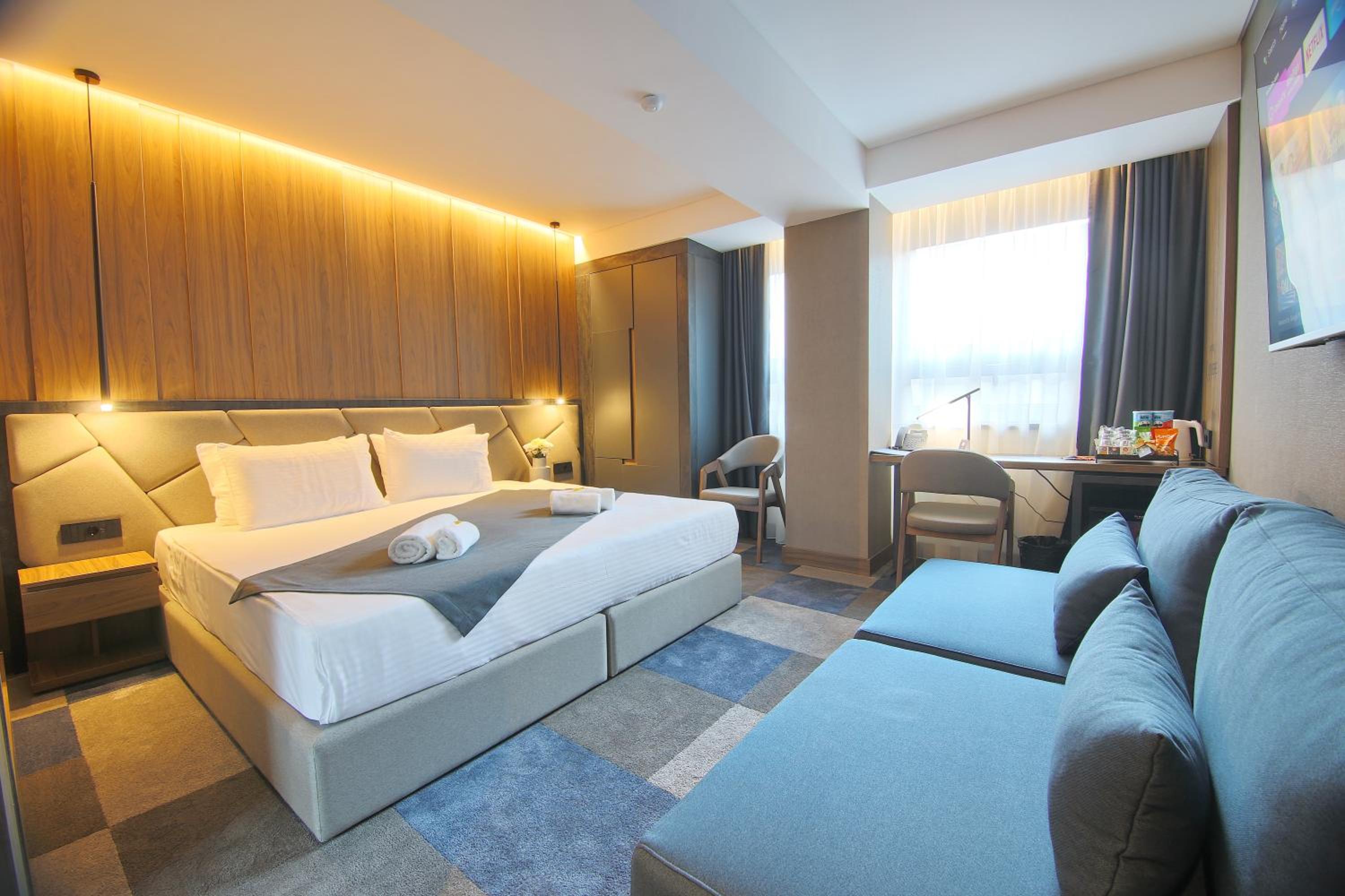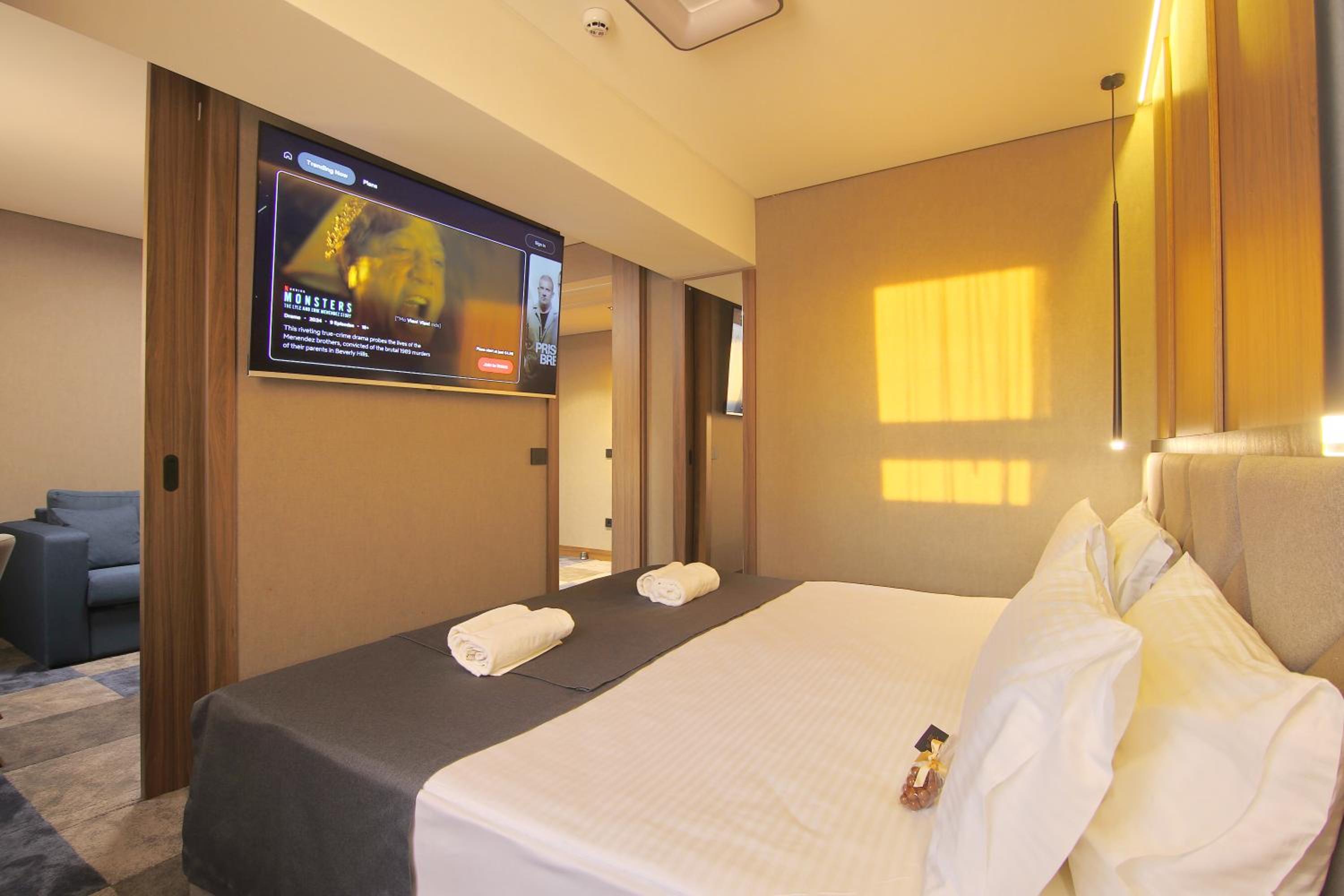Indulge in modern comforts with air conditioning, flat-screen TV, and a safety deposit box in every room at Lumière Hotel.