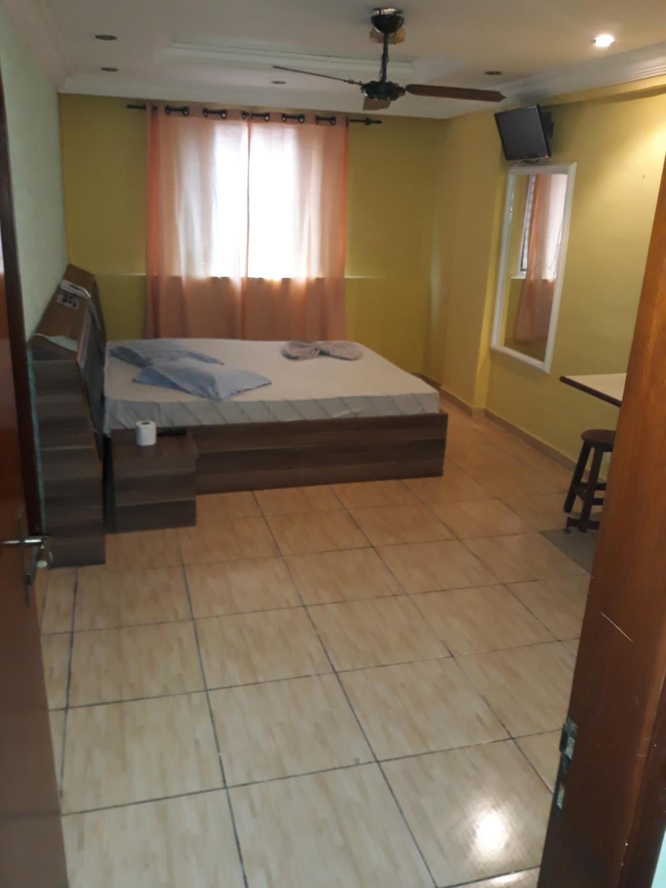 Hotel tem bastante escadas e corredores longos com visual não muito agradável. Arquitetura é bastante equivocada. Na suiíte há tv, ventilador.
