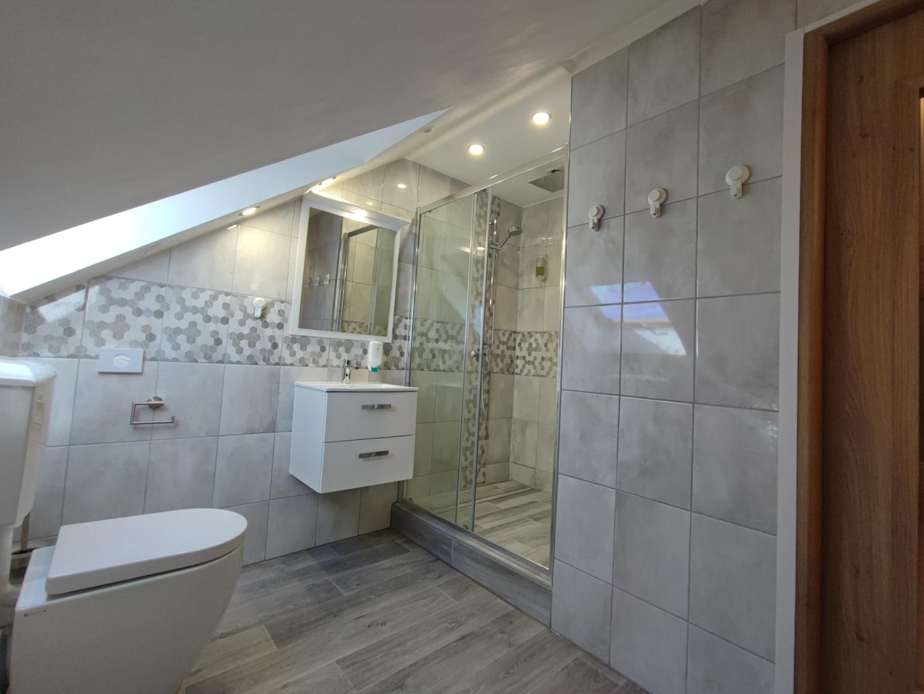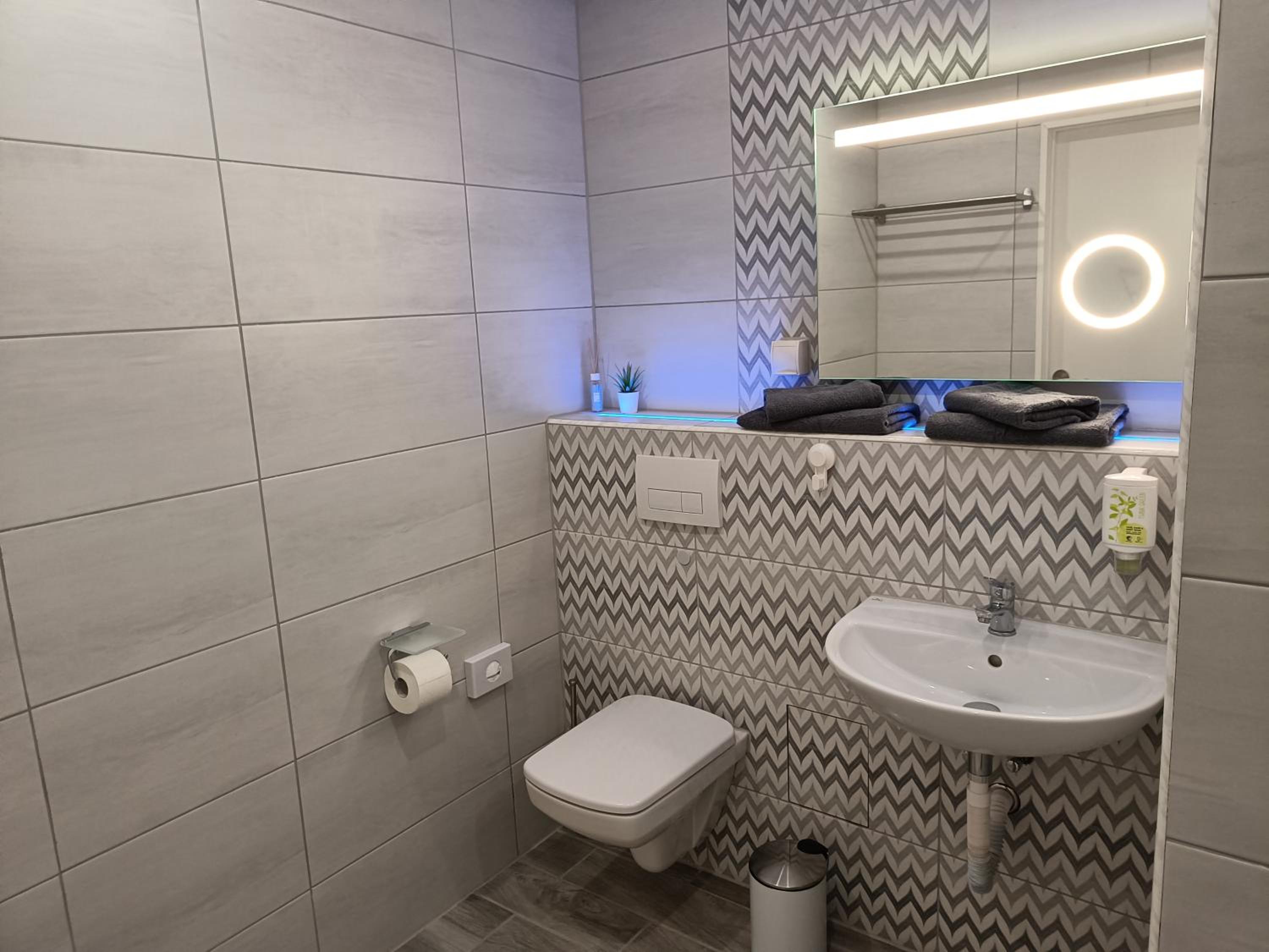 - sauberes, modernes Bad