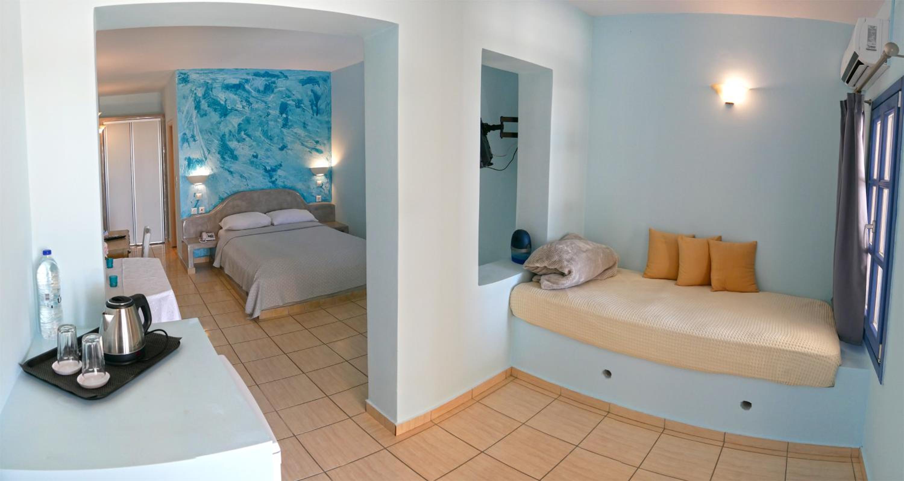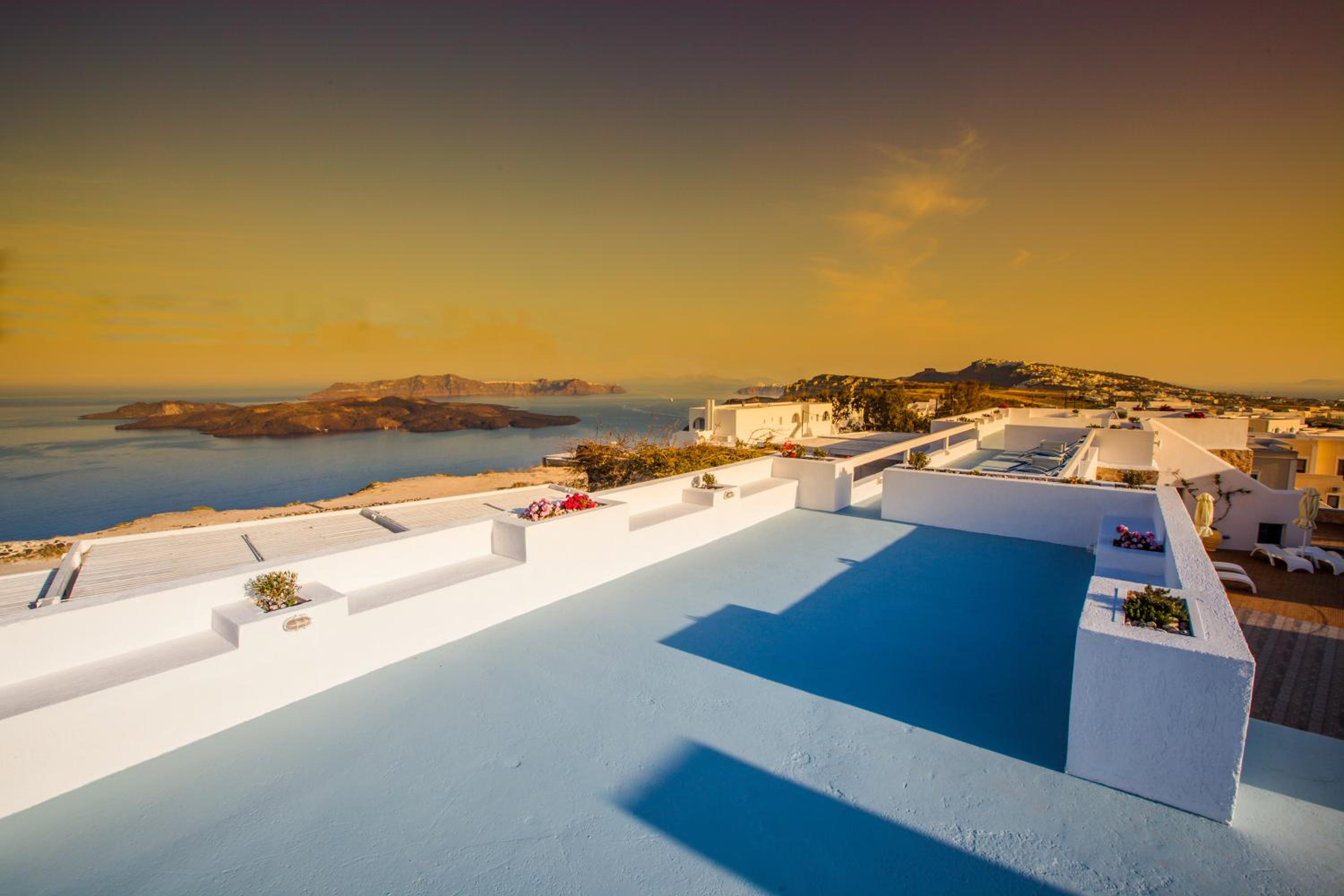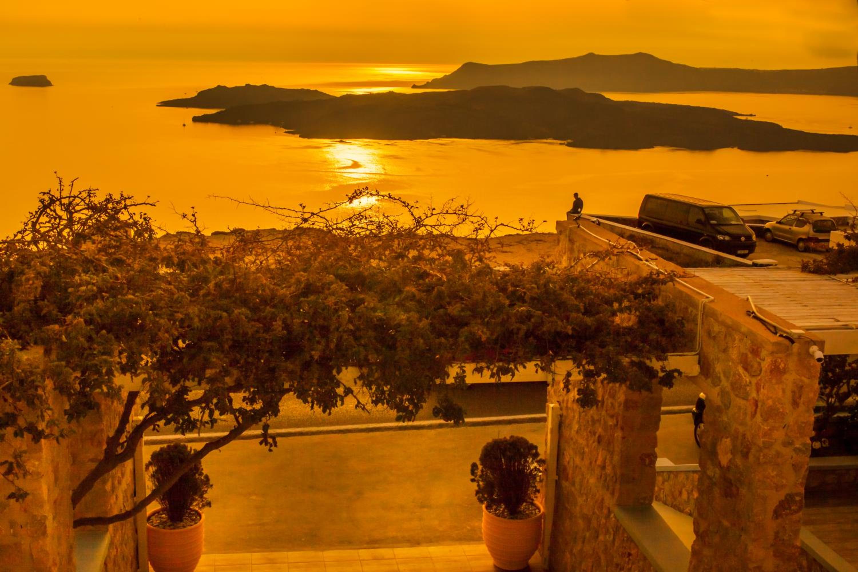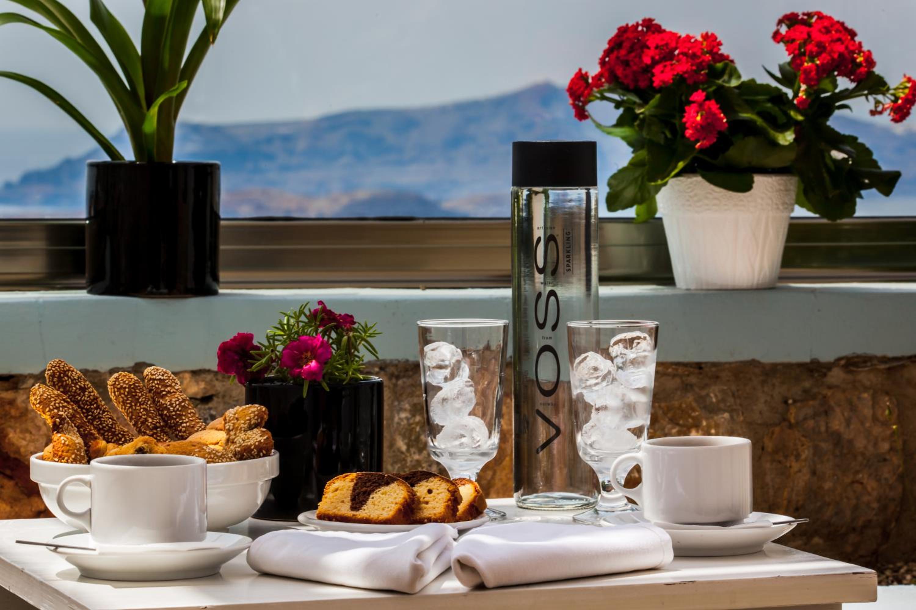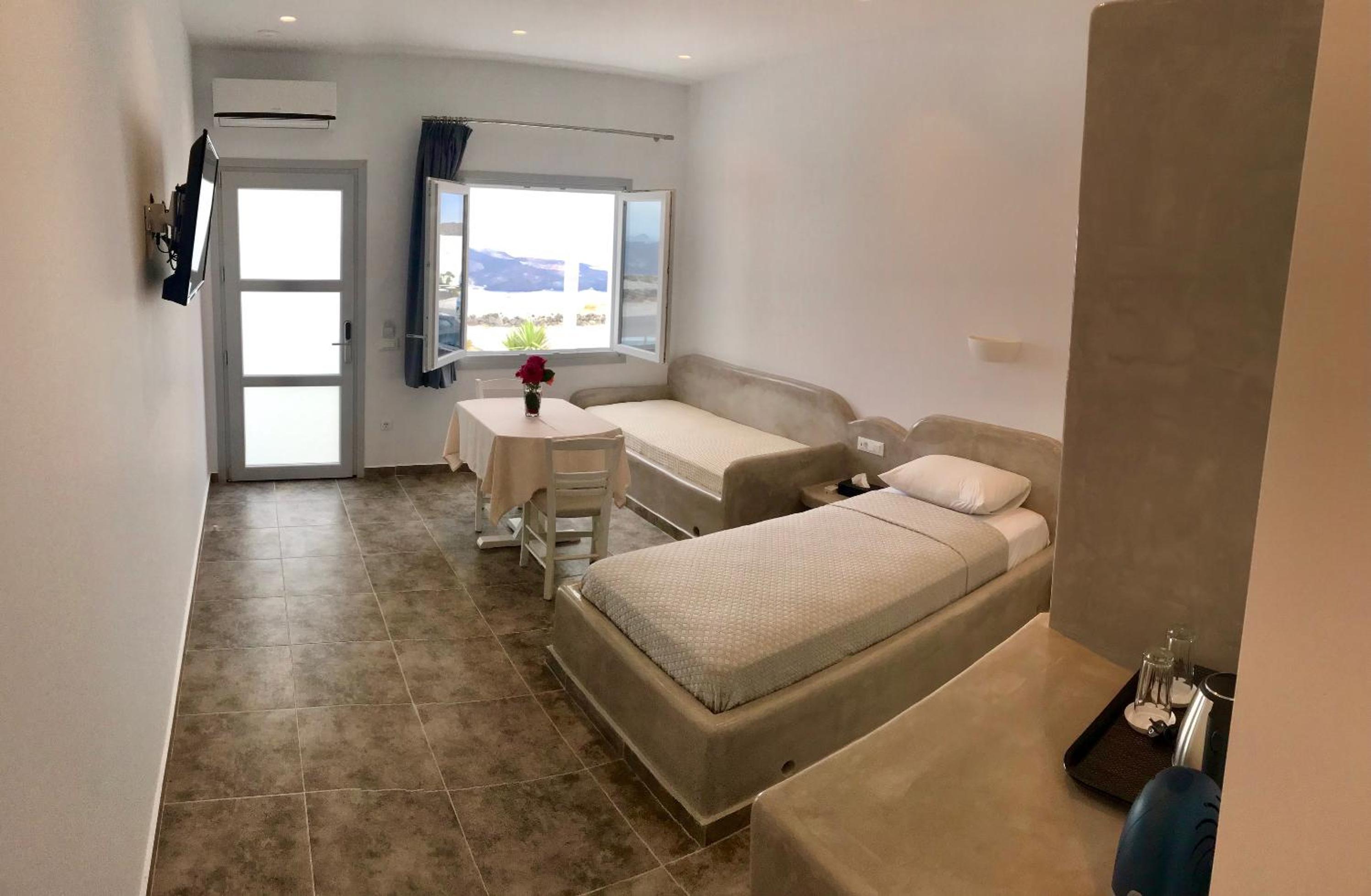 Quartos espaçosos, simpatia e prestatividade do staff, em especial do Michael, que fornece todas as informações necessárias, indicando em um mapa quais locais mais interessantes na ilha. Café da manhã no quarto - o hóspede escolhe o cardápio na véspera. Transfer do próprio hotel para Fira em alguns horários, a serem solicitados pelo WhatsApp ou na recepção, sem custos adicionais. Parada de ônibus em frente ao hotel.