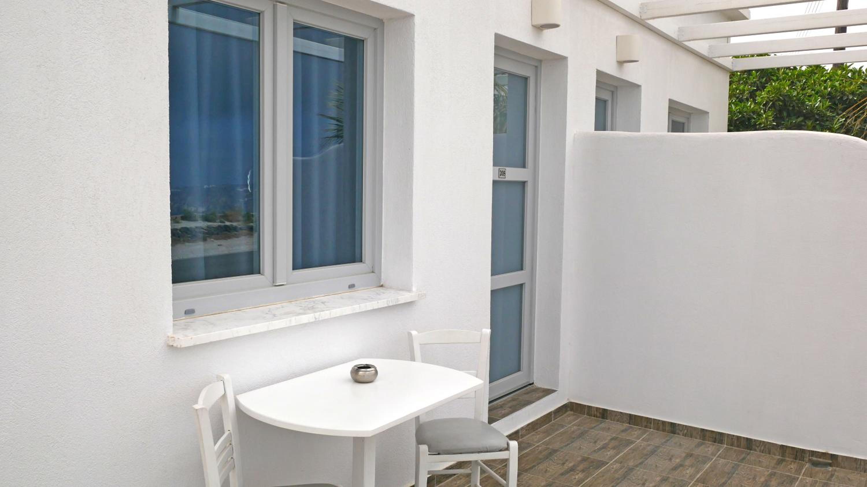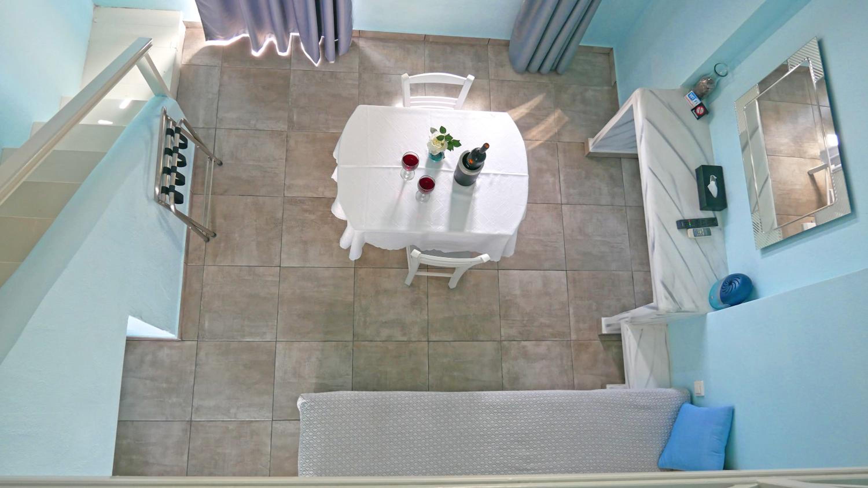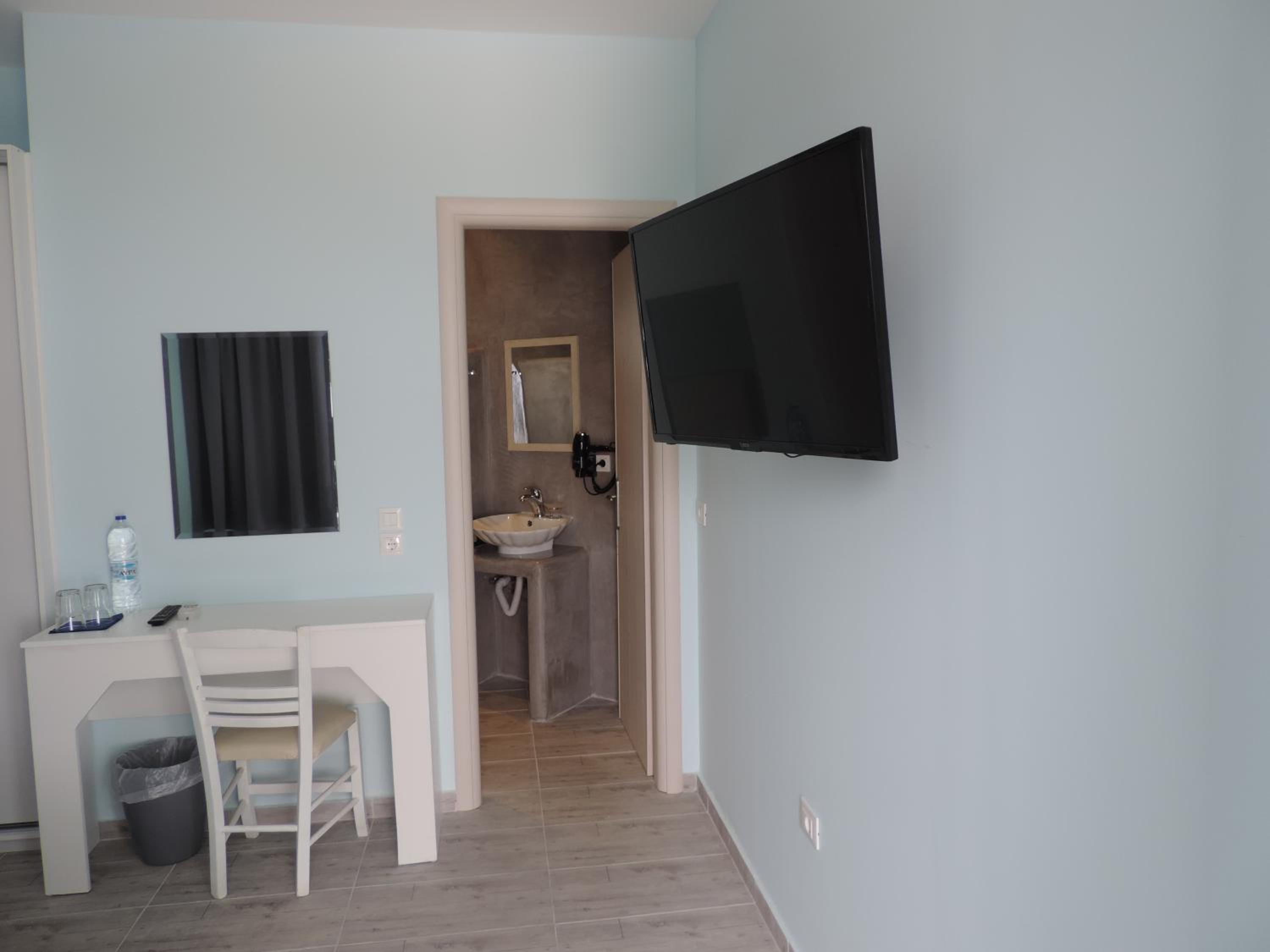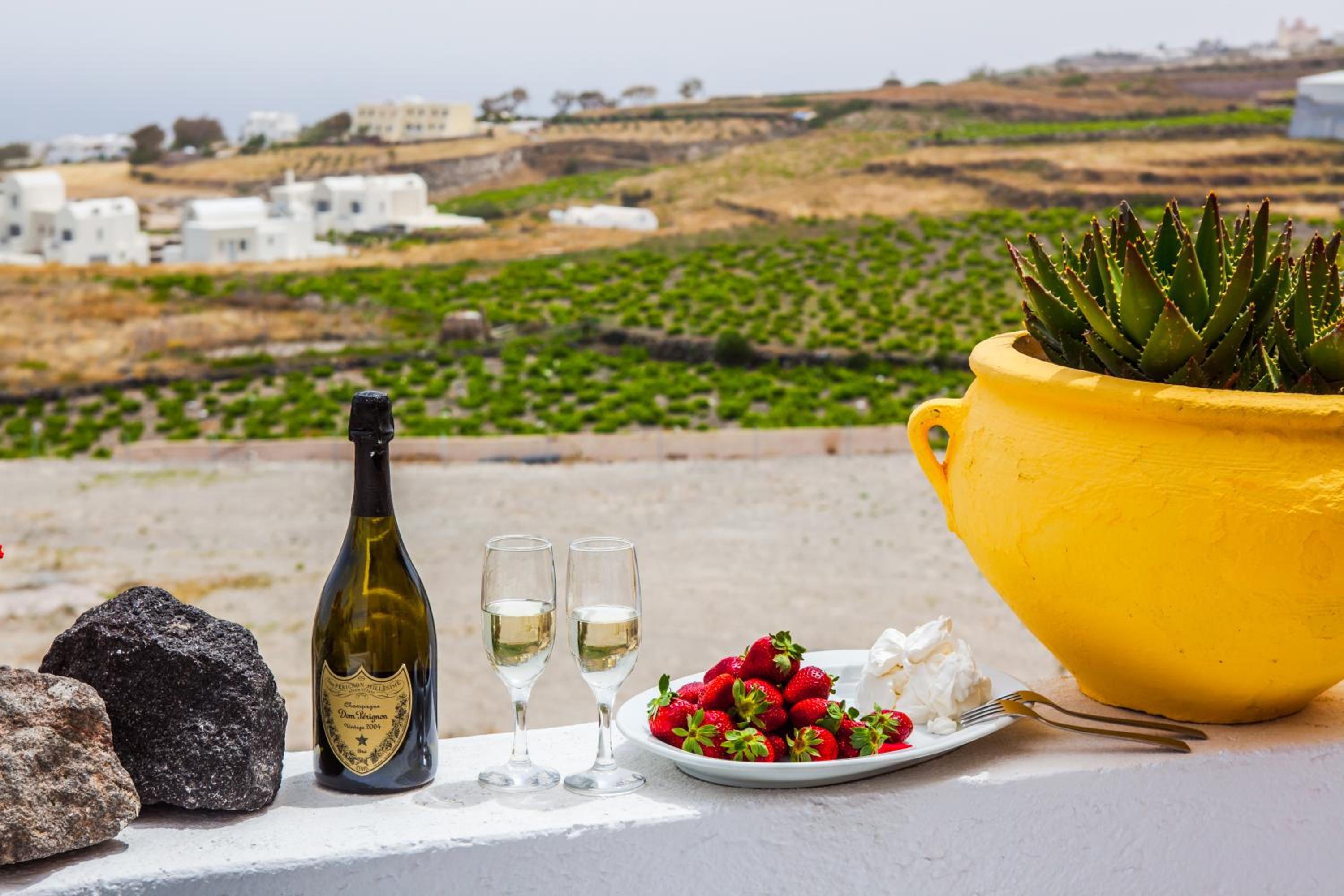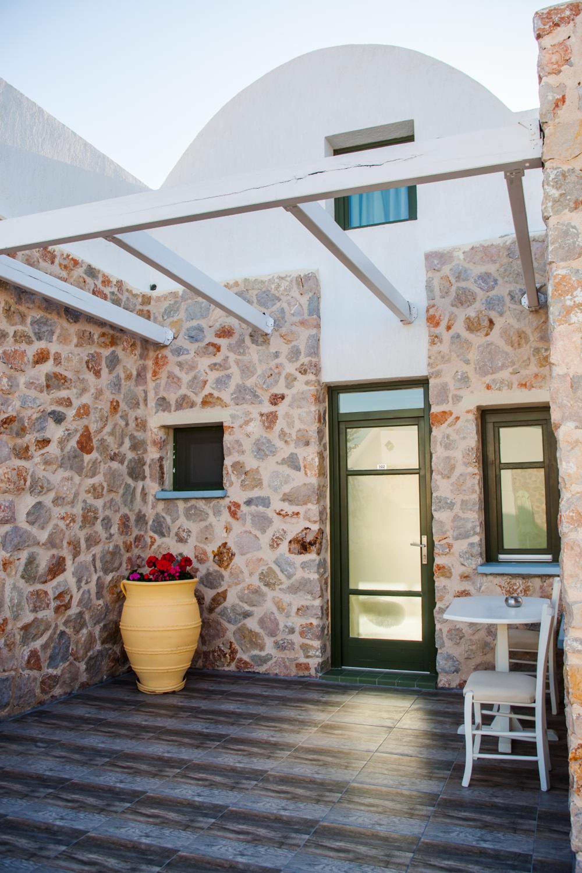 Quartos espaçosos, simpatia e prestatividade do staff, em especial do Michael, que fornece todas as informações necessárias, indicando em um mapa quais locais mais interessantes na ilha. Café da manhã no quarto - o hóspede escolhe o cardápio na véspera. Transfer do próprio hotel para Fira em alguns horários, a serem solicitados pelo WhatsApp ou na recepção, sem custos adicionais. Parada de ônibus em frente ao hotel.