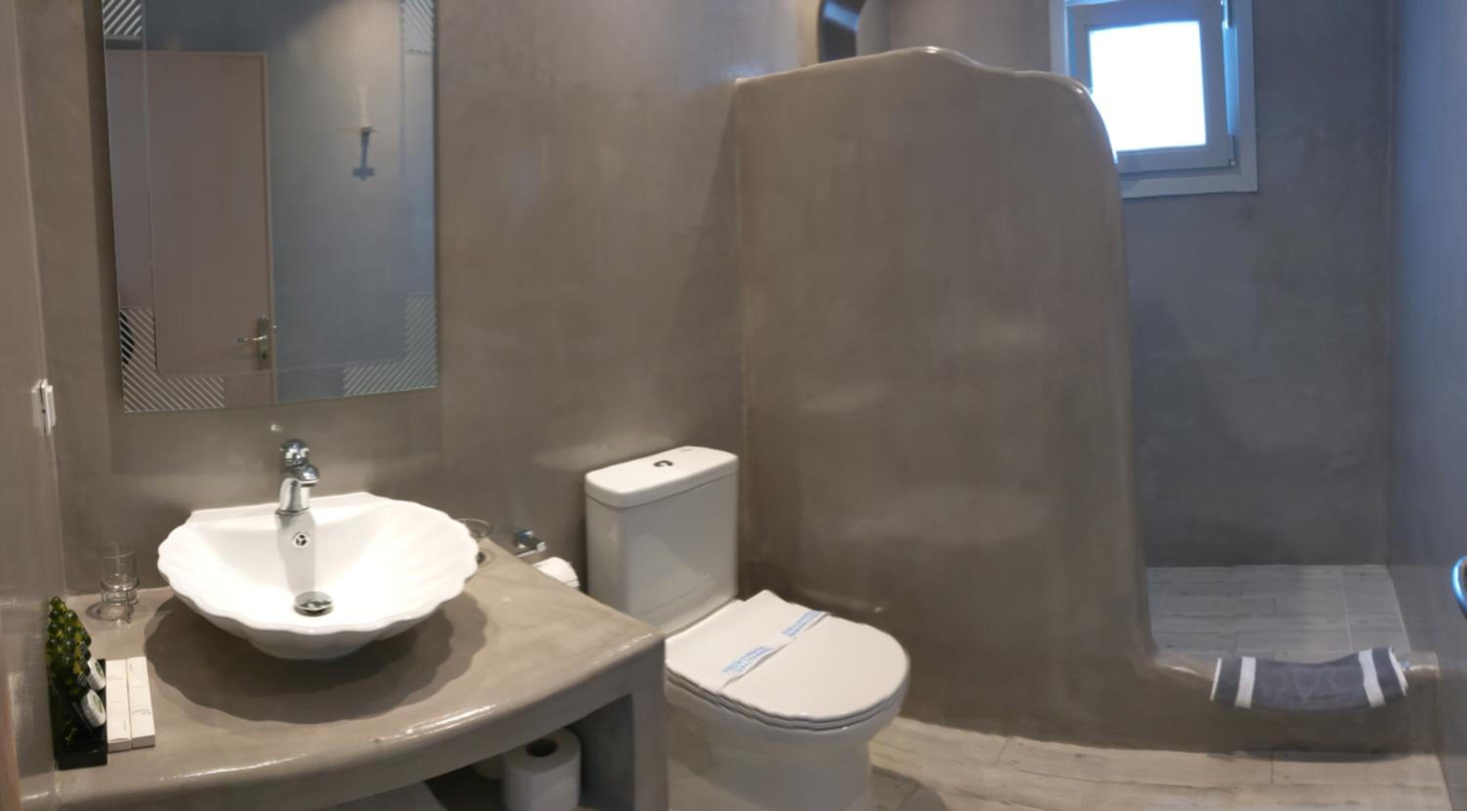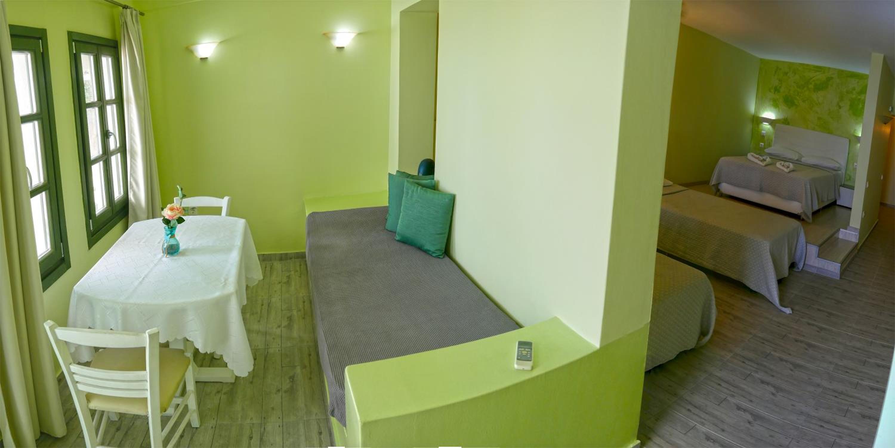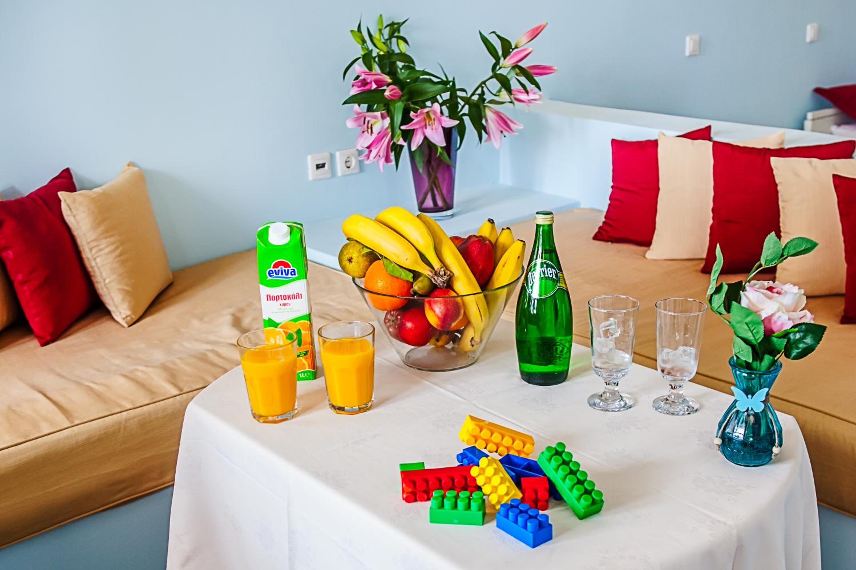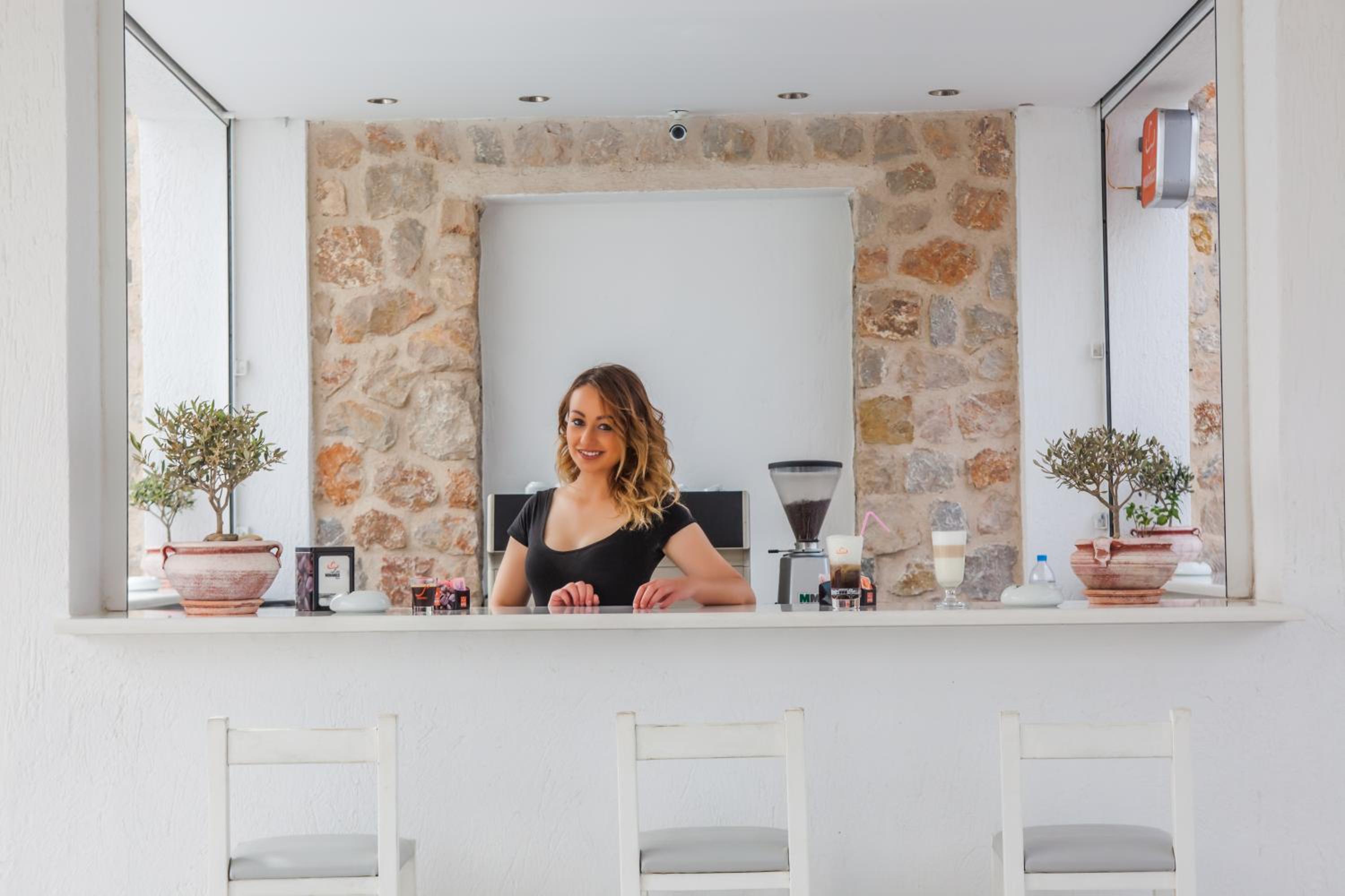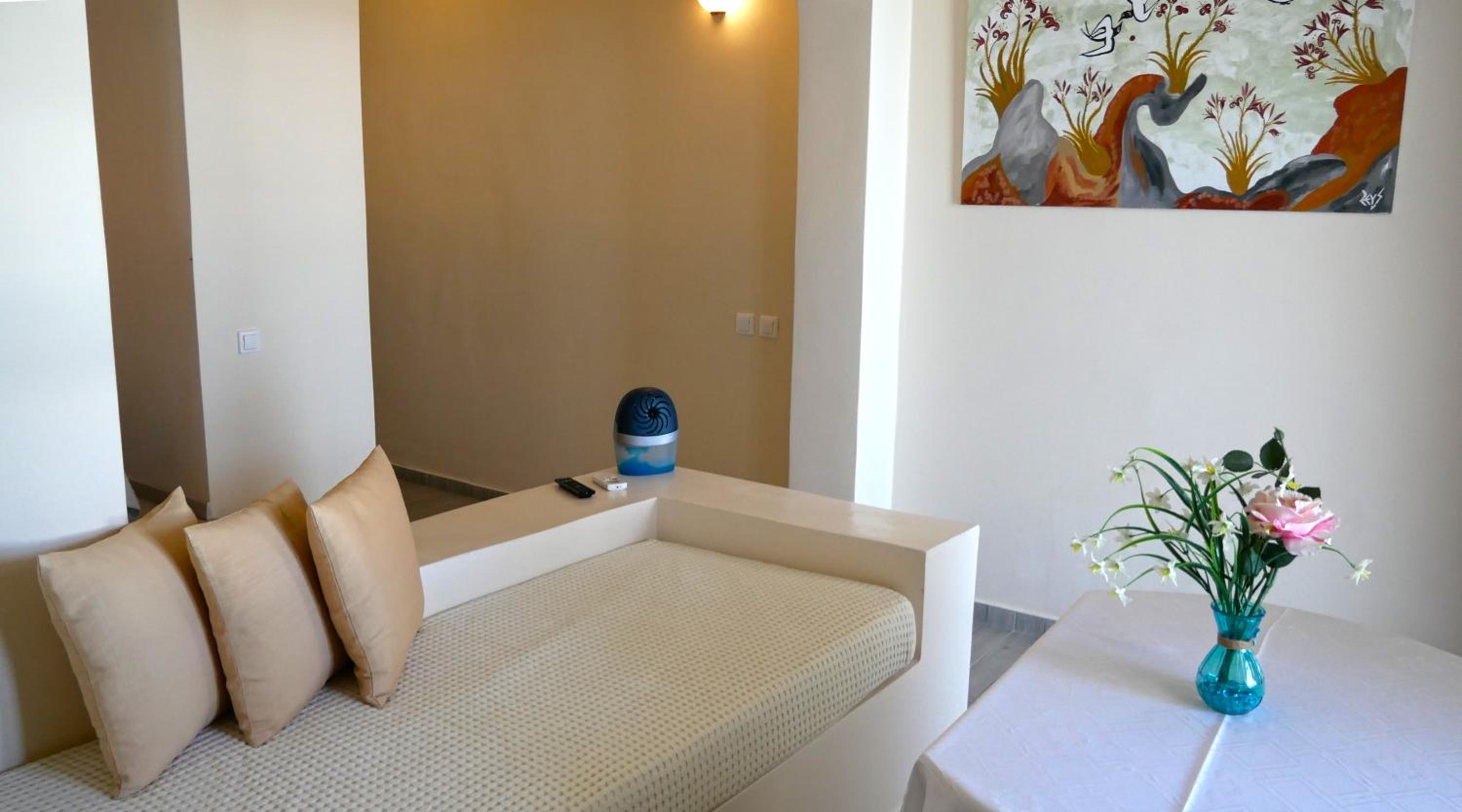 Quartos espaçosos, simpatia e prestatividade do staff, em especial do Michael, que fornece todas as informações necessárias, indicando em um mapa quais locais mais interessantes na ilha. Café da manhã no quarto - o hóspede escolhe o cardápio na véspera. Transfer do próprio hotel para Fira em alguns horários, a serem solicitados pelo WhatsApp ou na recepção, sem custos adicionais. Parada de ônibus em frente ao hotel.