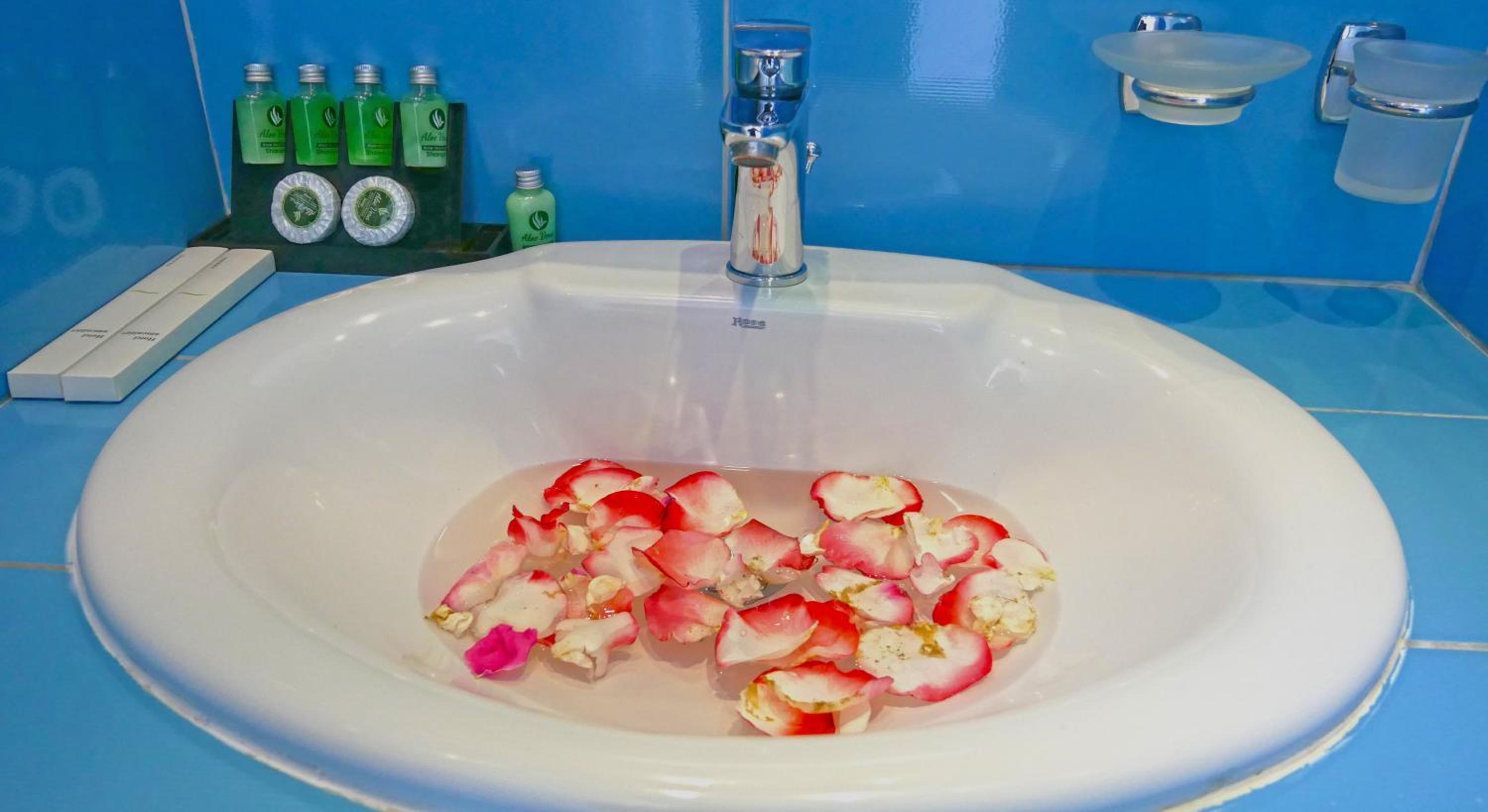 Mieliśmy pokój trochę blisko głównej drogi i słychać dosyć intensywnie samochody, ale większość hoteli wzdłuż linii brzegowej zawsze ma obok główną trasę, więc ciężko tego uniknąć. Dzięki temu mieliśmy widok na morze i zachód słońca, więc coś za coś. Są też inne pokoje, dalej od ulicy.