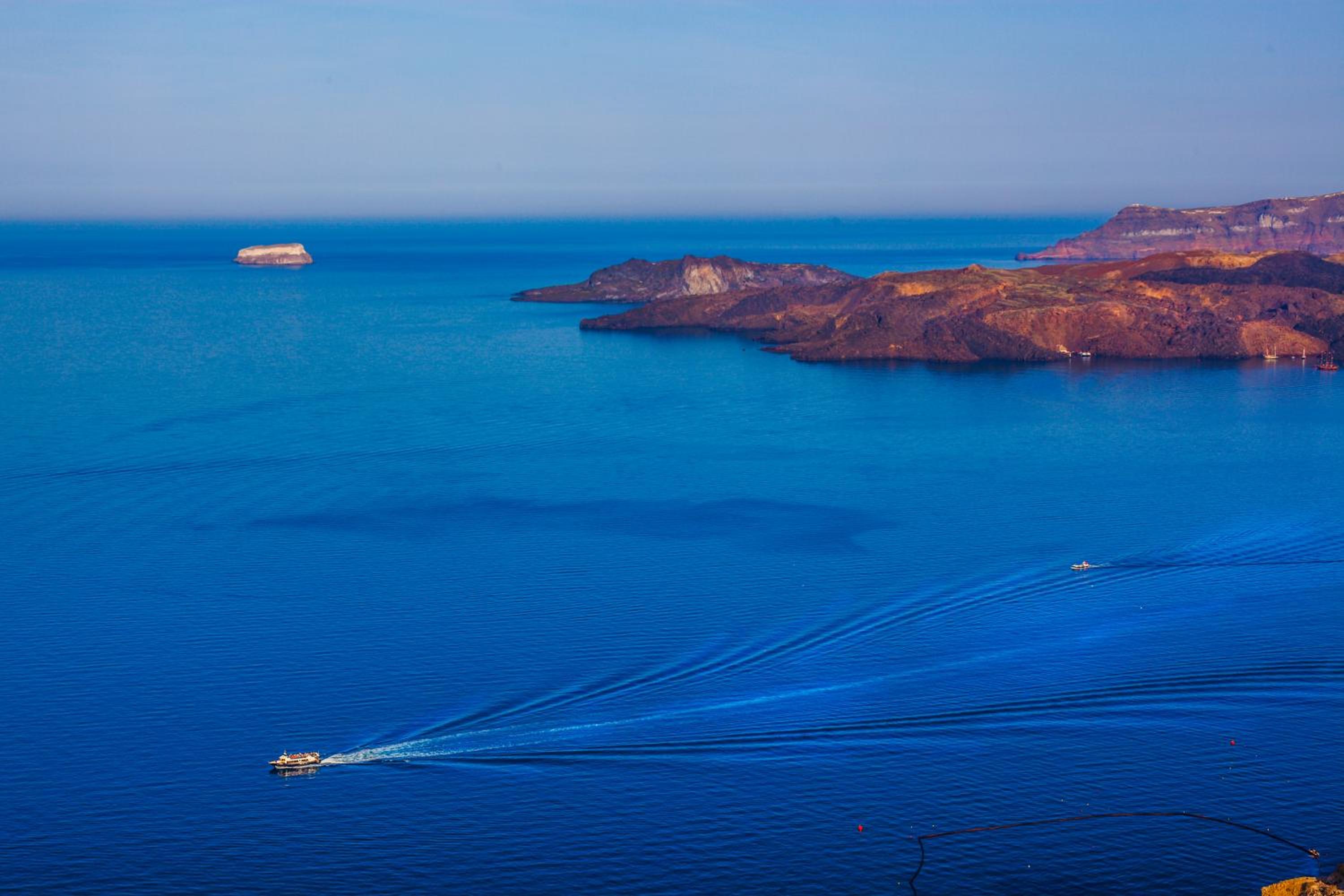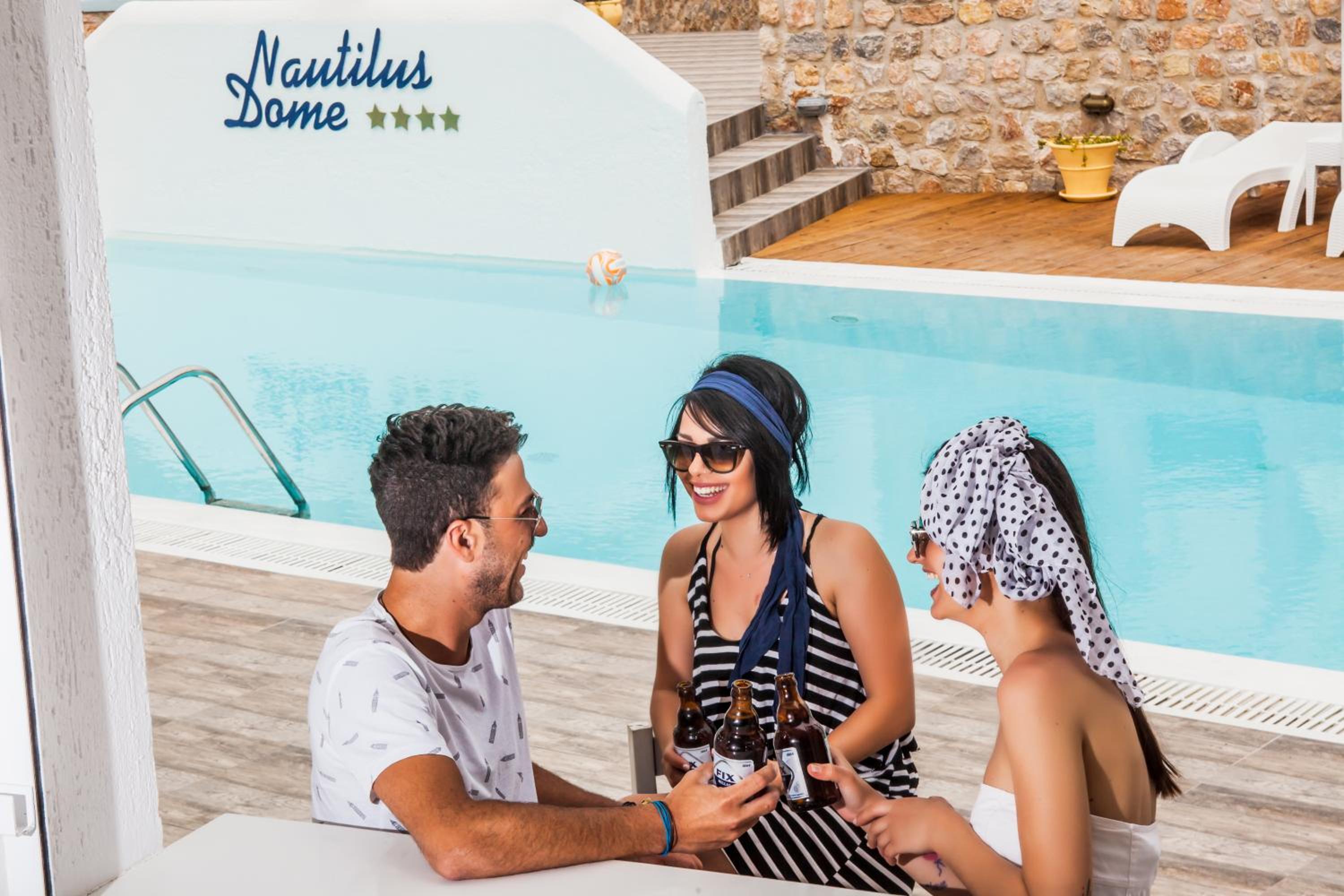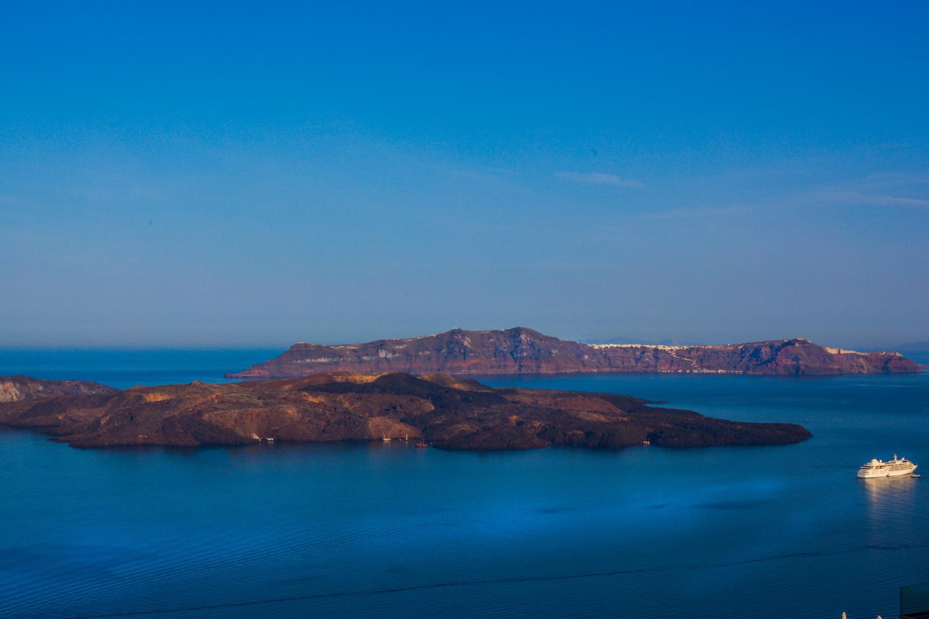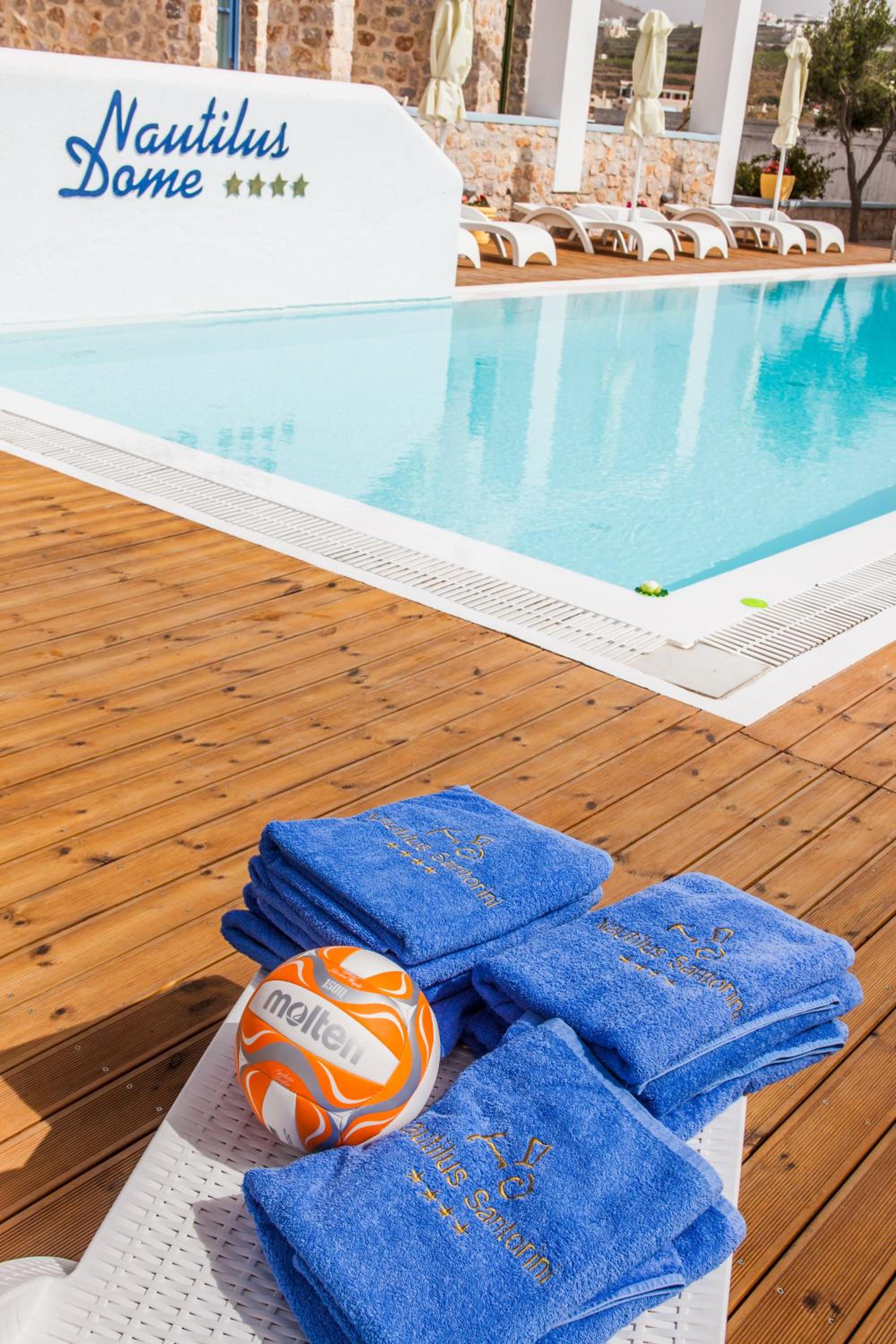 Nautilus Dome Suites offers a luxurious stay on the side of the caldera, boasting a pool with a wooden deck and breathtaking views of the Aegean Sea and volcano. The traditionally decorated suites feature private balconies or patios, perfect for enjoying the garden, volcano, or sea views.