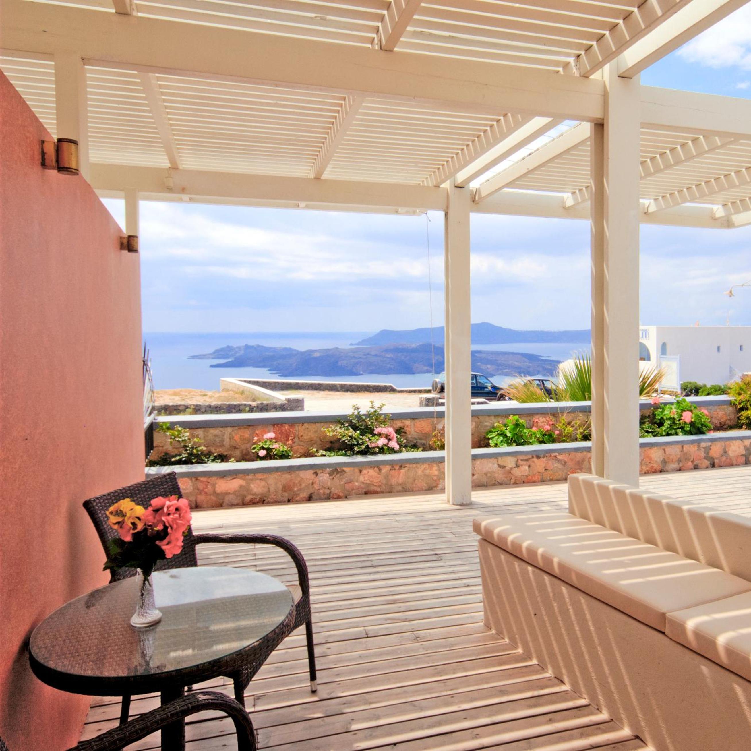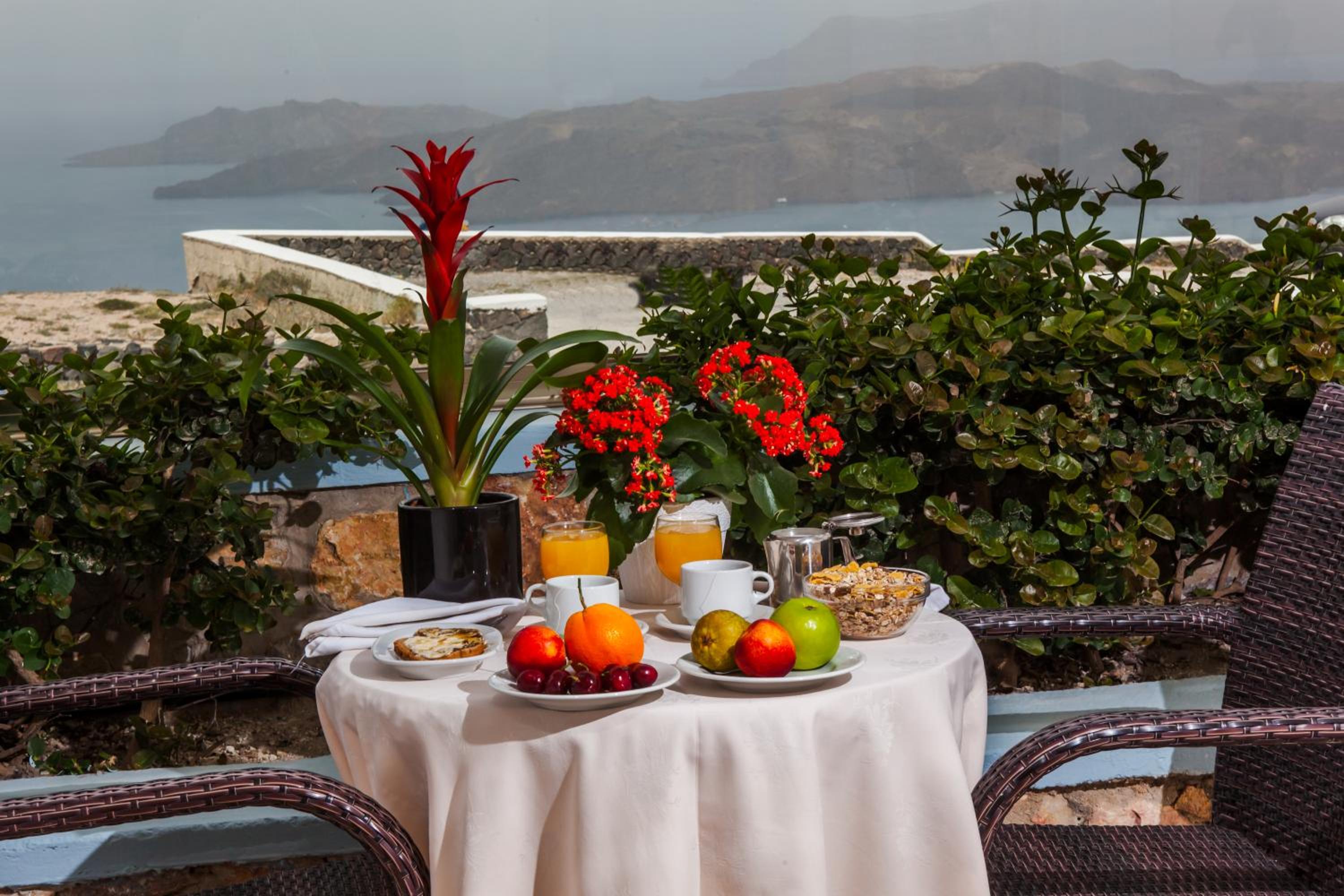 Nach einem Zimmerwechsel nach der ersten Nacht war es perfekt! Man hat freien Blick nach Osten wie auch nach Westen, auch nach Fira sieht man. Tolles Pool, sehr gutes Frühstück (wird immer zum Zimmer serviert), man wählt aus was man bekommen möchte. Sehr nettes und bemühtes Personal.