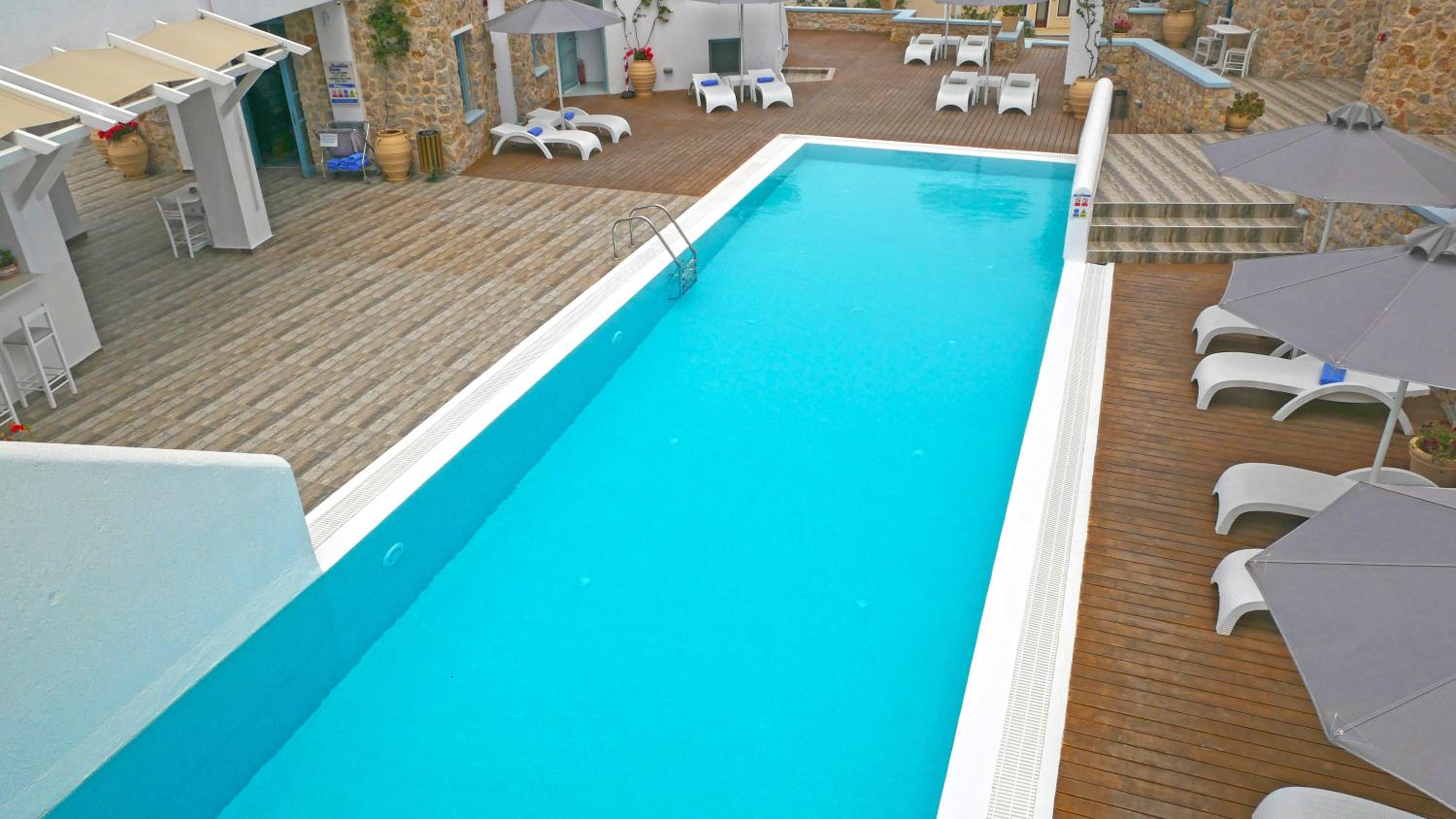 The view of the hotel is amazing, the staff is very gentle, the breakfast was very good, the pool is like in the picture, large and very well taken care of. They give free rides to Fira on established hours. We were offered a free update to a suite.