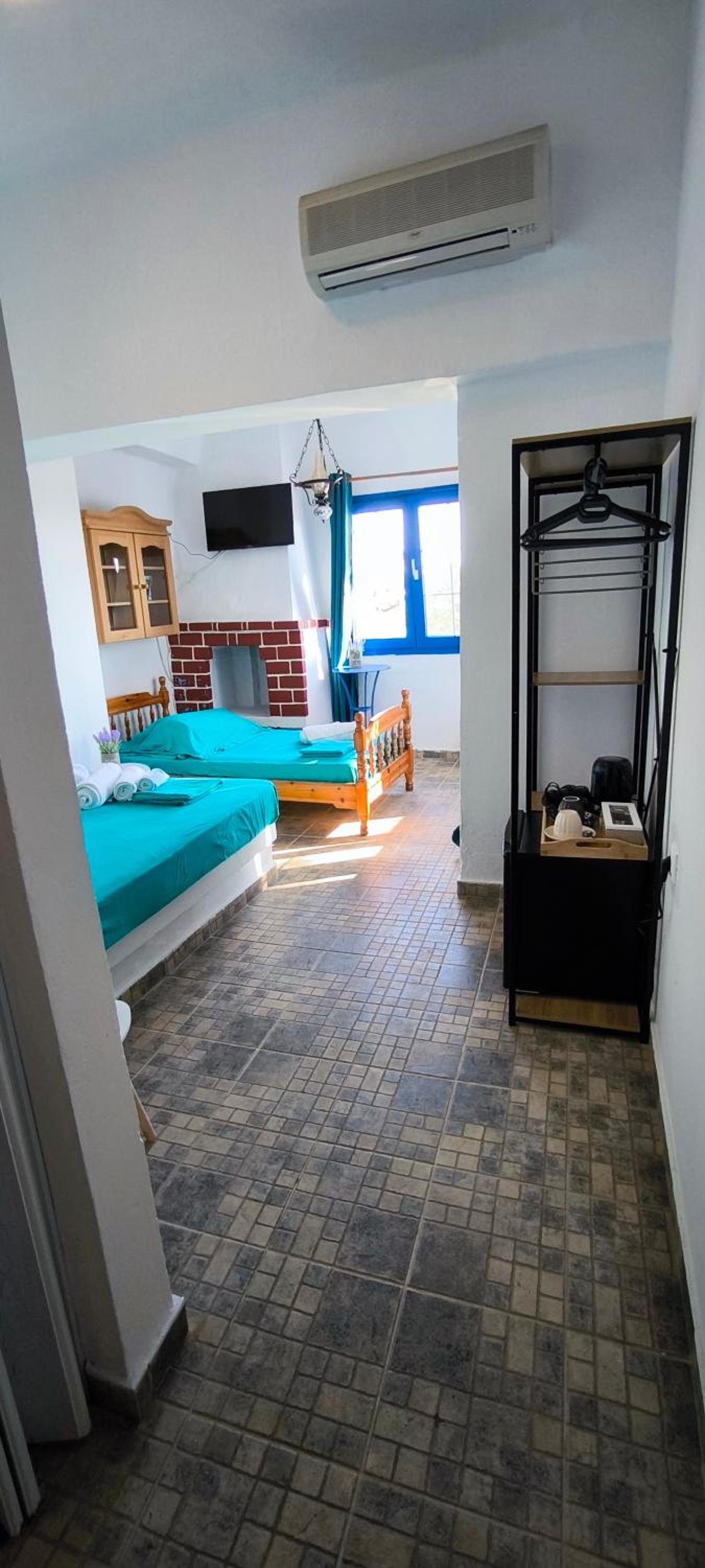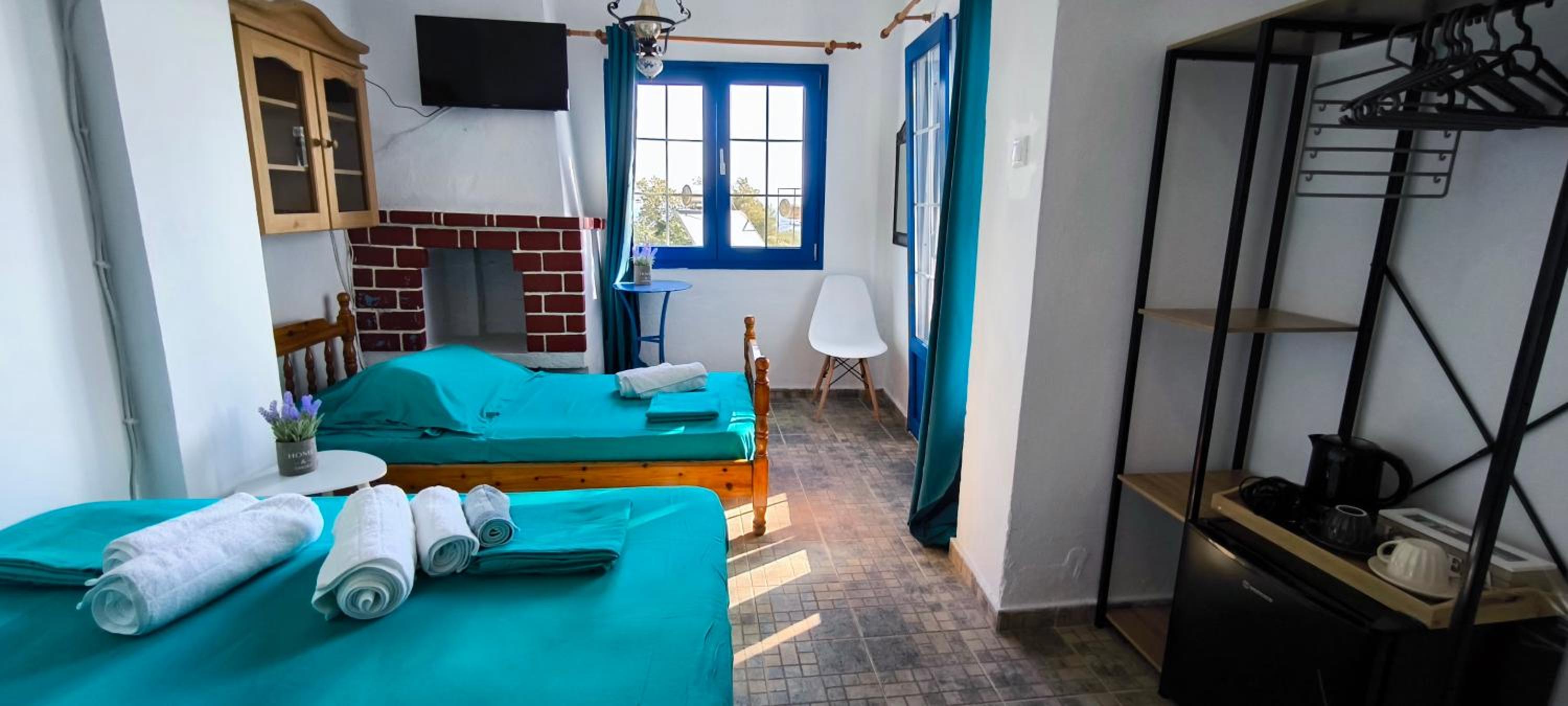 Equipped with air conditioning, kitchen appliances, and a flat-screen TV, our family rooms ensure a comfortable stay. Guests can unwind in the garden or explore nearby attractions like Fonias Falls and the Archaeological Museum of Samothrace.