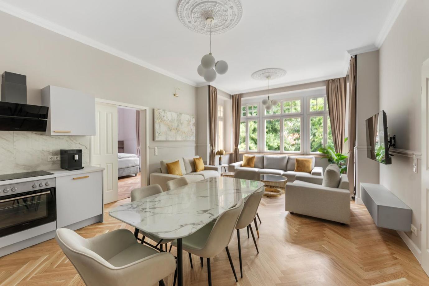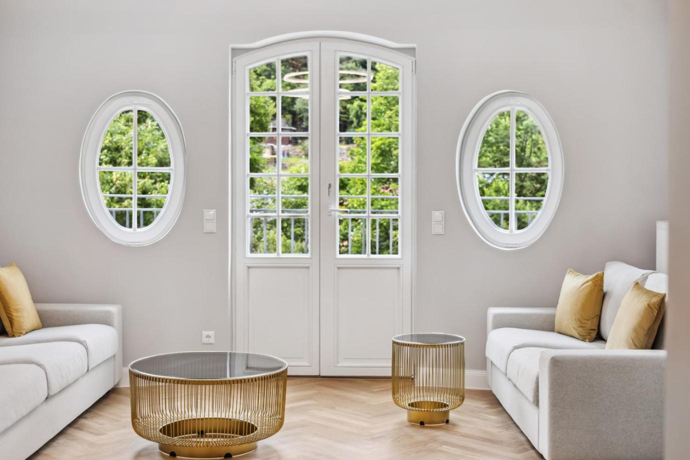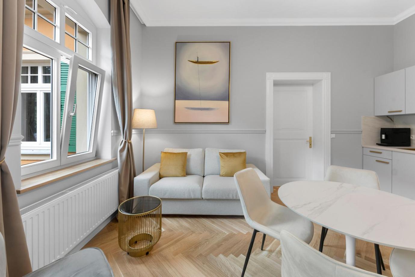 Hohe Decken, lichtdurchflutete Zimmer, Sltbaucharme dabei sauber und stilvoll eingerichtet
