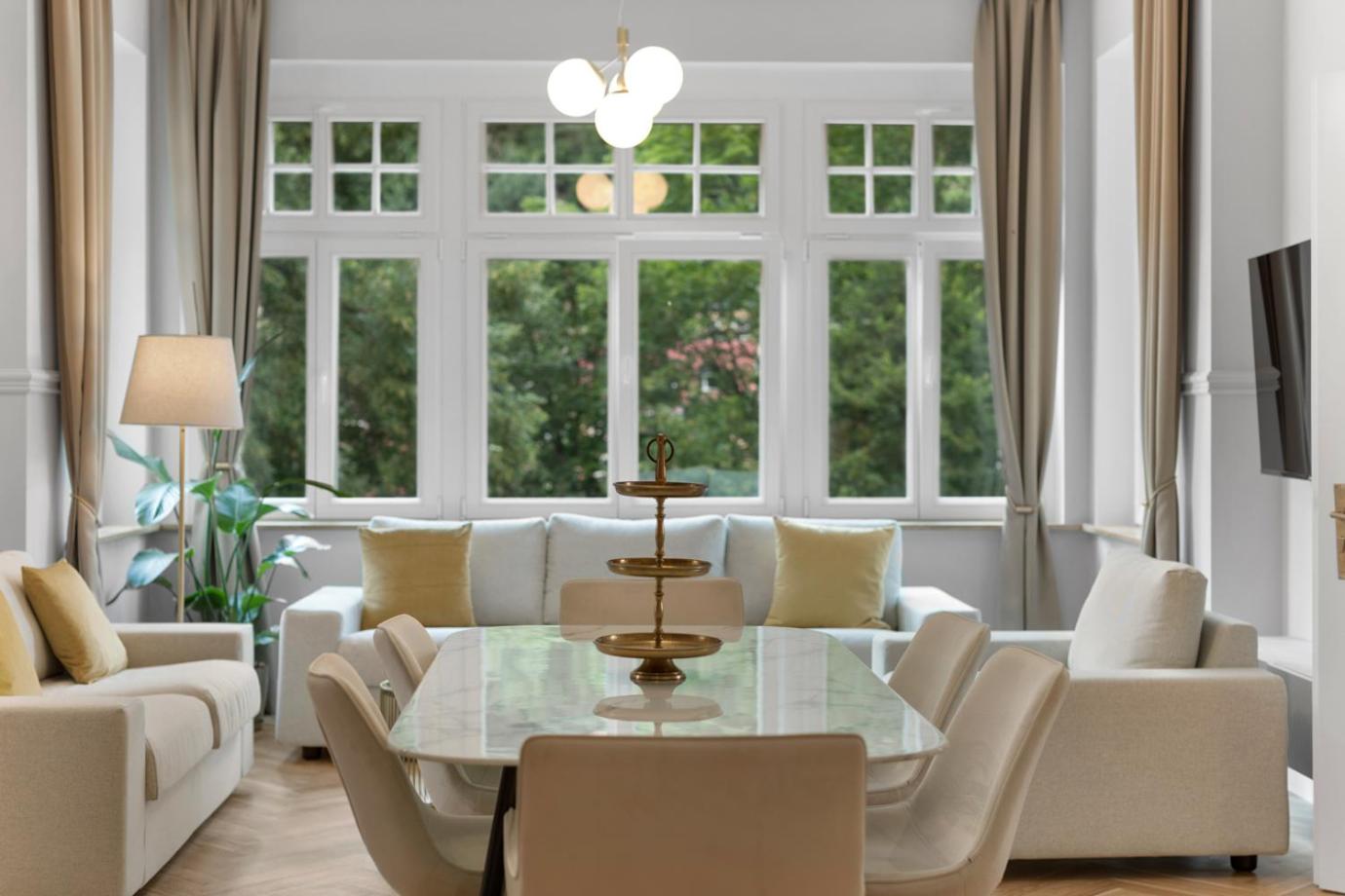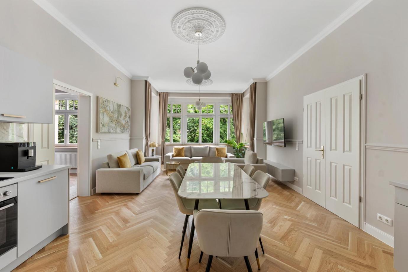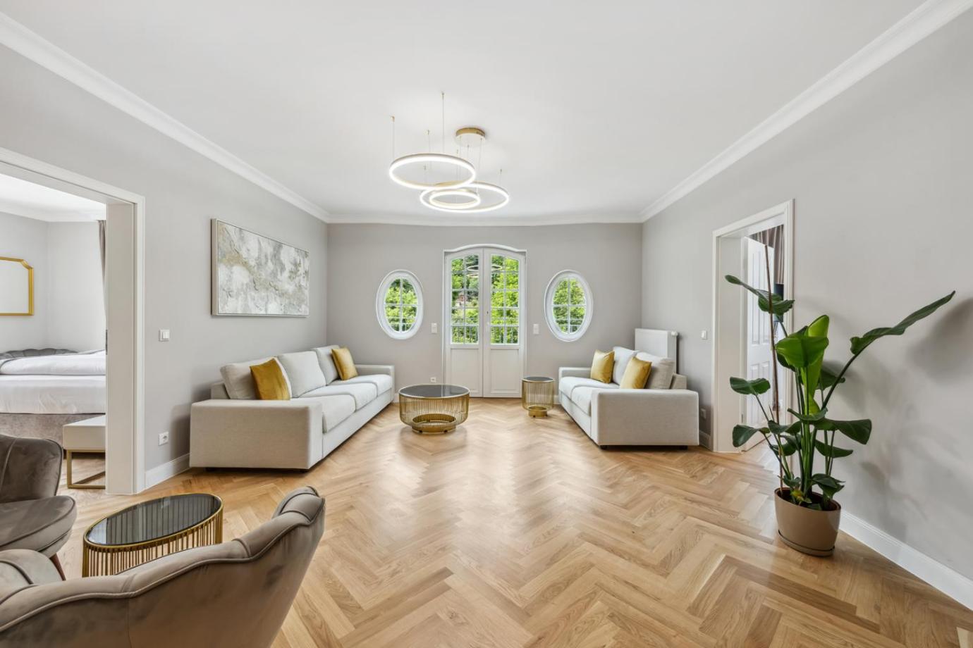 Hohe Decken, lichtdurchflutete Zimmer, Sltbaucharme dabei sauber und stilvoll eingerichtet