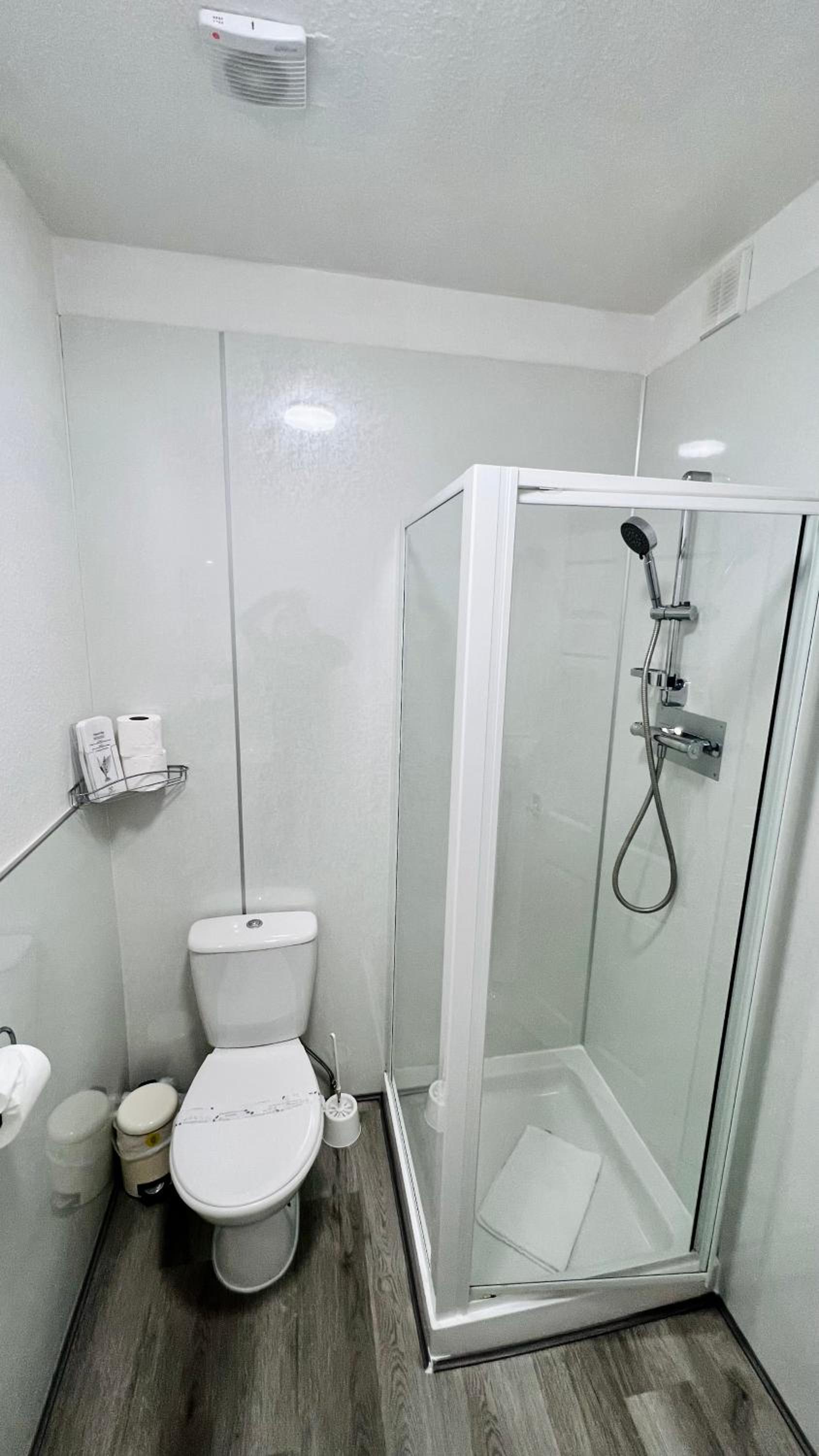 The bathroom was not up to standard: the ventilation vent was covered in dust and the shower needed to be unclogged.