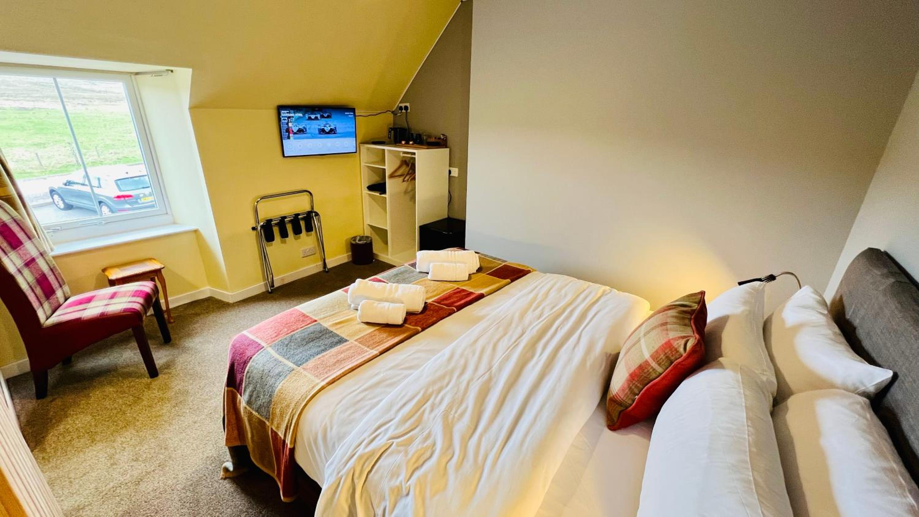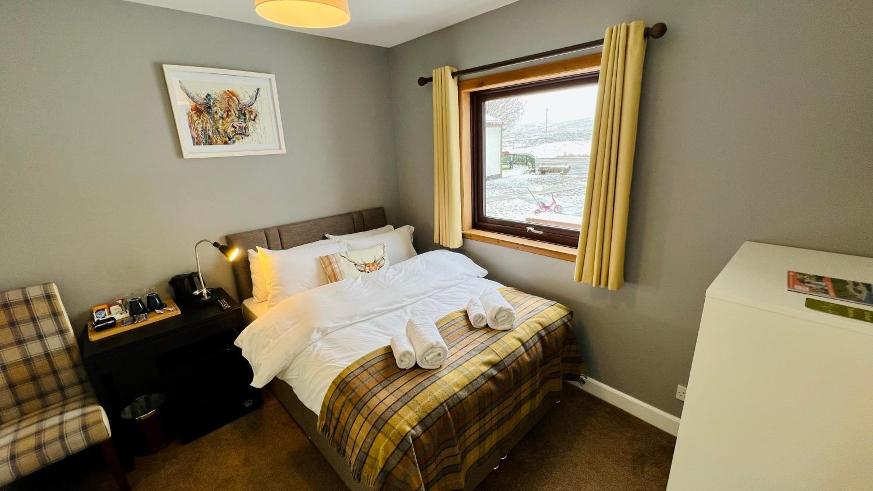 Situated in a beautiful remote location, the property was warm and welcoming, with a great bar and restaurant. The haggis and black pudding pizza is a ‘must try’!