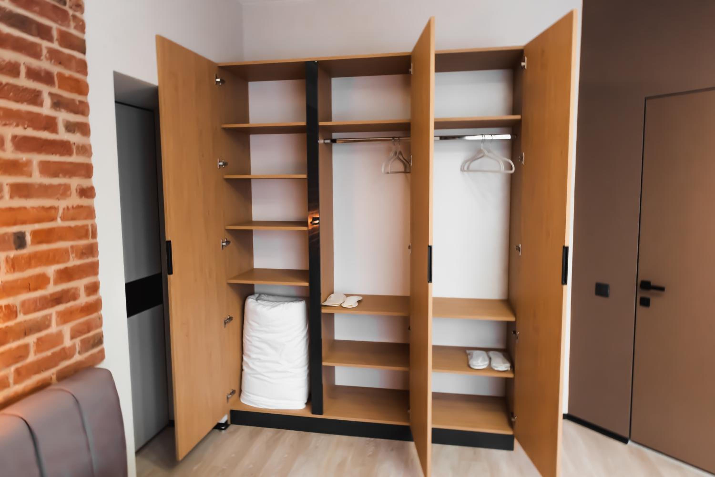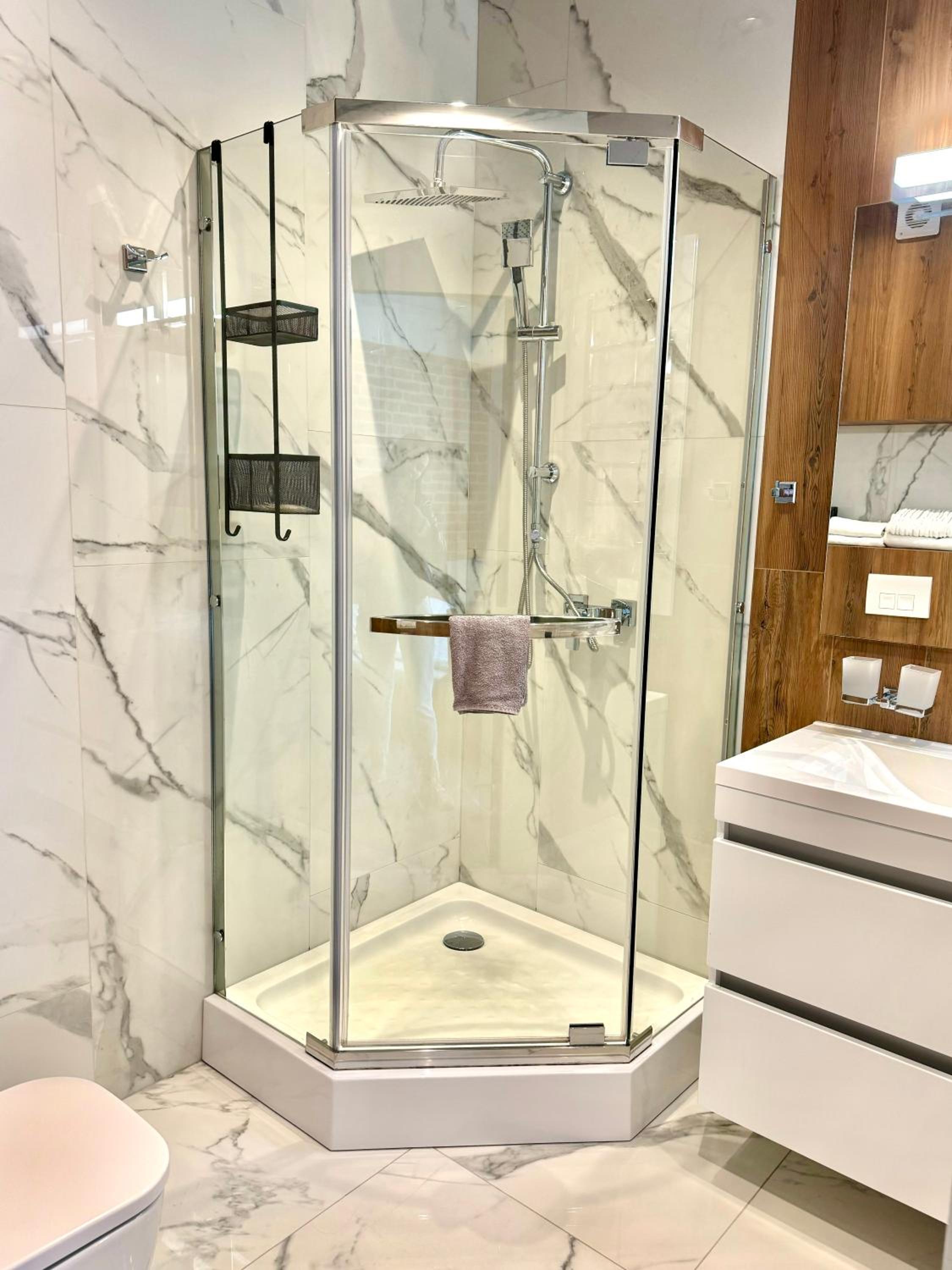 Дуже погана шумоізоляція, вона відсутня, інколи здавалось просто що хтось за твою ручку дьоргає, а це відкривались вхідні двері. Підлога трохи скрипіла і була нерівною від цього шкаф трішки хитався при ходьбі та стукав. Душ який зверху великий, з нього постійно капала вода, в більшості холодна тобі на голову, коли миєшся, і в душі починається чорна пліснява в кутах. А ще була 1 дуже маленька ковдра, 2 нам сказали в шкафу і підодіяльник для неї теж там, тобто я сама ще повинна собі одягти підодіяльник на ковдру…