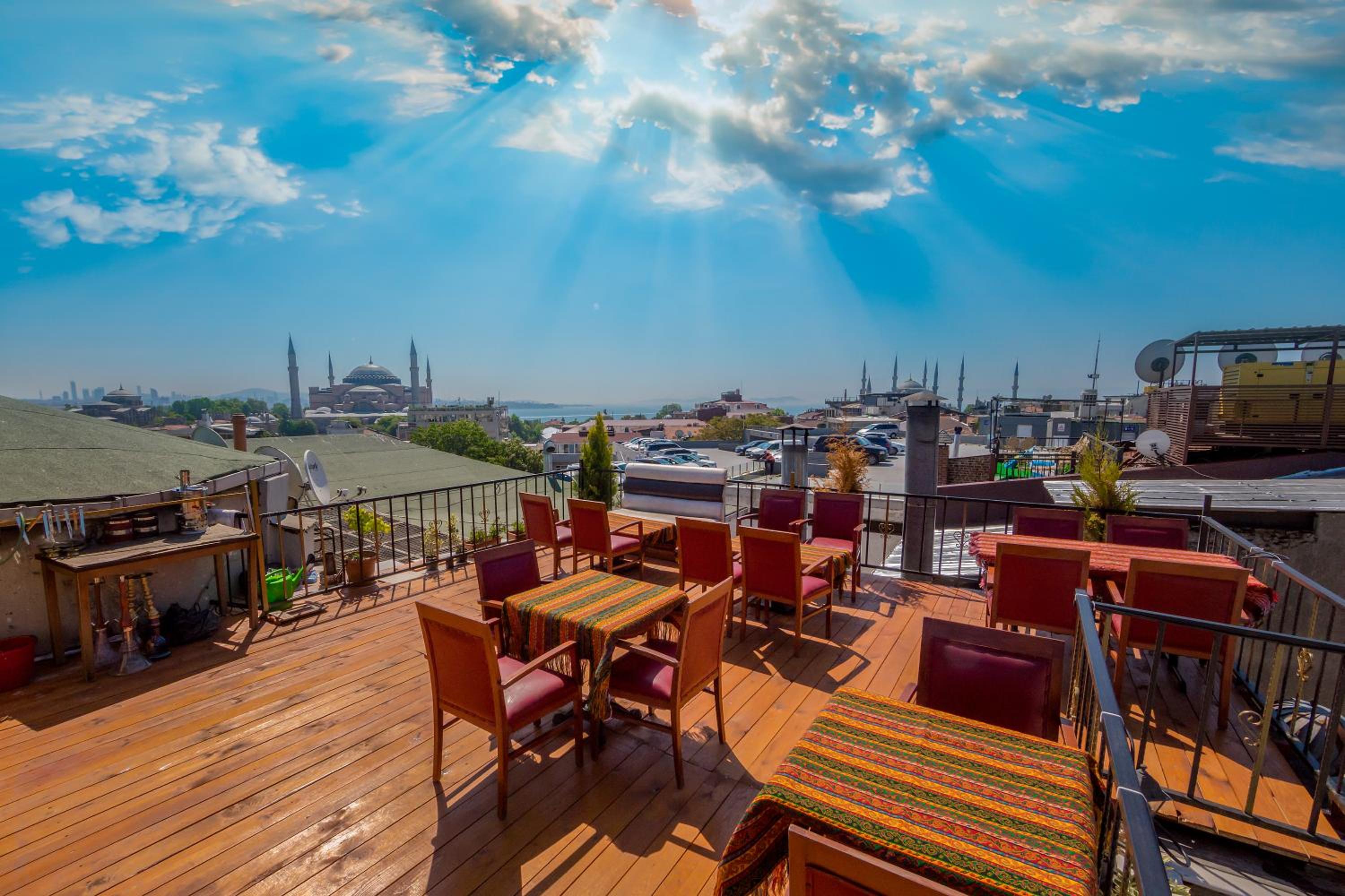 Indulge in delicious meals while soaking in breathtaking panoramic views of old Istanbul and the Bosphorus from the hotel's rooftop terrace restaurant.