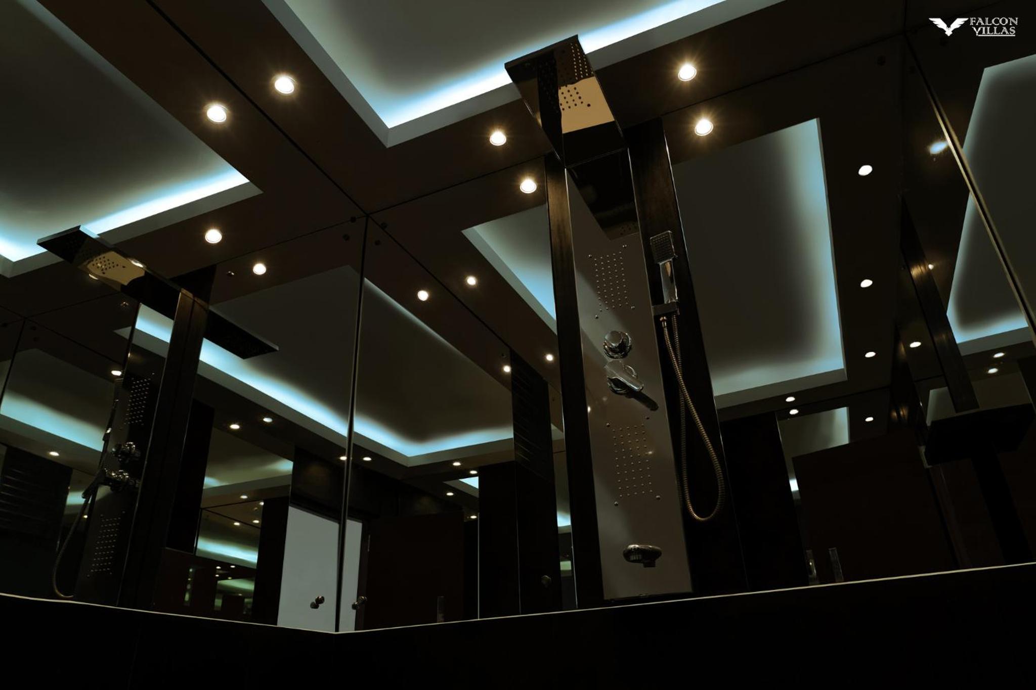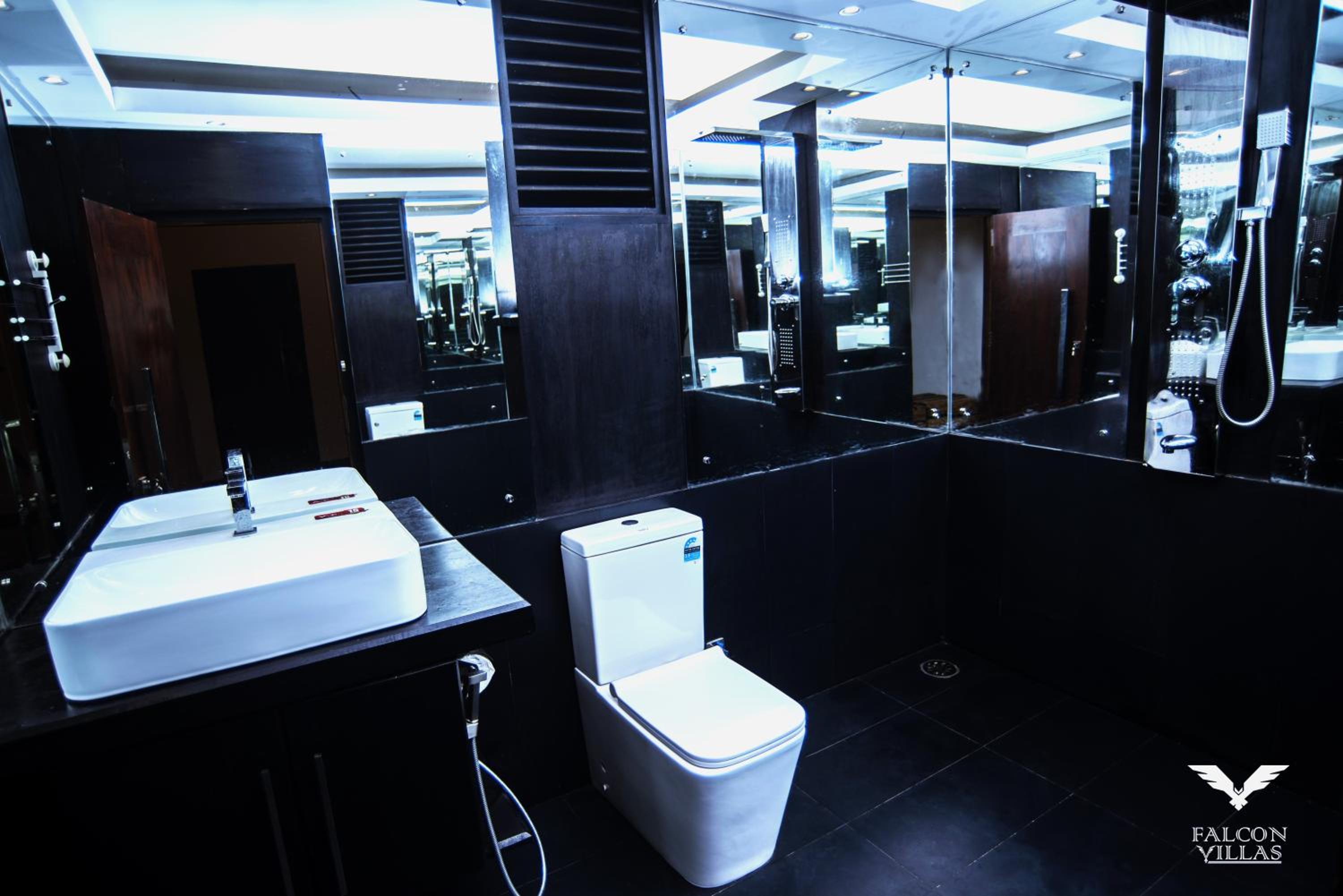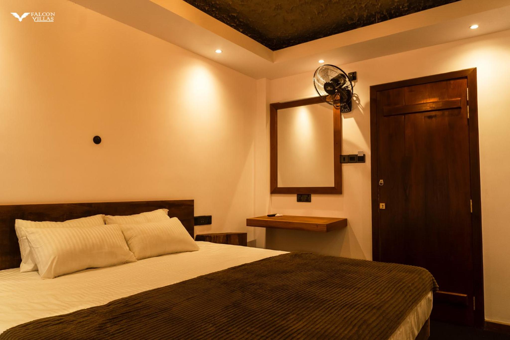 Indulge in comfort and style at Falcon Villas with spacious rooms featuring modern amenities like flat-screen TVs and private bathrooms.